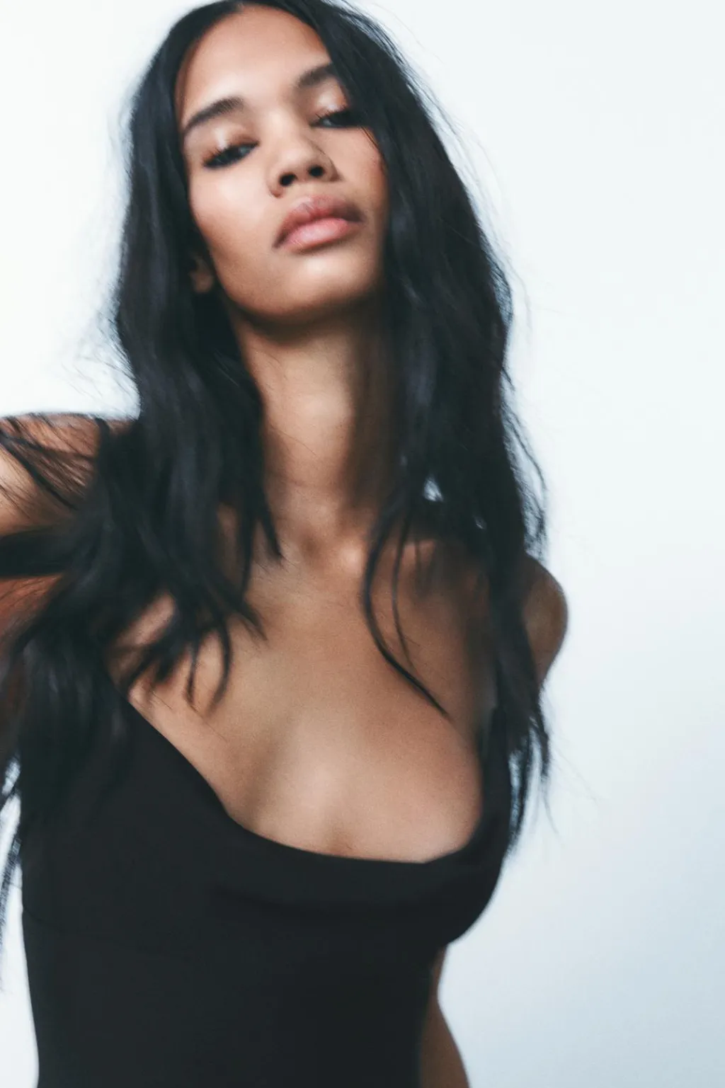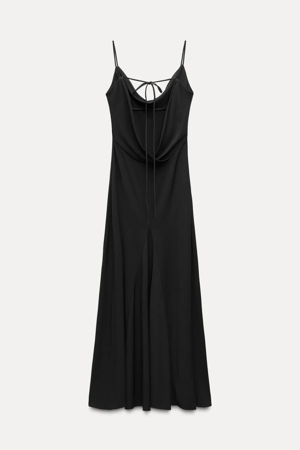 Vestido confeccionado en tejido tipo punto. Escote drapeadotirantes finos. Espalda descubierta con lazada.