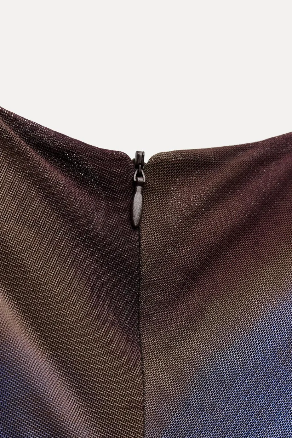 Vestido midi de cuello redondo y manga sisa. Tejido drapeado. Forro interior combinado. Cierre en espalda con cremallera oculta en costura.
