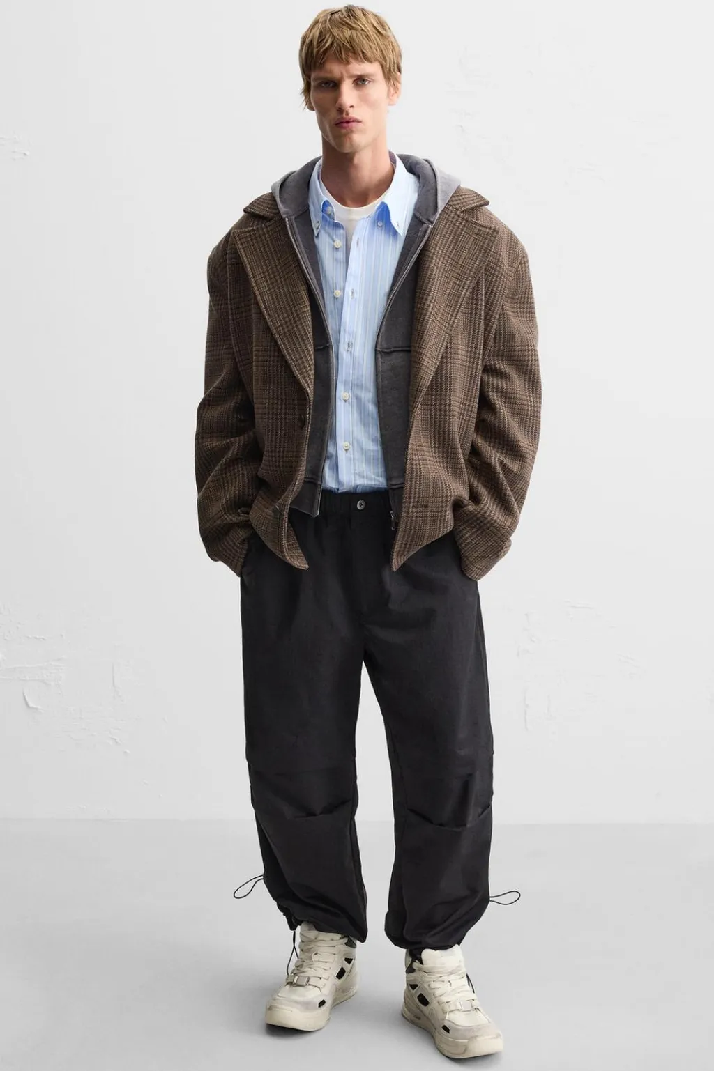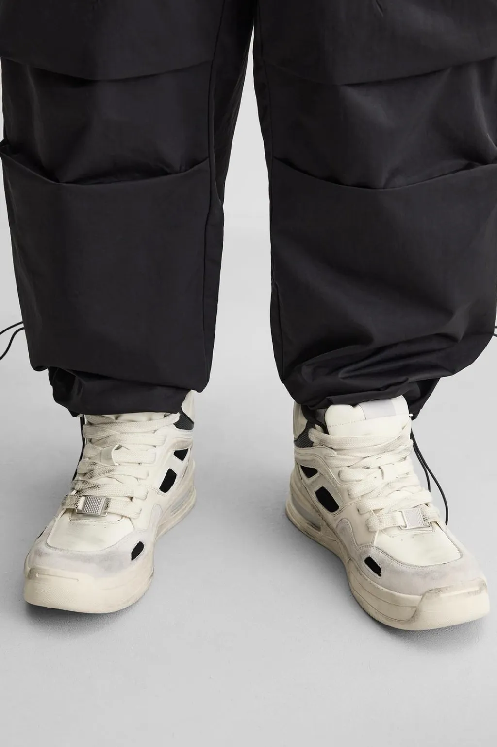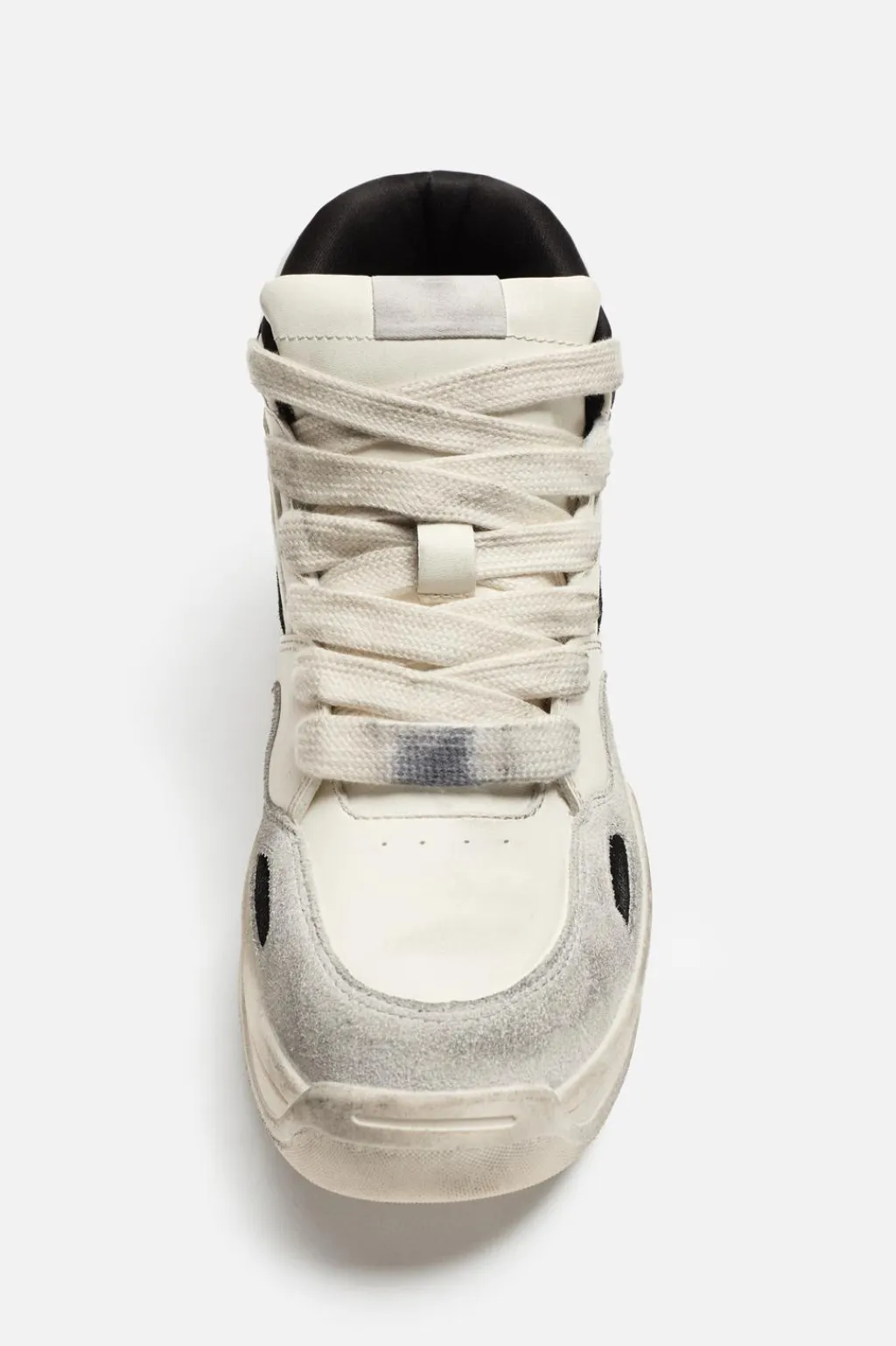 Zapatilla deportiva botín. Combinación de piezas y materiales en el corte con efecto desgastado. Cordonera con seis pasados. Suela con volumen.