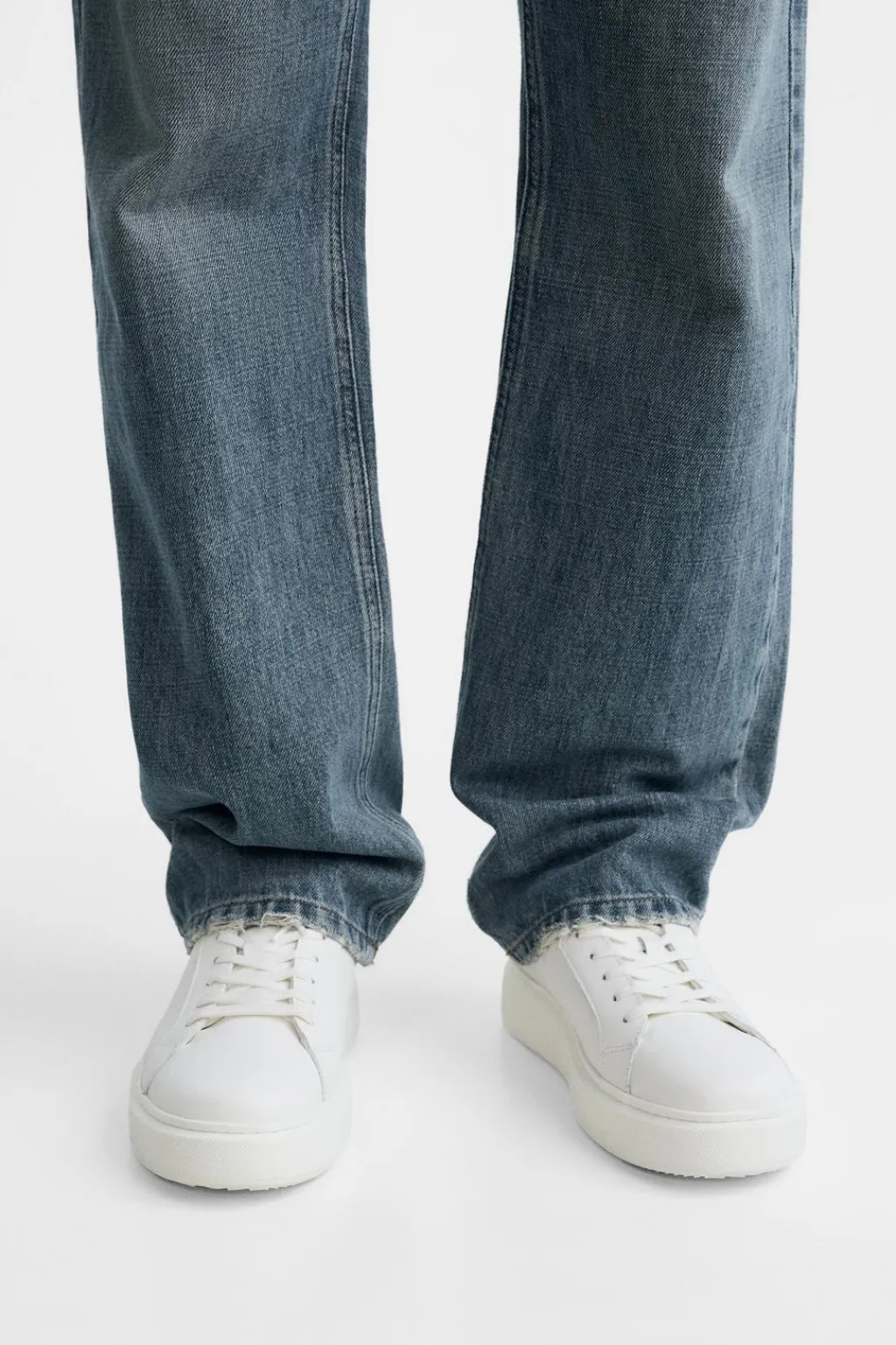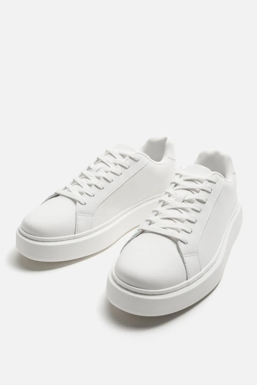 Zapatilla deportiva monocolor. Parte superior fabricada en piel. Piso con volumen.