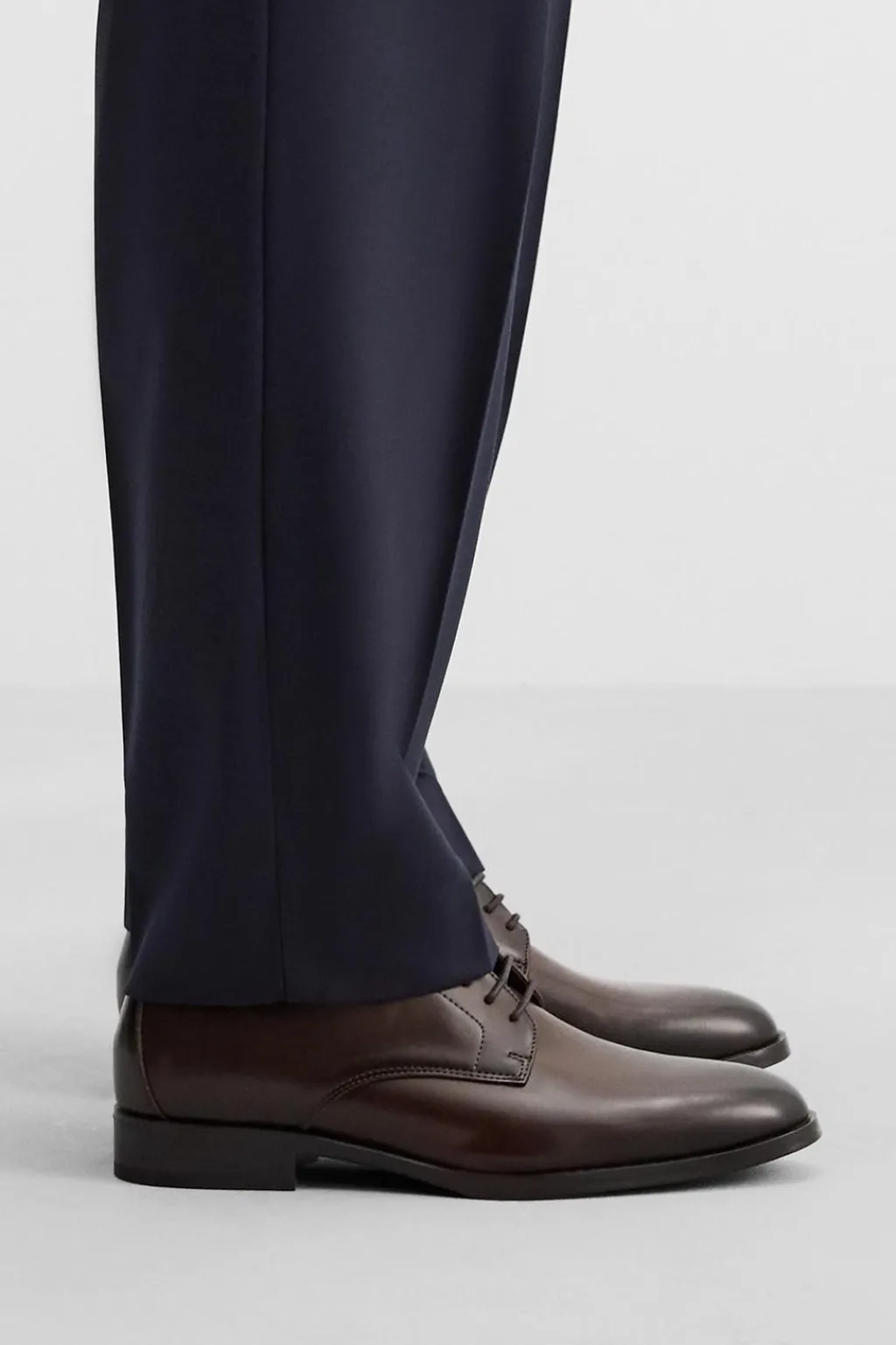 Zapato de vestir tipo derby. Cordonera con cuatro pasados. Horma en punta. Suela con ligero tacón.
