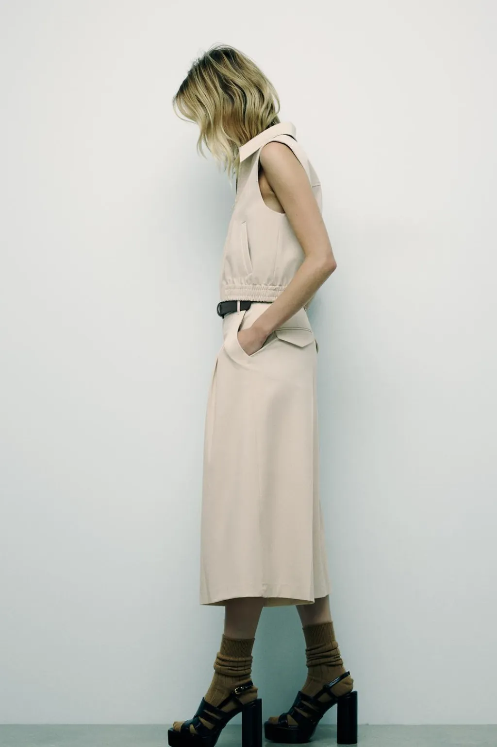 Bermuda de tiro medio con trabillas. Bolsillos laterales y detalle de solapas en espalda. Pinzas en delantero. Cierre frontal con cremallera, botón interior y gancho metálico.
