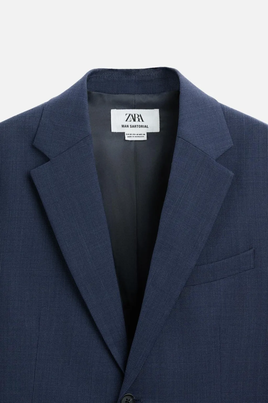 Blazer regular fit confeccionada en tejido con lana. Cuello con solapas de muesca y manga larga acabada en puño con botones. Bolsillo de vivo en pecho y de solapa en cadera. Detalle de bolsillo interior. Bajo con aberturas en espalda. Cierre frontal de botonadura.