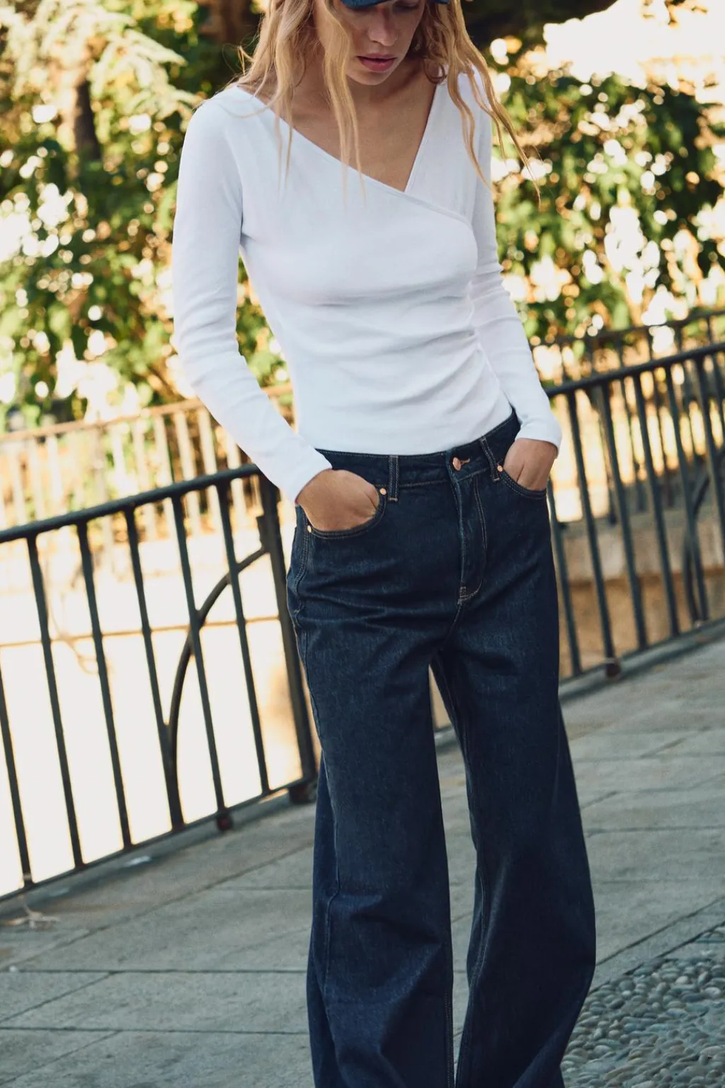 Body de escote pico cruzado y manga larga. Detalle de tejido drapeado. Cierre en bajo con botones a presión.