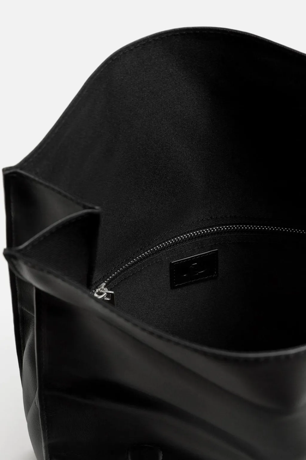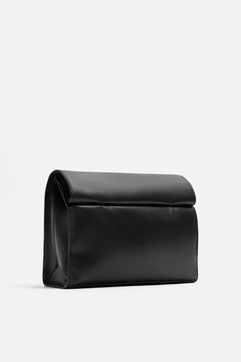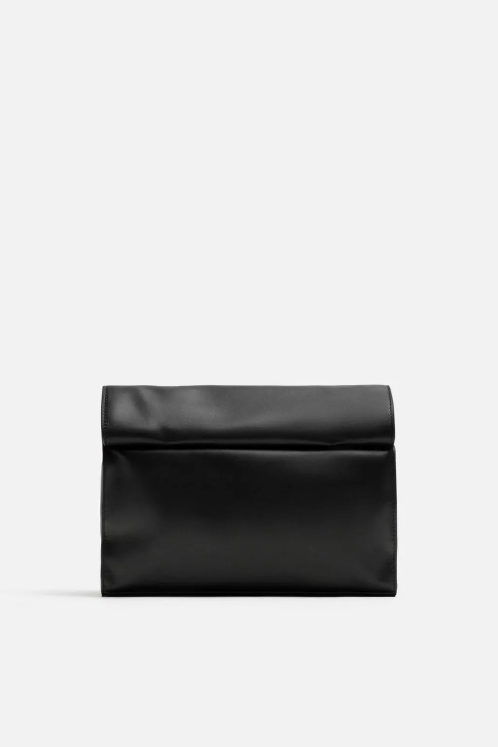 Bolso de mano fabricado en piel. Construcción soft. El compartimento principal se encuentra bajo la solapa que se cierra con doble imán. En su interior cuenta con un bolsillo pequeño con cierre mediante cremallera.