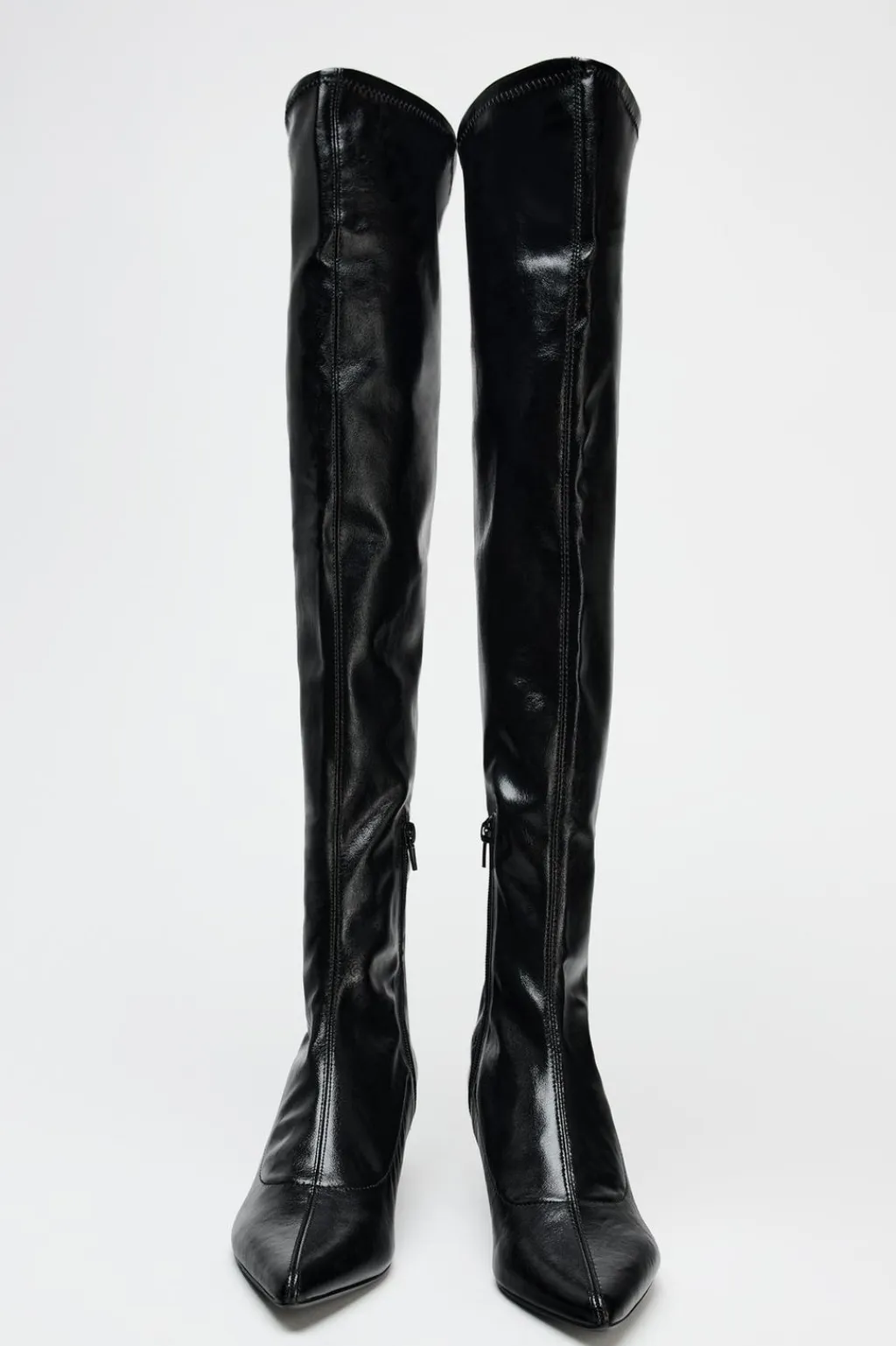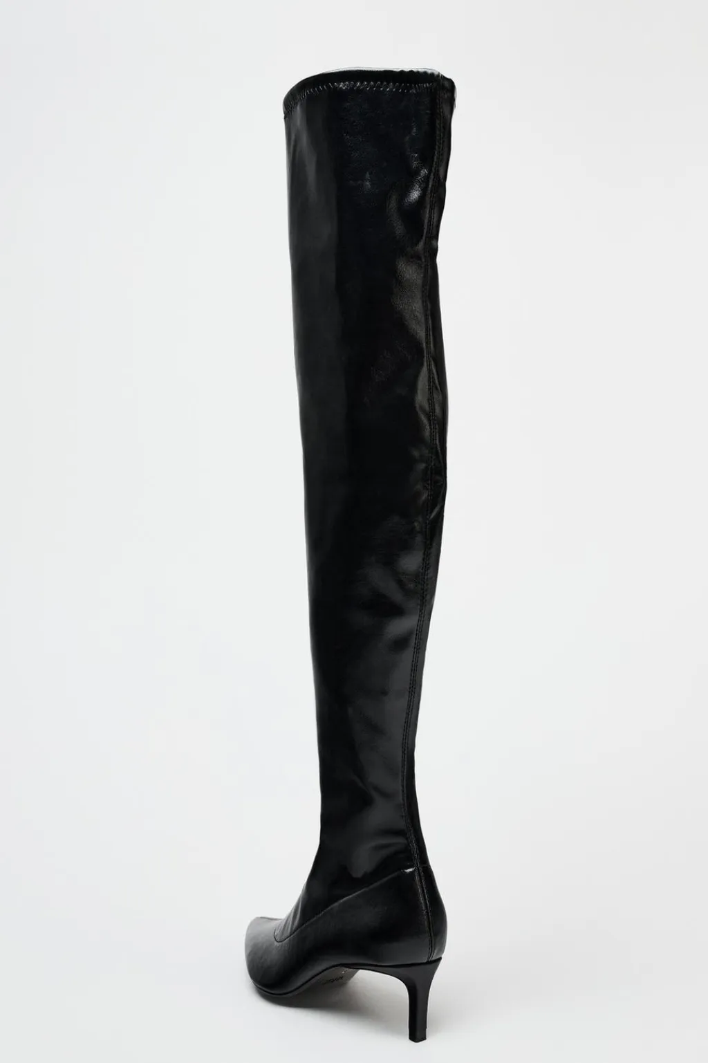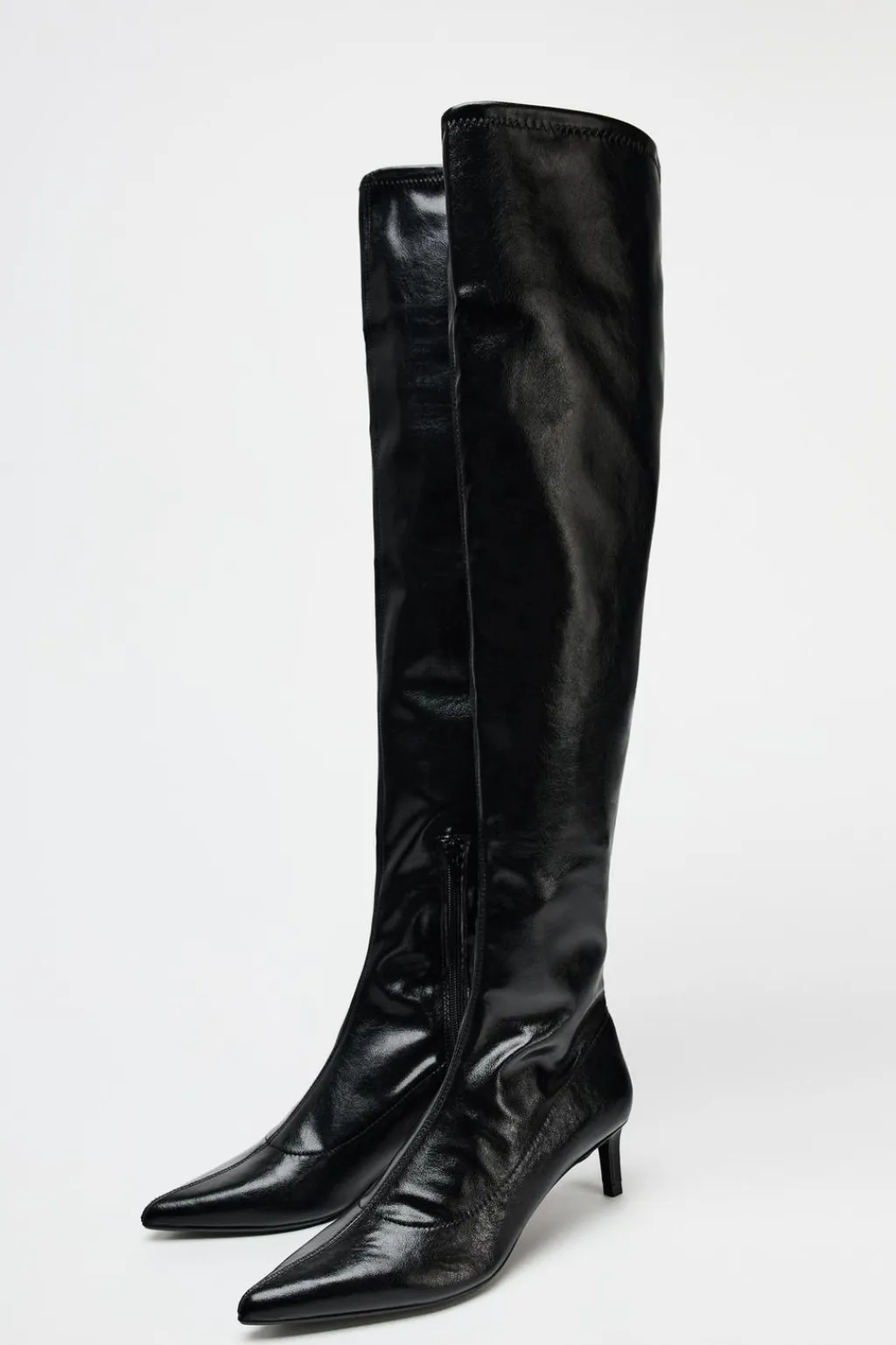 Bota tipo tacón kitten. Caña alta. Cierre mediante cremallera lateral. Acabado en punta.