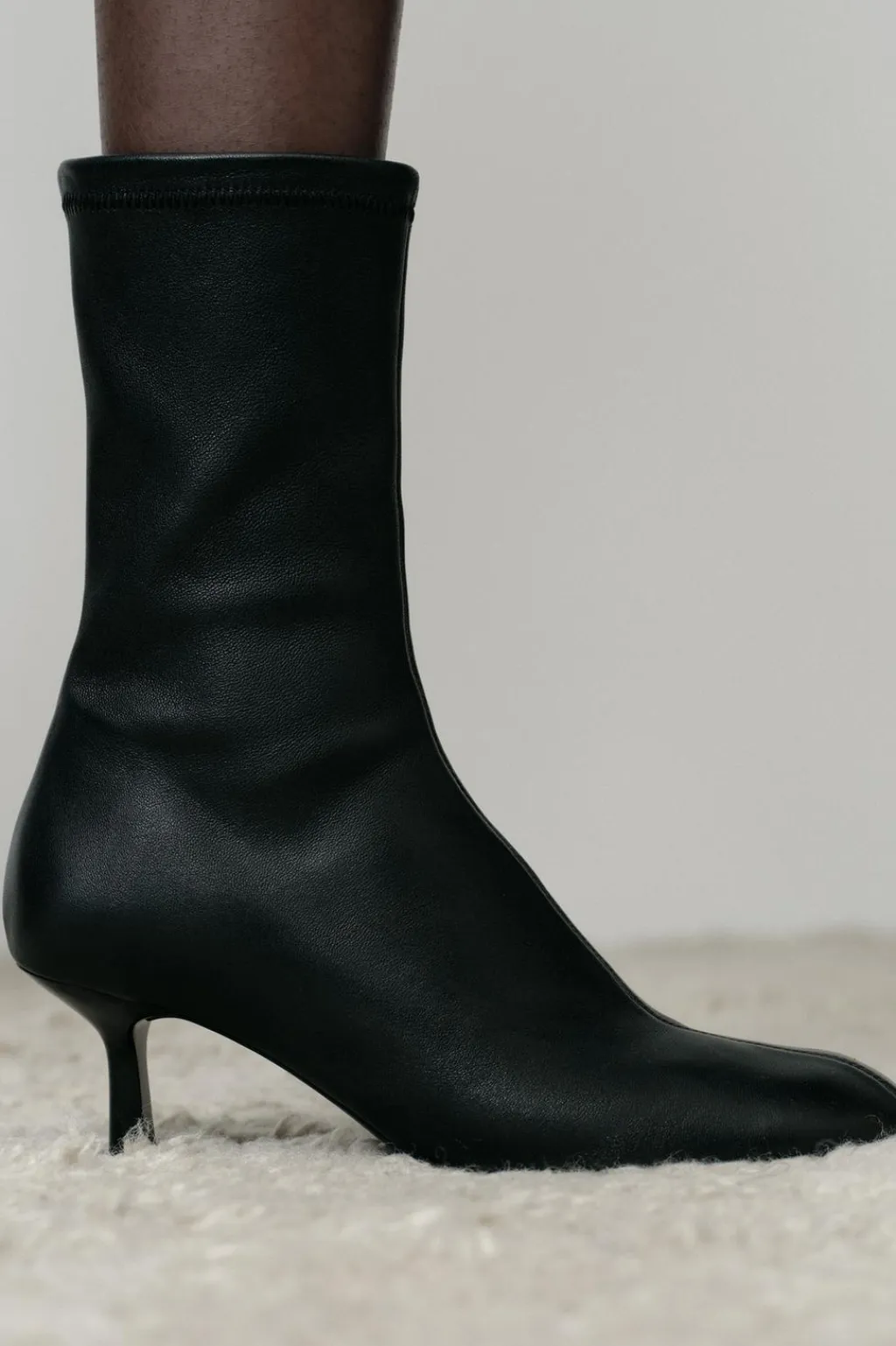 Zapato tipo botín en piel. Tacón kitten. Acabada en punta redonda.