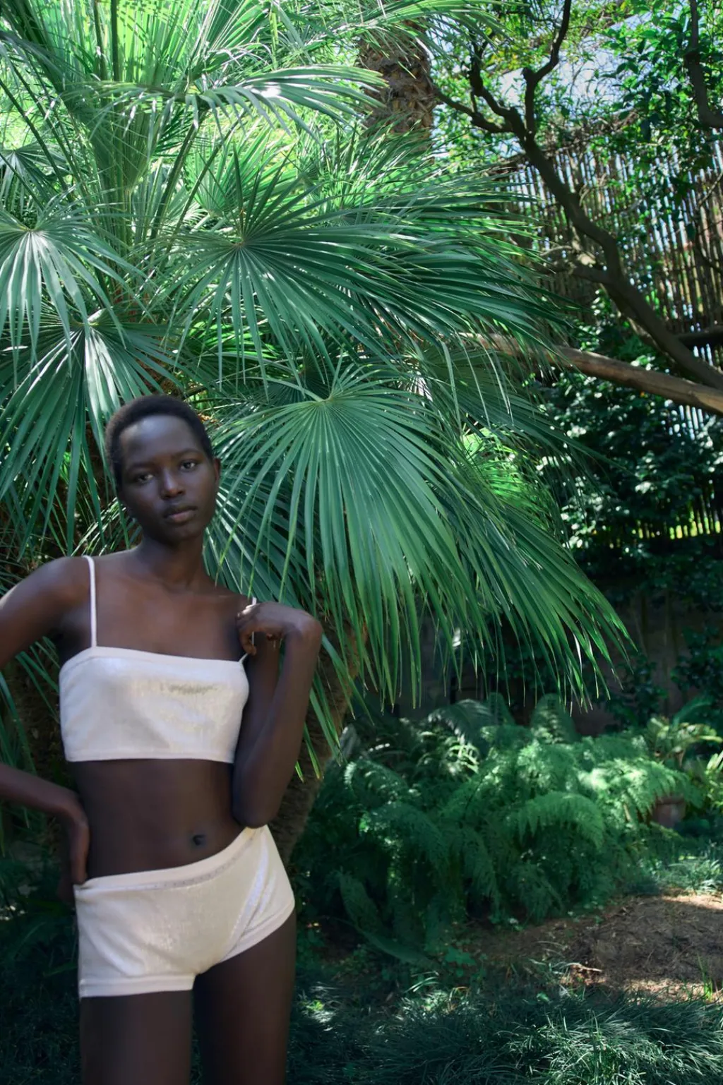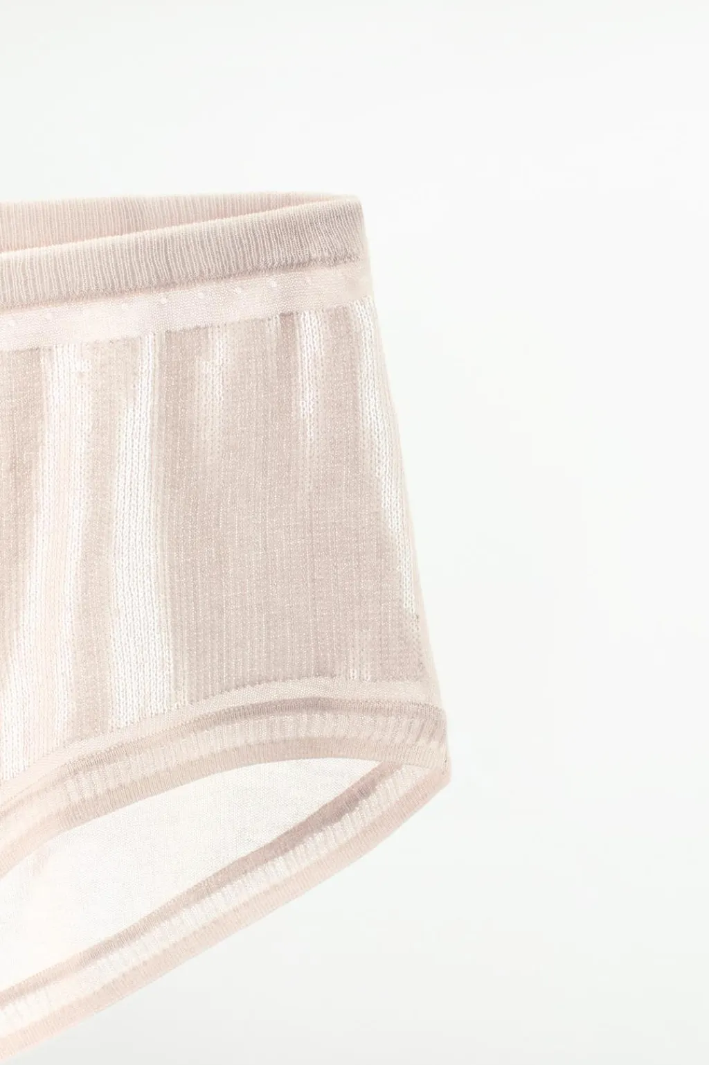 Braguita clásica confeccionada en mezcla de viscosa. Tiro medio y cintura elástica. Detalle aplicación de lentejuelas combinadas a tono.