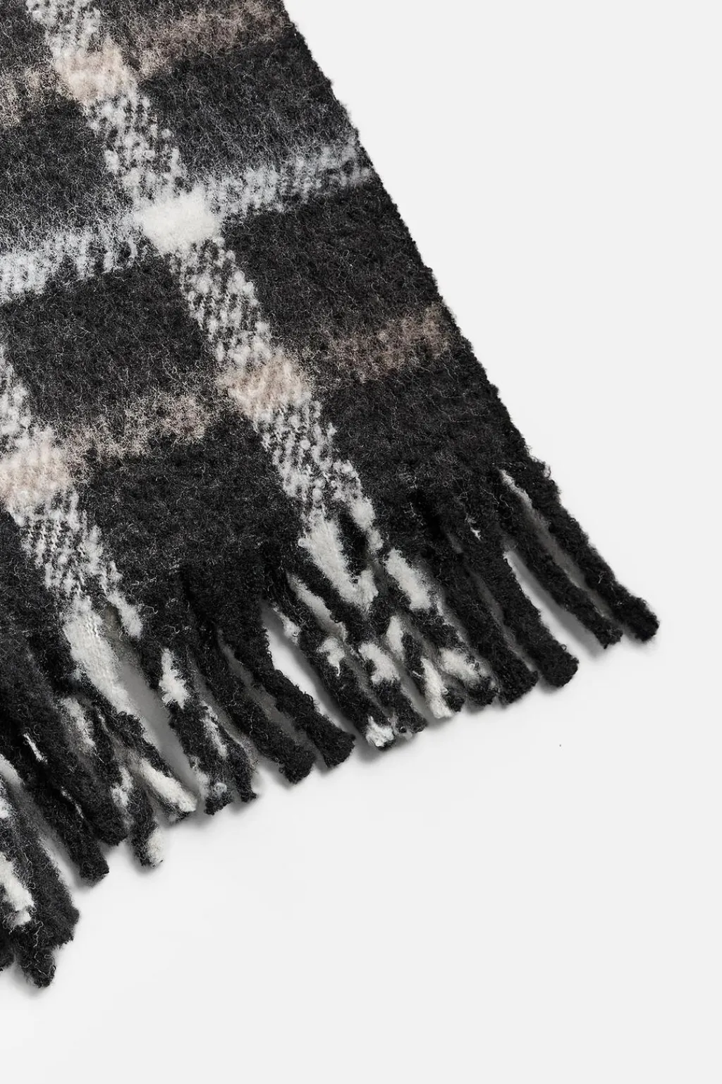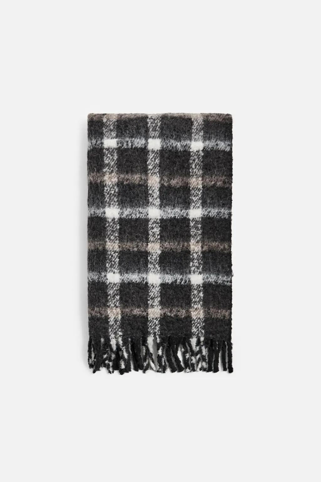 Bufanda confeccionada en tejido acabado cepillado. Acabado con flecos.
