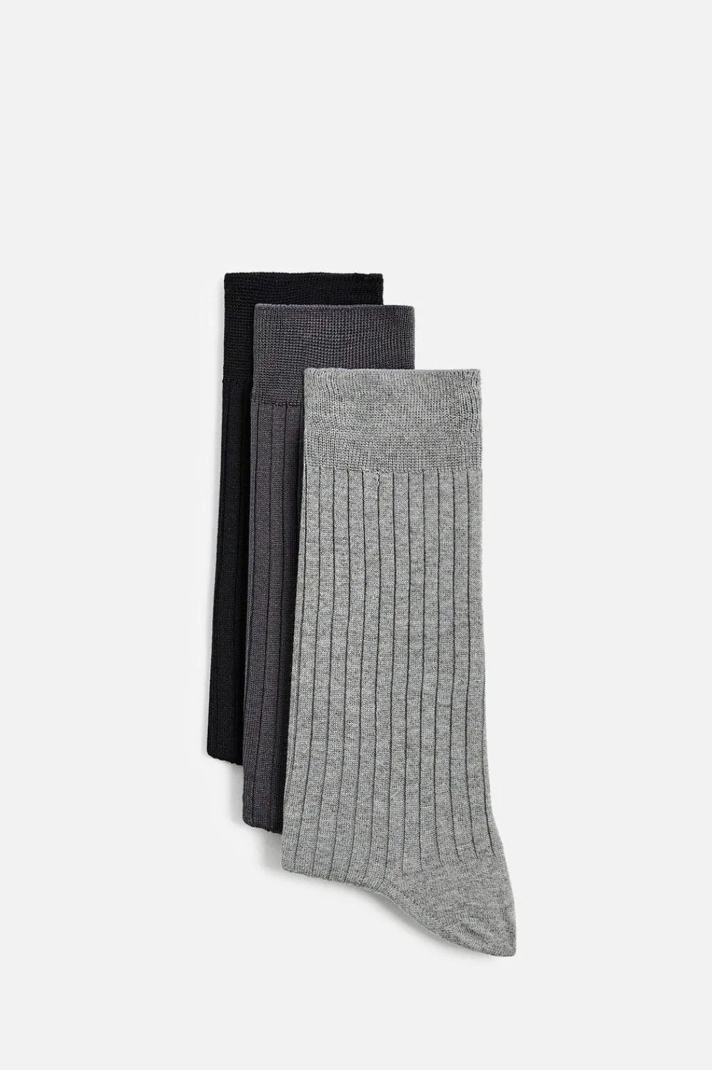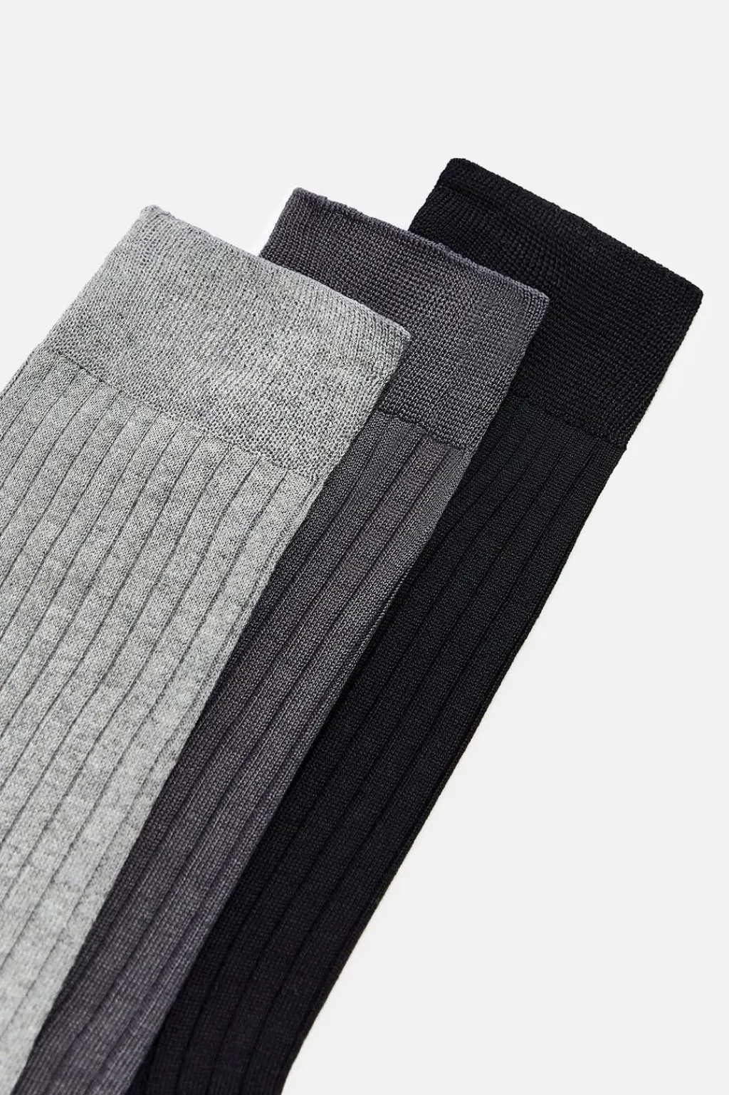 Pack de tres pares de calcetines tejidos en hilatura con mezcla de algodón. Acabado en rib.