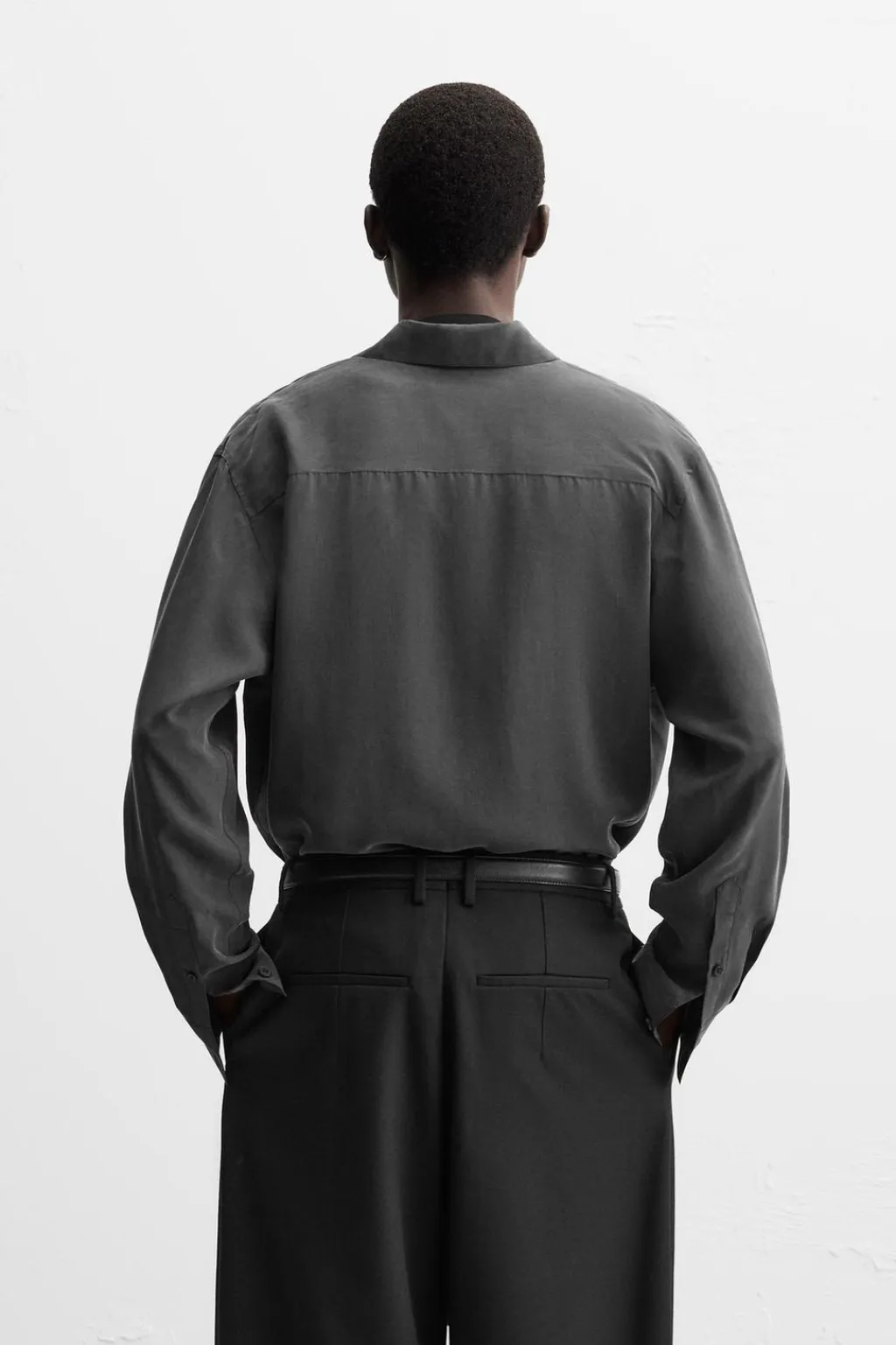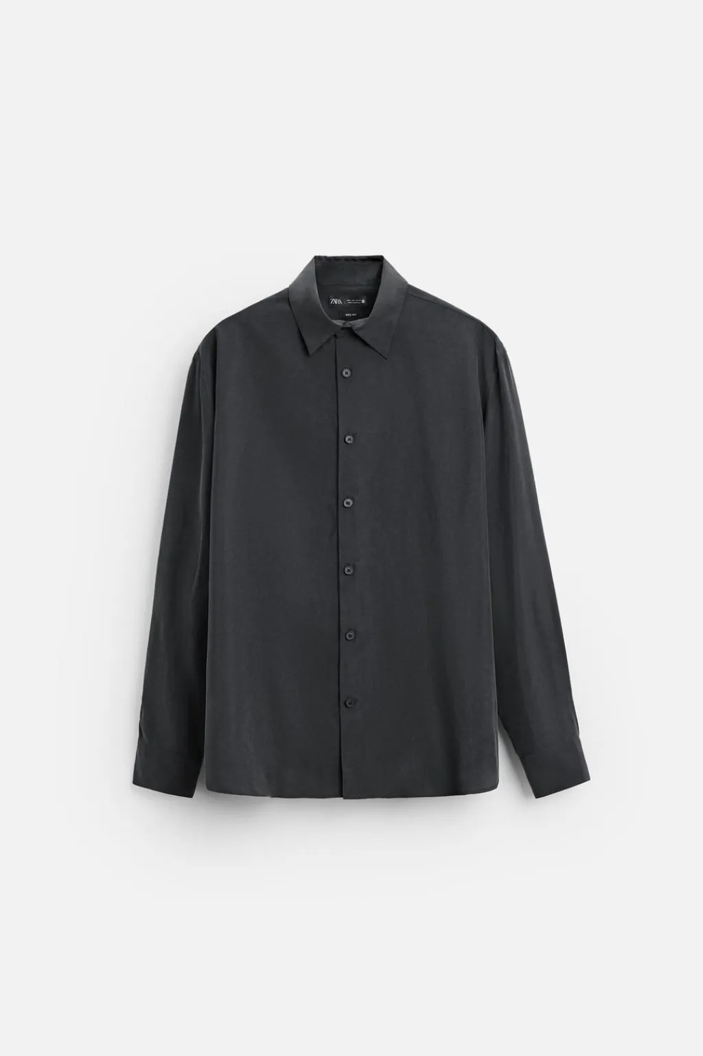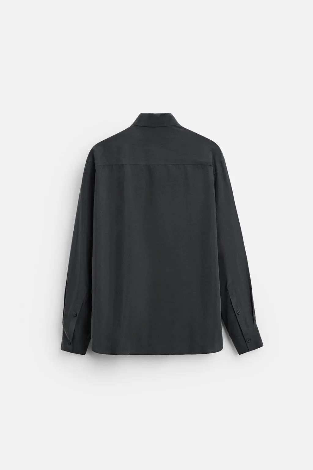 Camisa relaxed fit confeccionada en tejido de seda. Cuello solapa y manga larga acabada en puño con botón. Cierre frontal de botonadura.