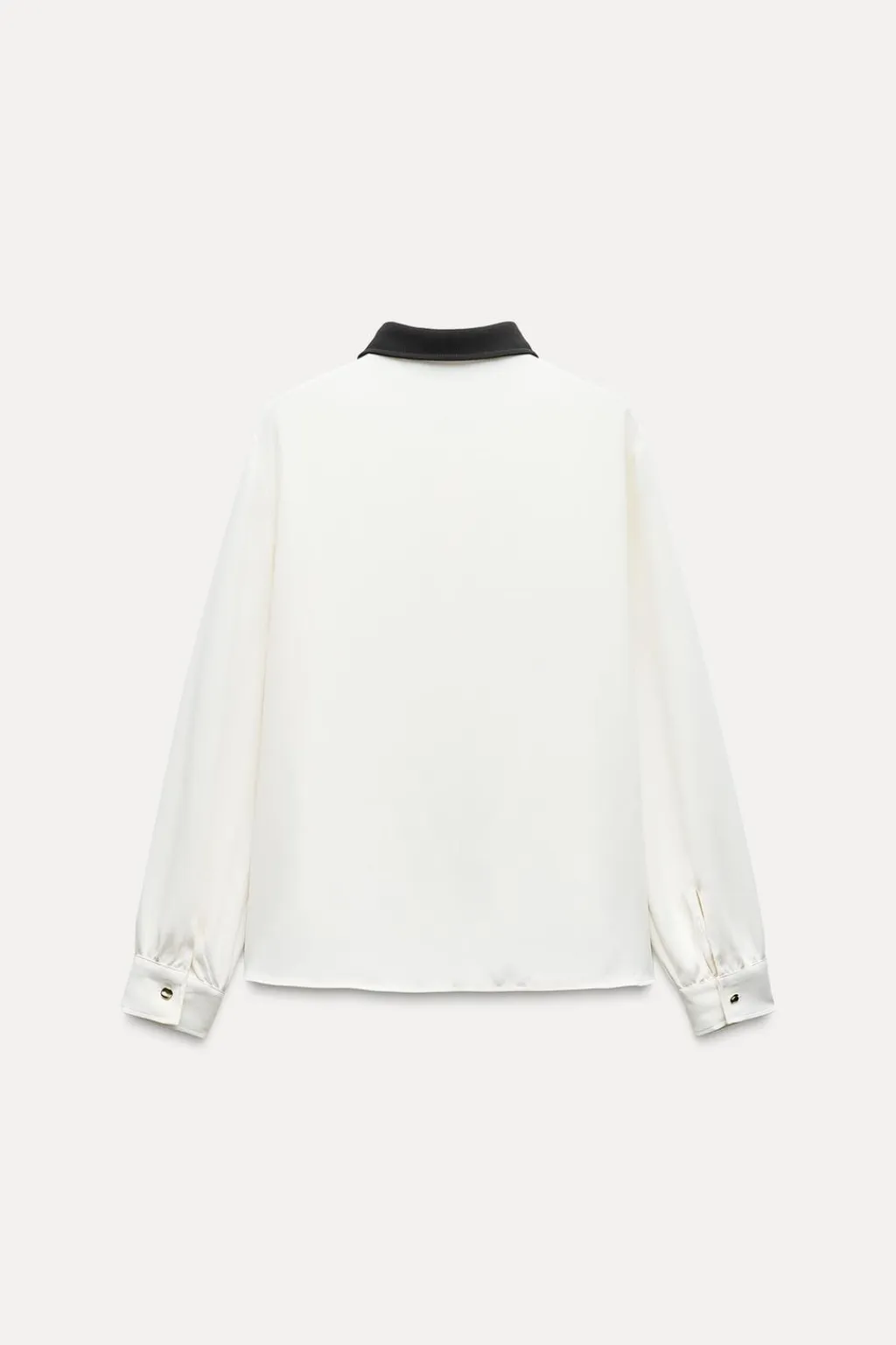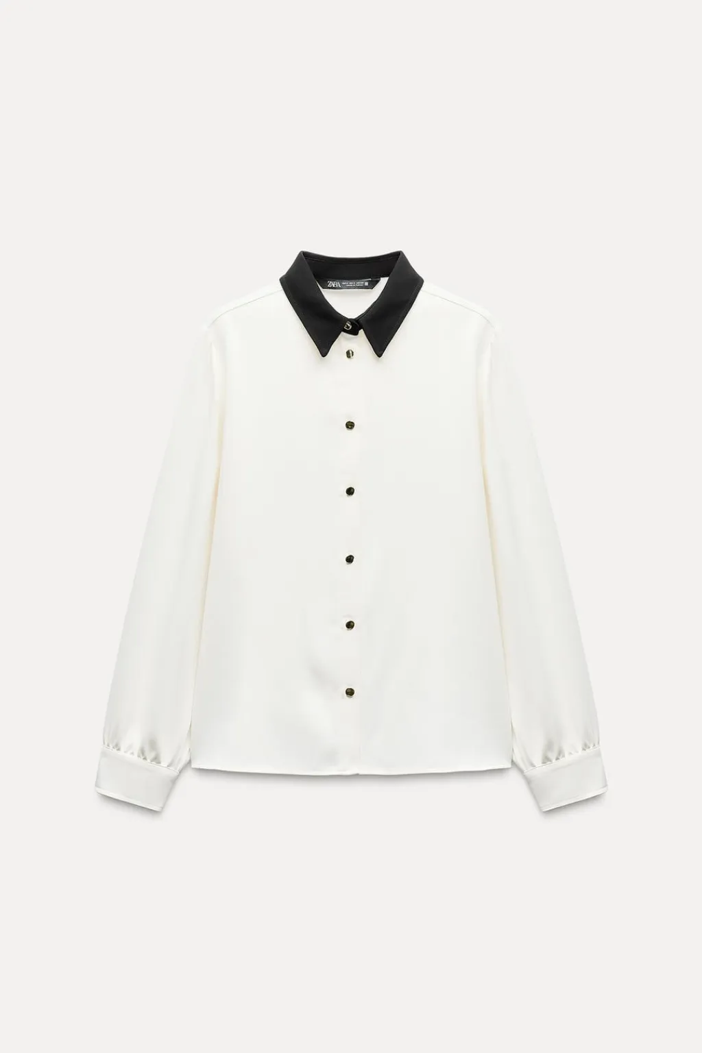 Camisa de cuello solapa combinado a contraste y manga larga. Cierre frontal con botones dorados.