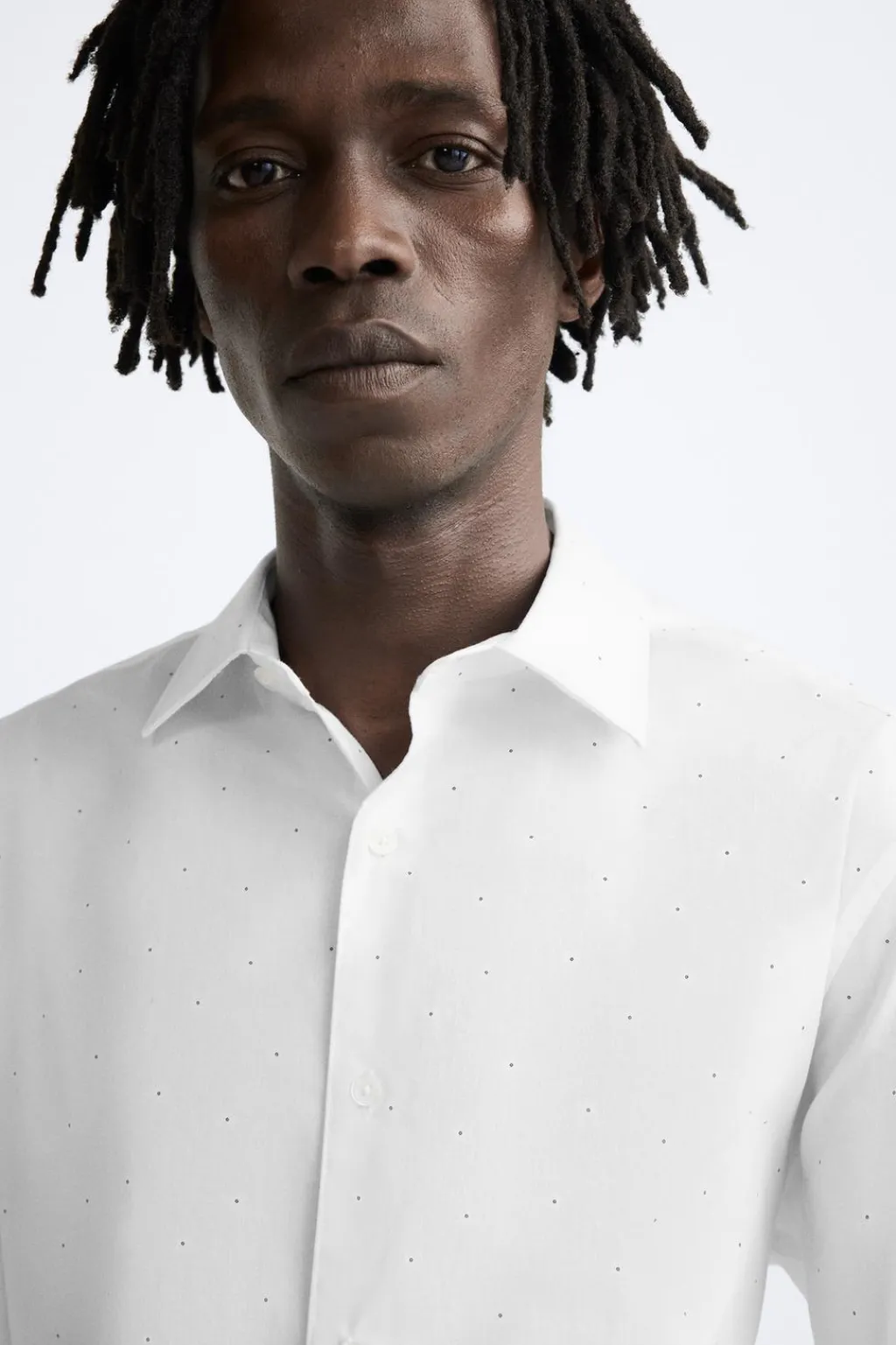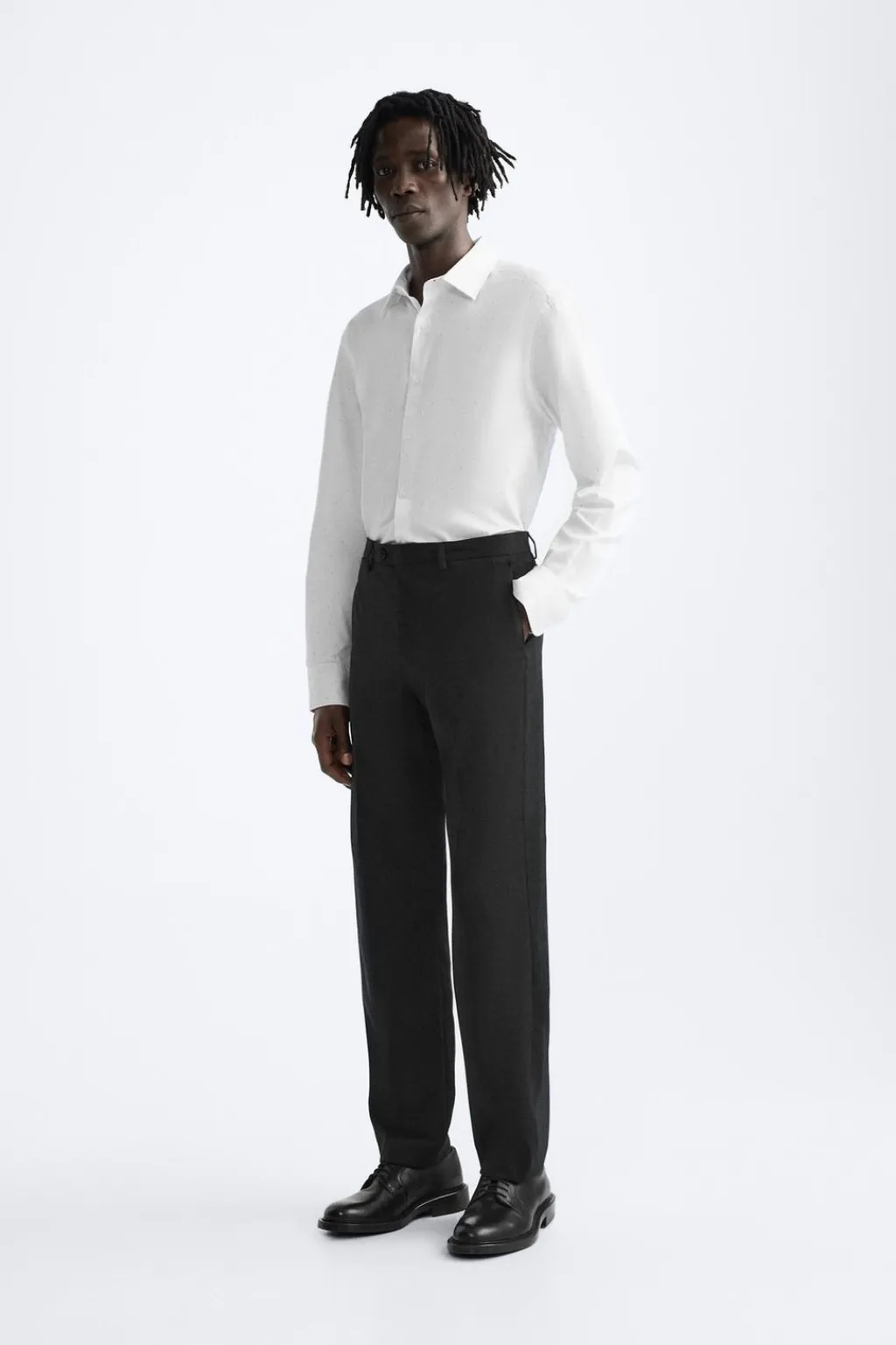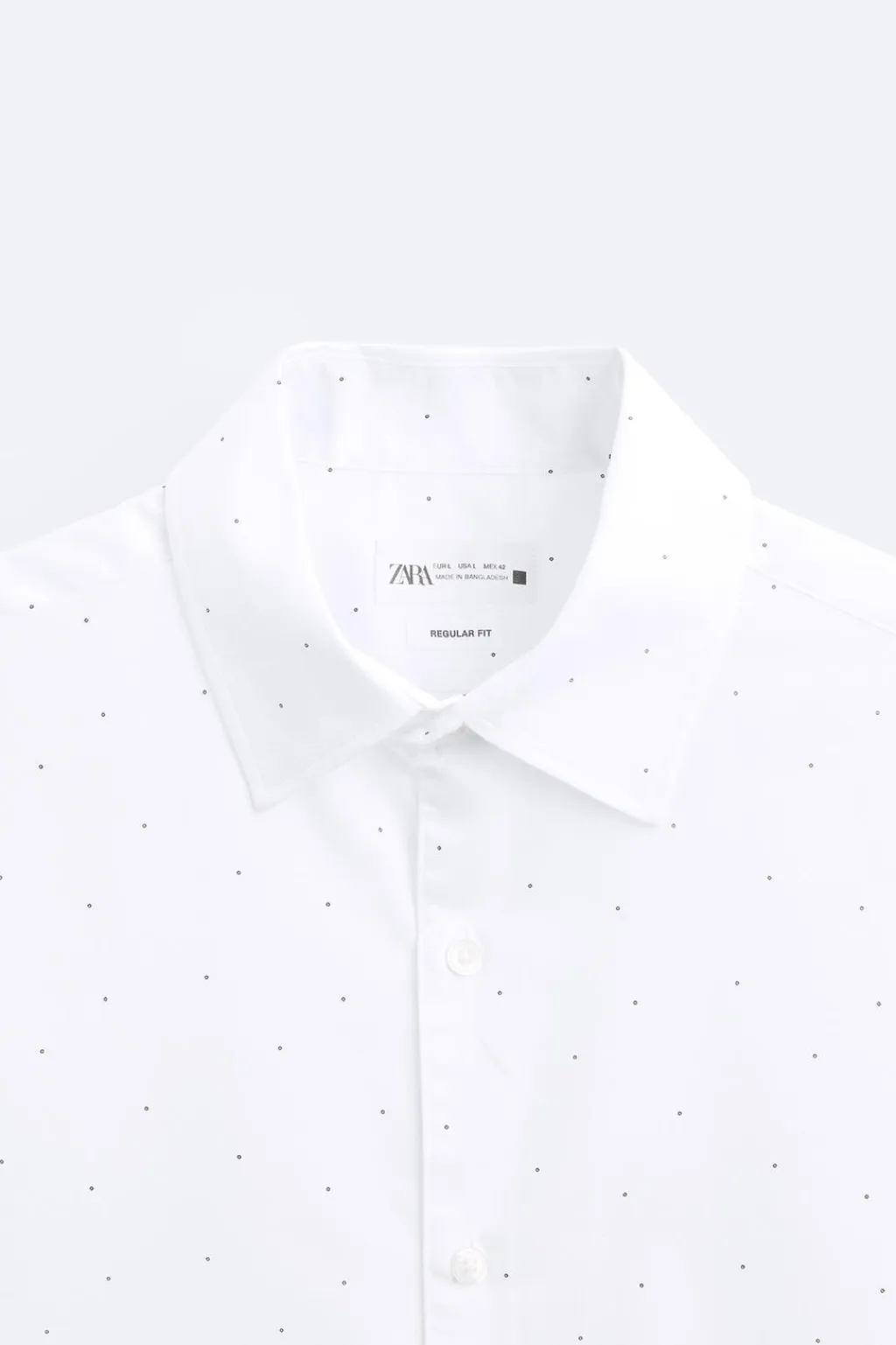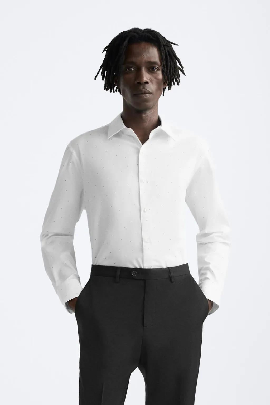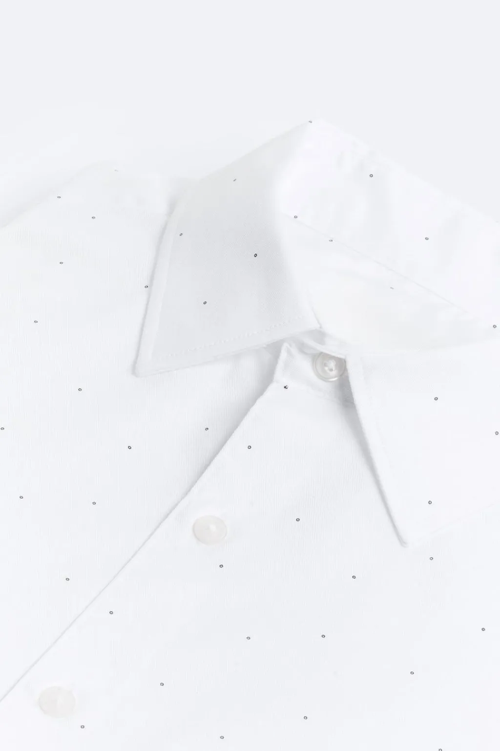 Regular fit. Cuello italiano y manga larga acabada en puño con botón. Cierre frontal de botonadura.