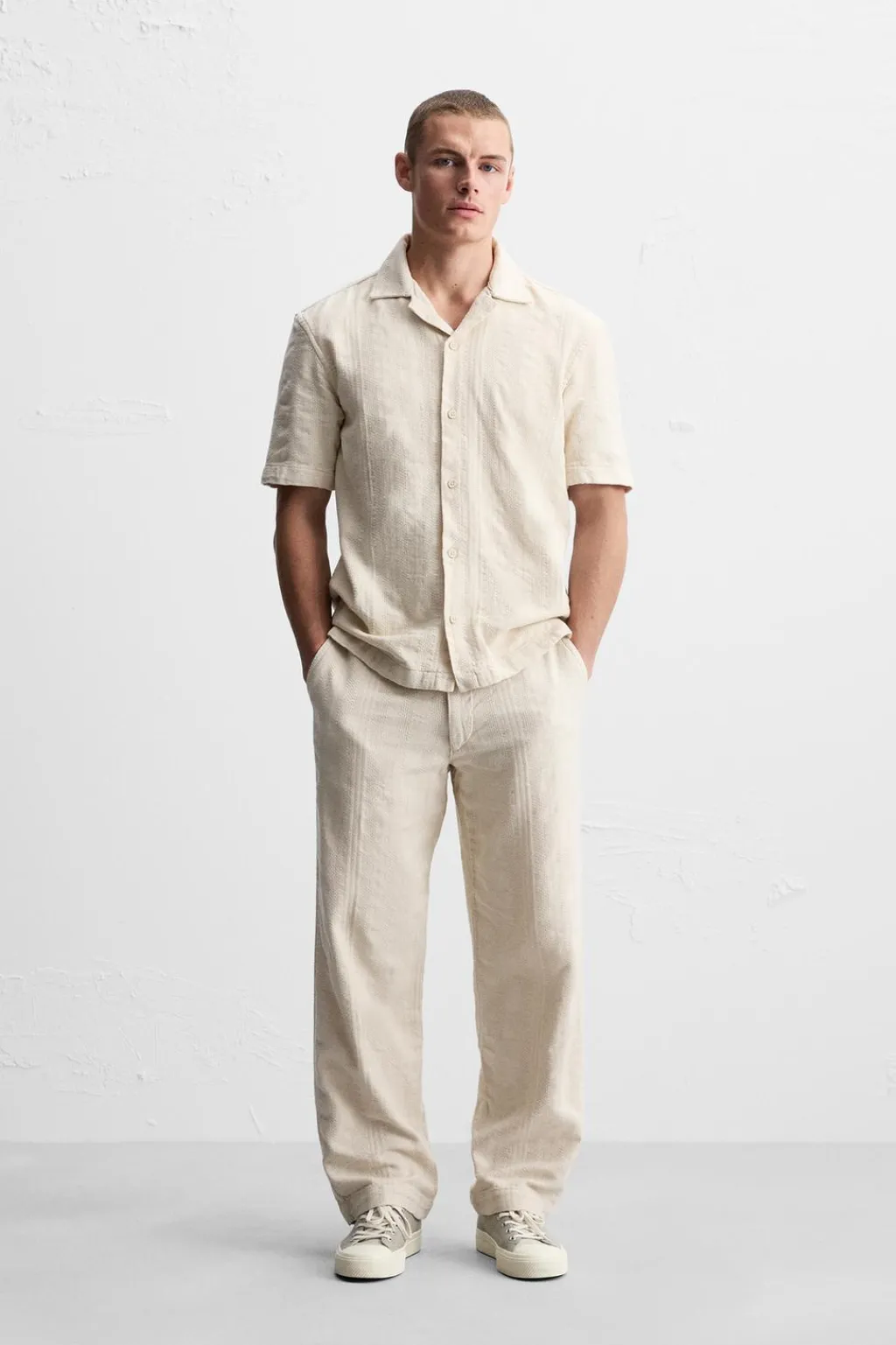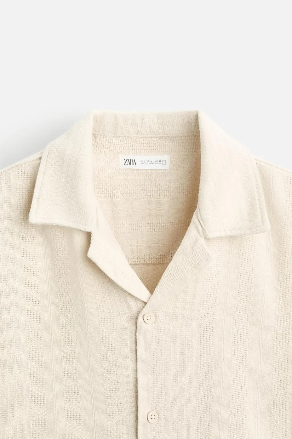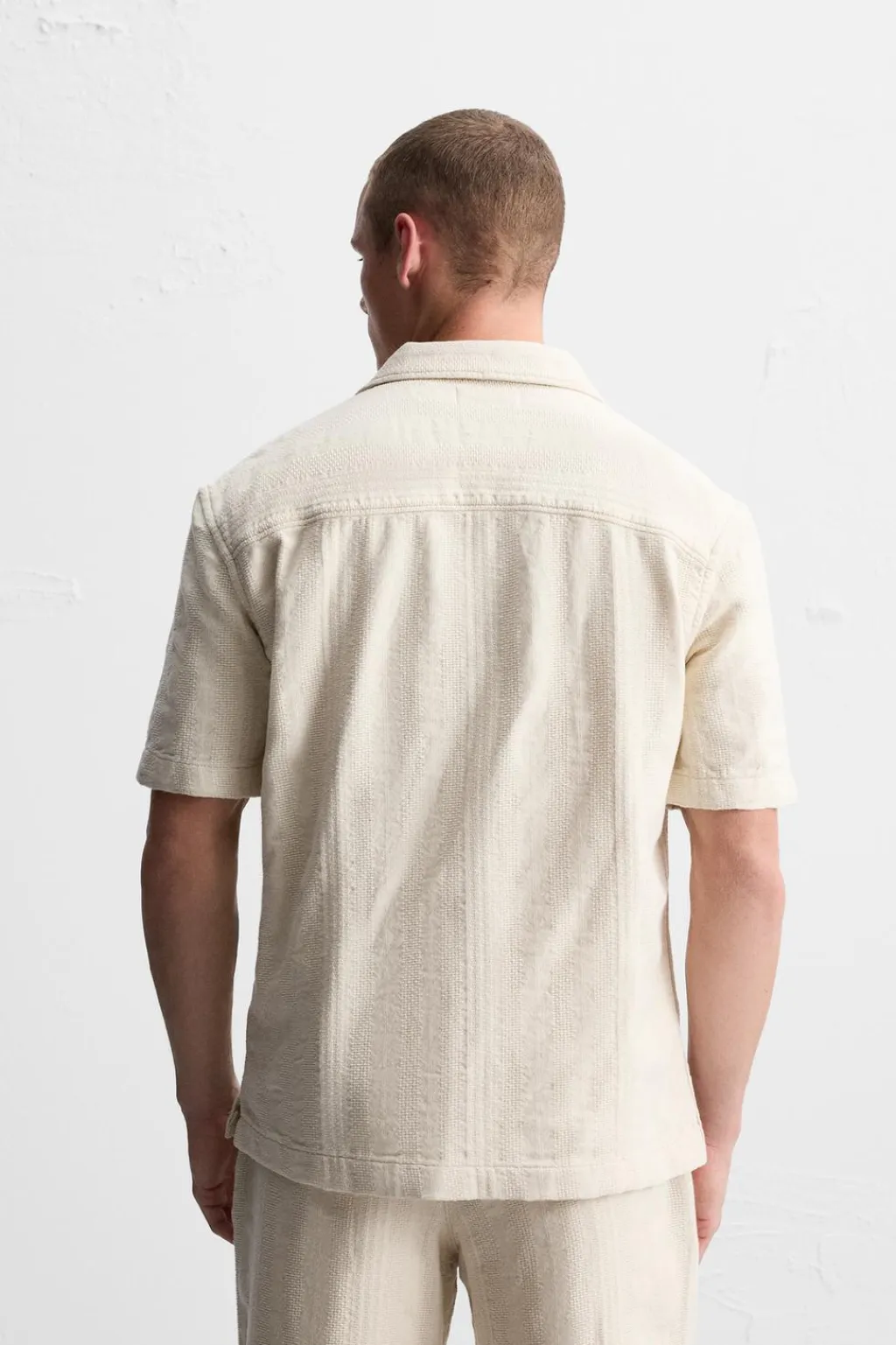 Camisa relaxed fit. Cuello bowling y manga corta. Bajo con aberturas laterales. Cierre frontal de botonadura.