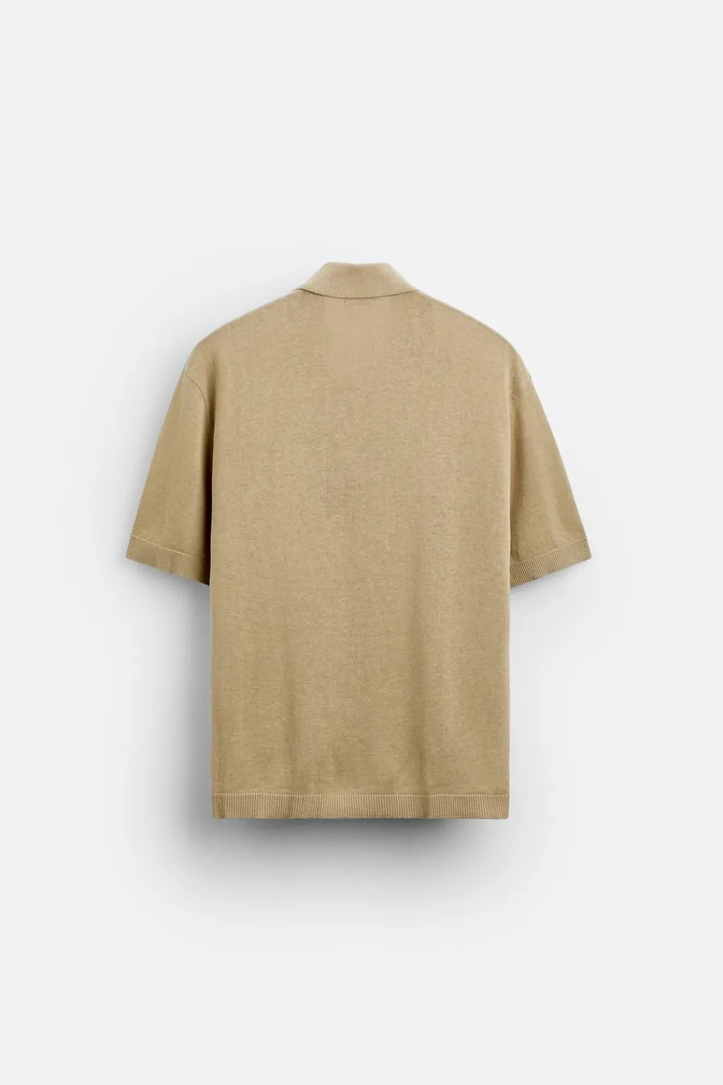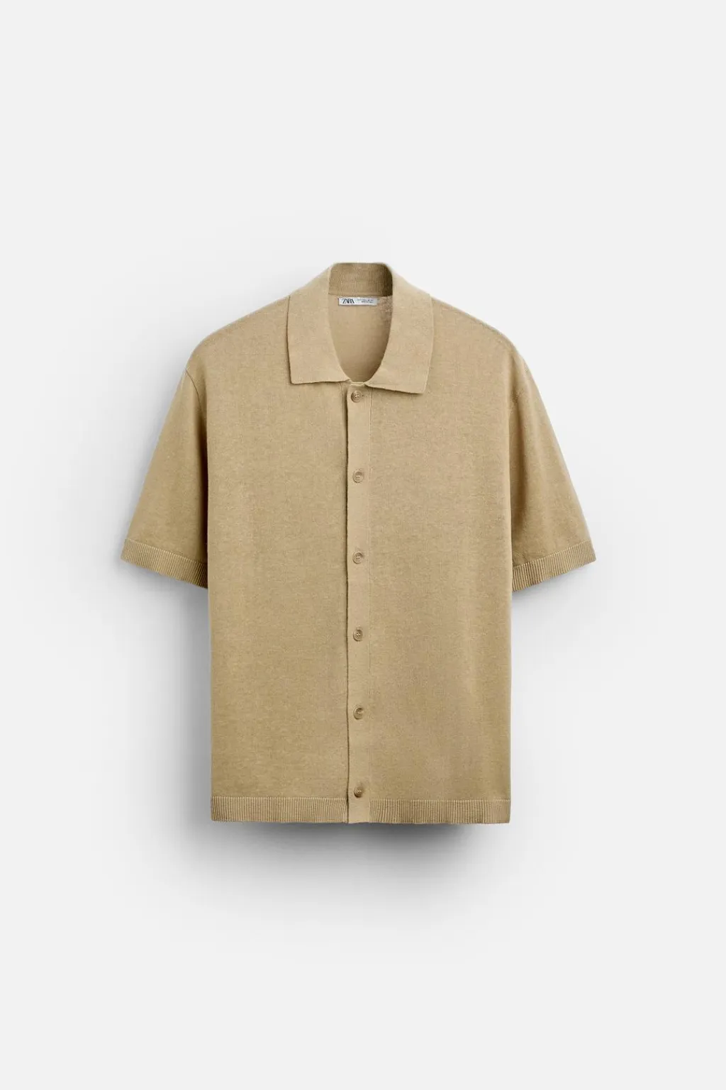 Camisa regular fit tejida en hilatura con mezcla de algodón y lino. Cuello solapa y manga corta. Acabados en rib. Cierre frontal de botonadura.