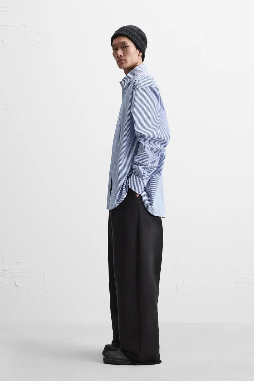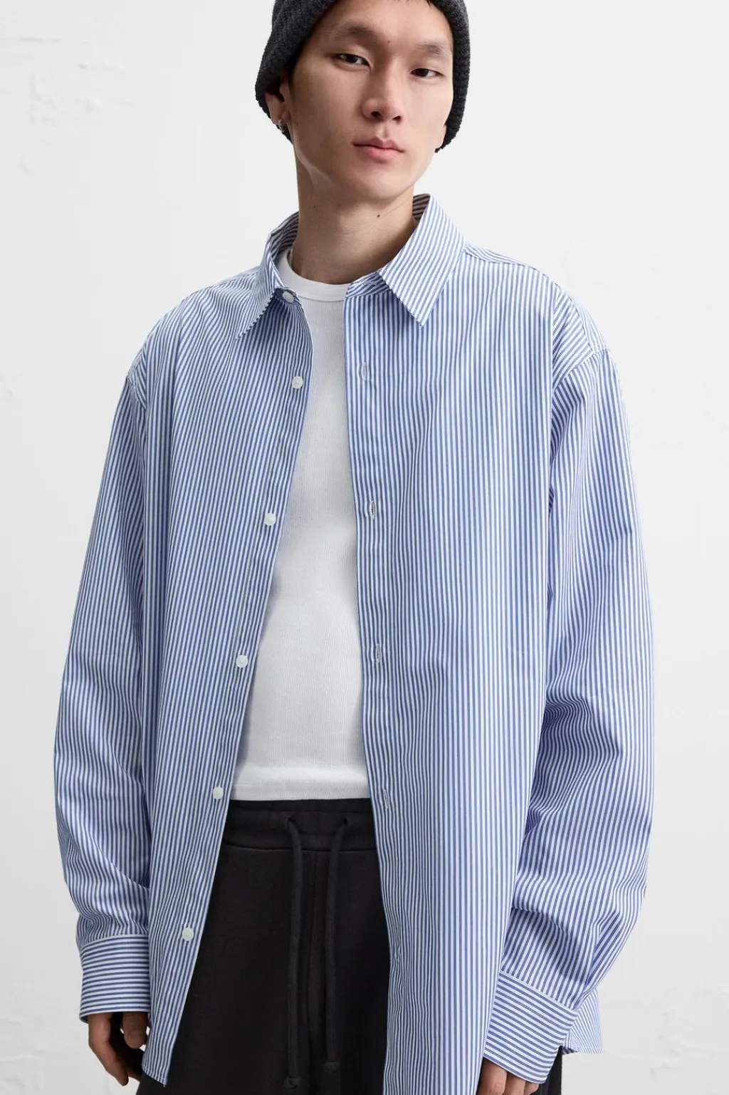 Camisa relaxed fit confeccionada en tejido de algodón. Cuello solapa y manga larga acabada en puño con botón. Cierre frontal de botonadura.