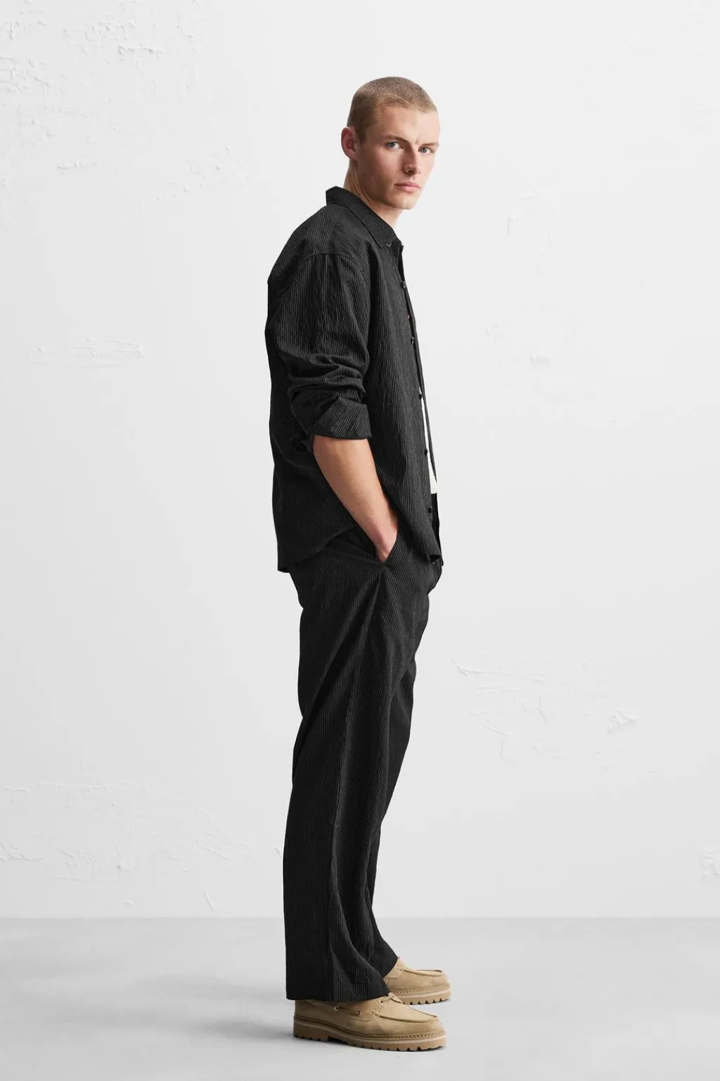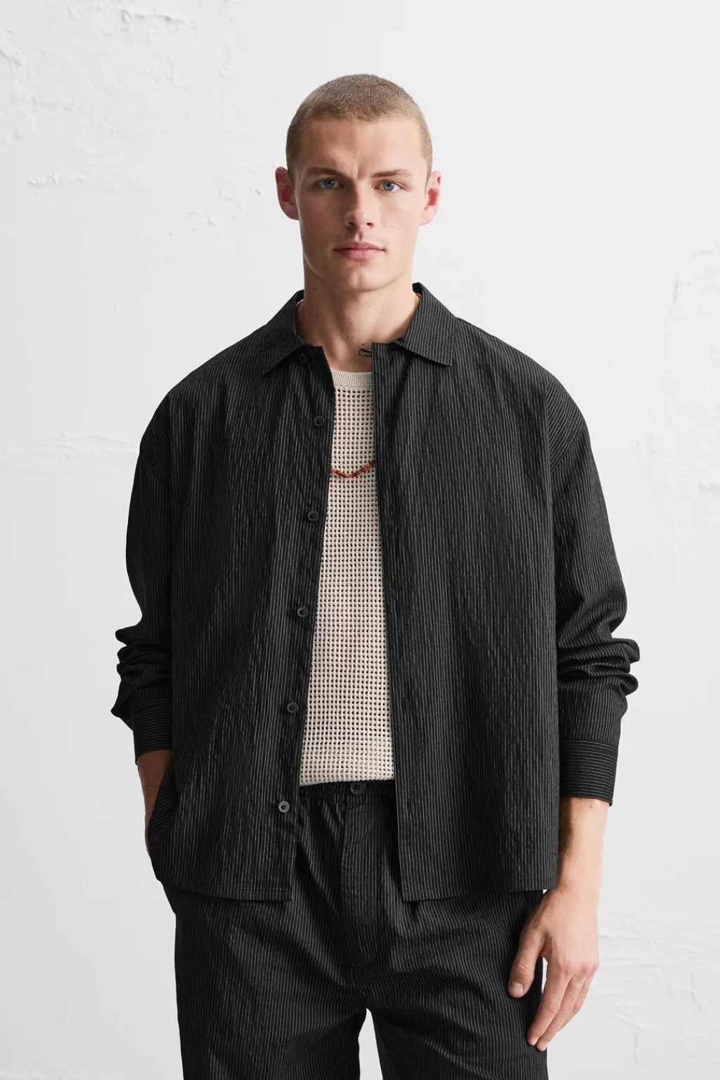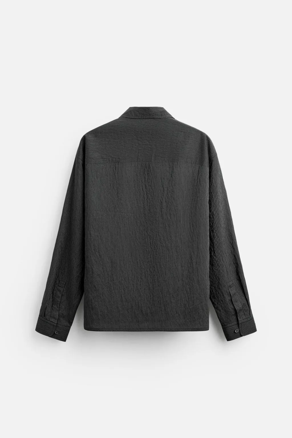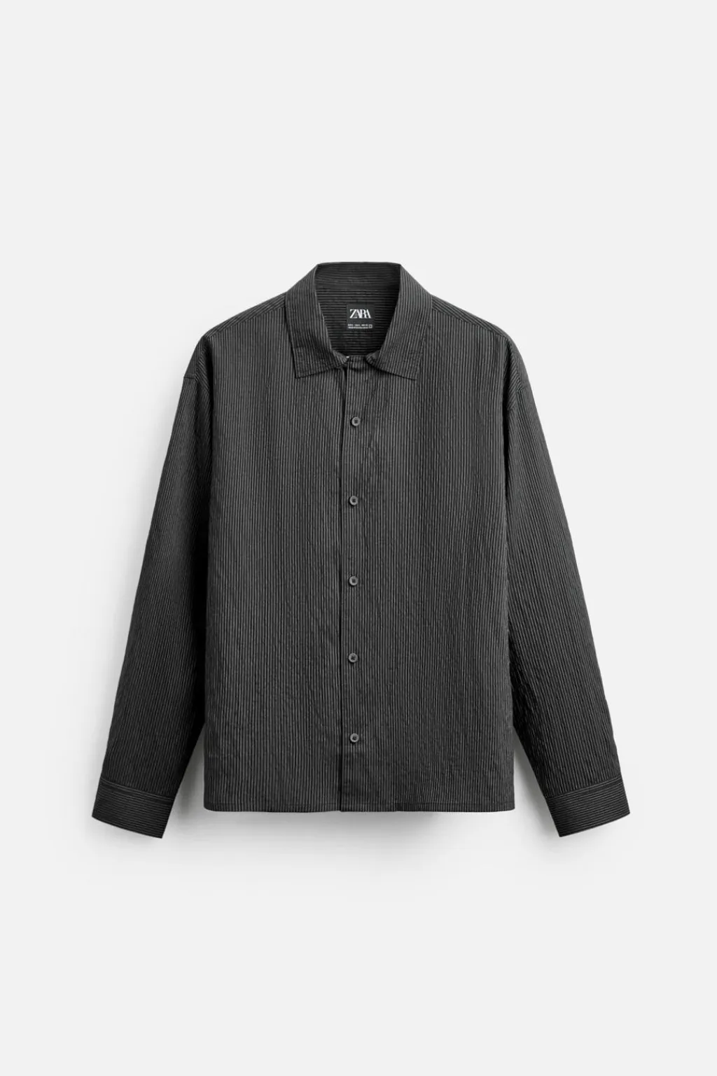 Camisa relaxed fit confeccionada en tejido con mezcla de modal. Cuello solapa y manga larga acabada en puño con botón. Cierre frontal de botonadura.