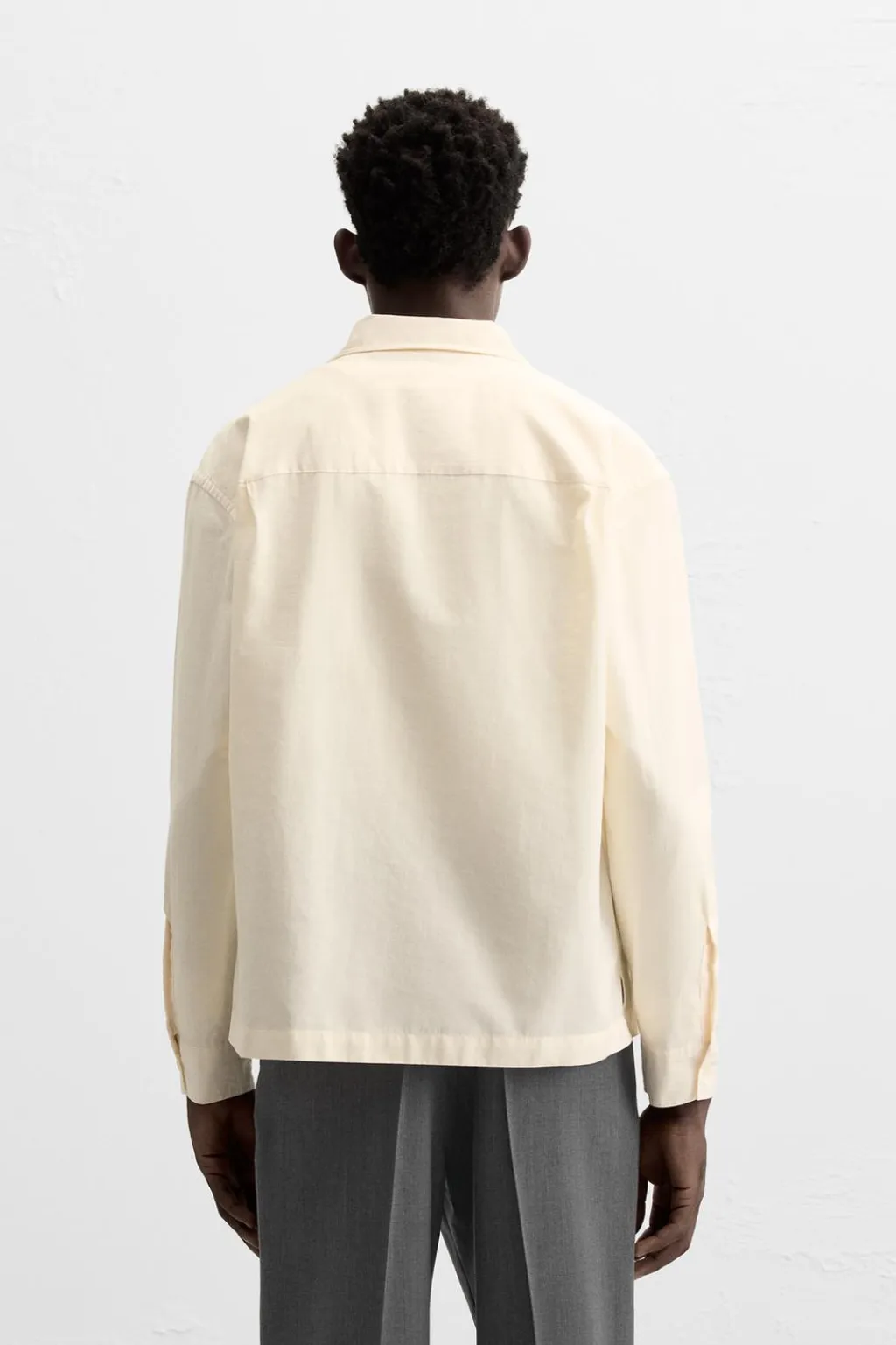 Camisa relaxed fit confeccionada en tejido con mezcla de algodón. Cuello solapa y manga larga acabada en puño con botón. Cierre frontal de botonadura.