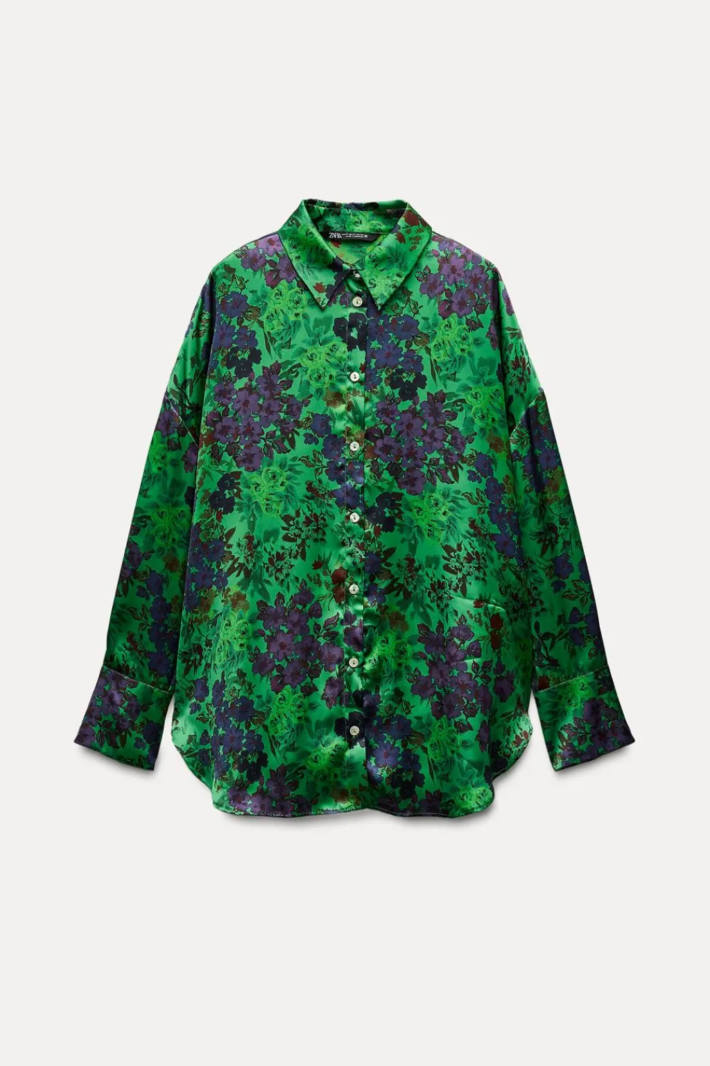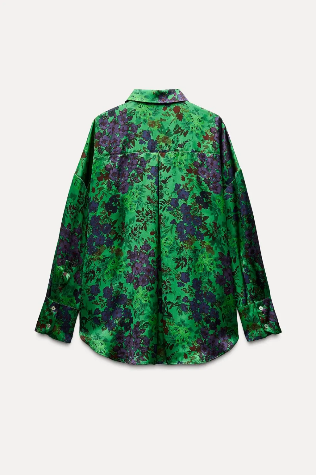 Camisa confeccionada en tejido satinado. Cuello solapa y manga larga acabada en puño. Cierre frontal con botones.