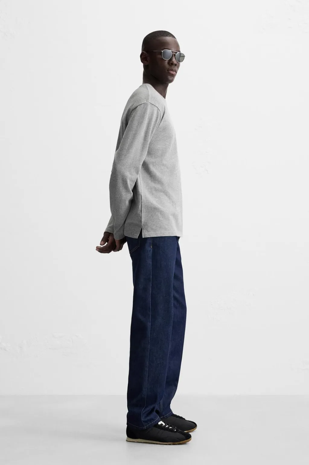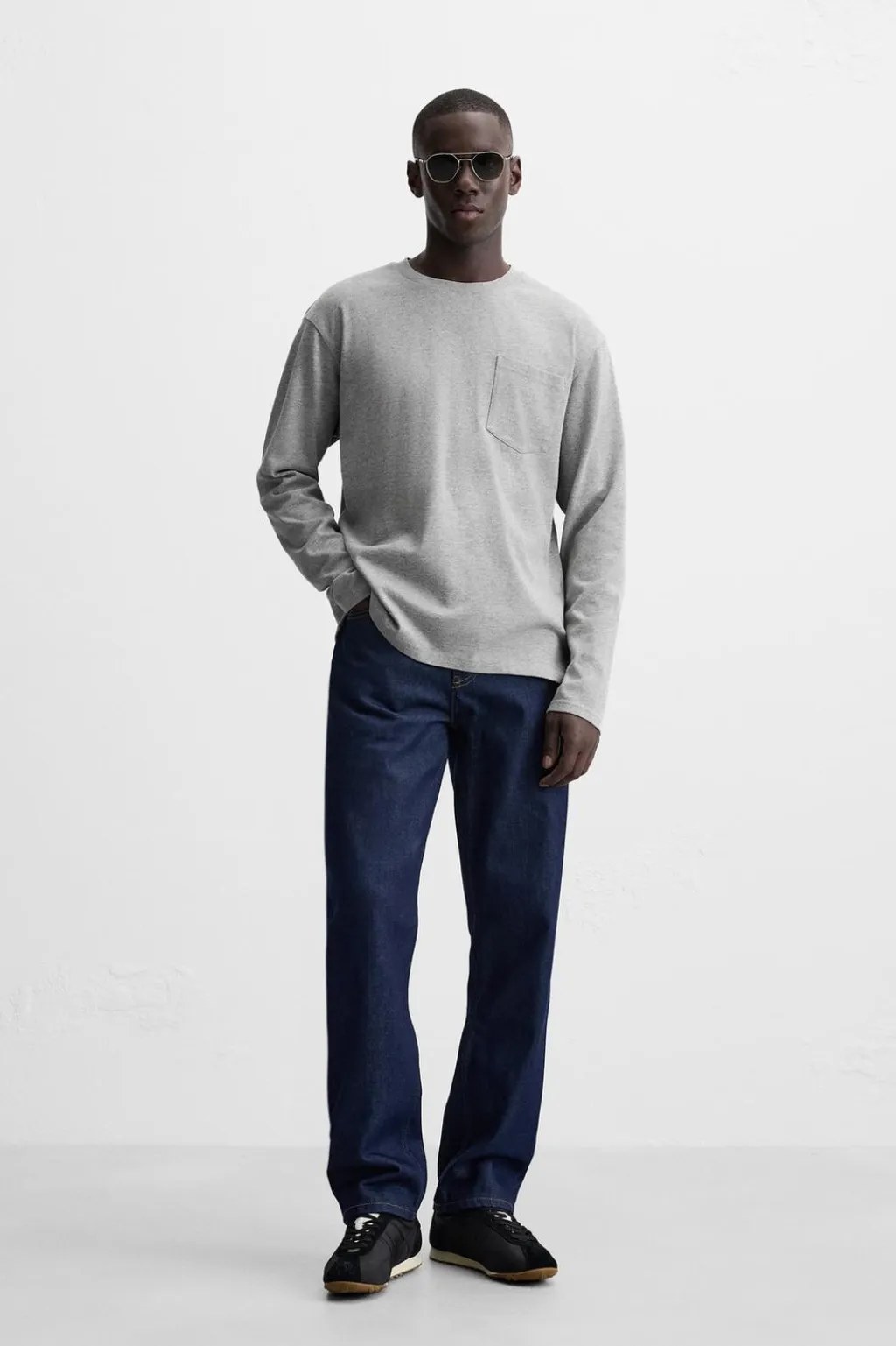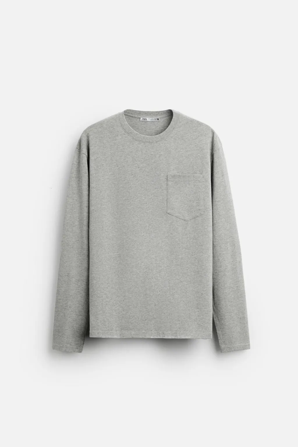 Camiseta relaxed fit. Cuello redondo y manga larga. Bolsillo plastrón en pecho. Bajo con aberturas laterales.