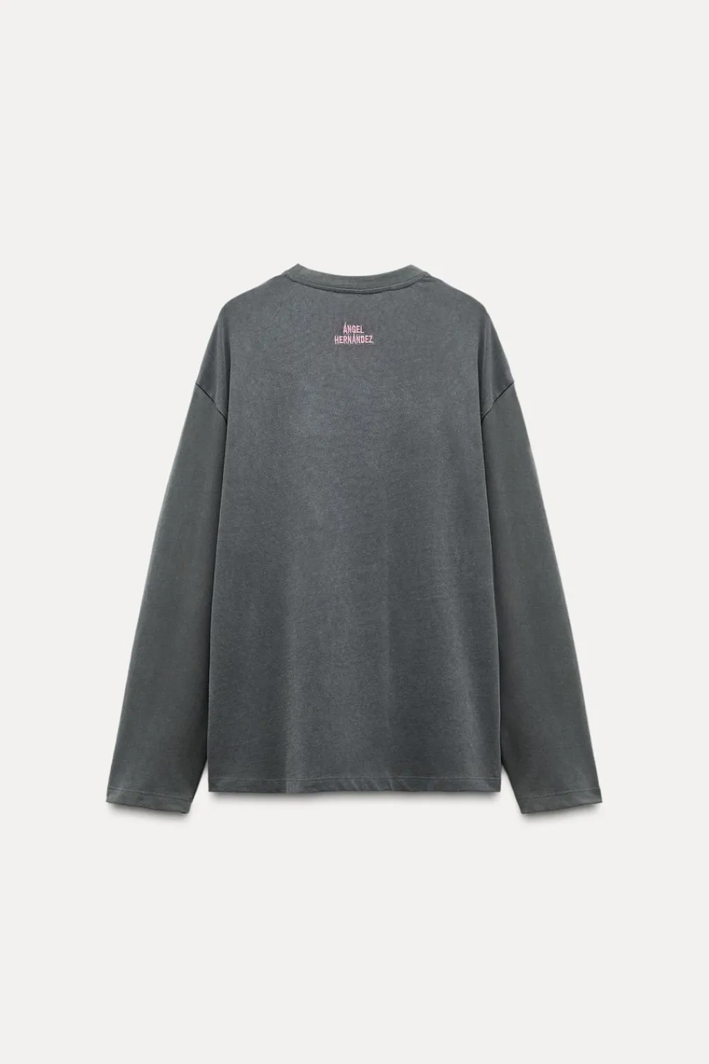 Camiseta confeccionada en hilatura de algodón. Cuello redondo y manga larga. Detalle de estampación Ángel Hernández en delantero.