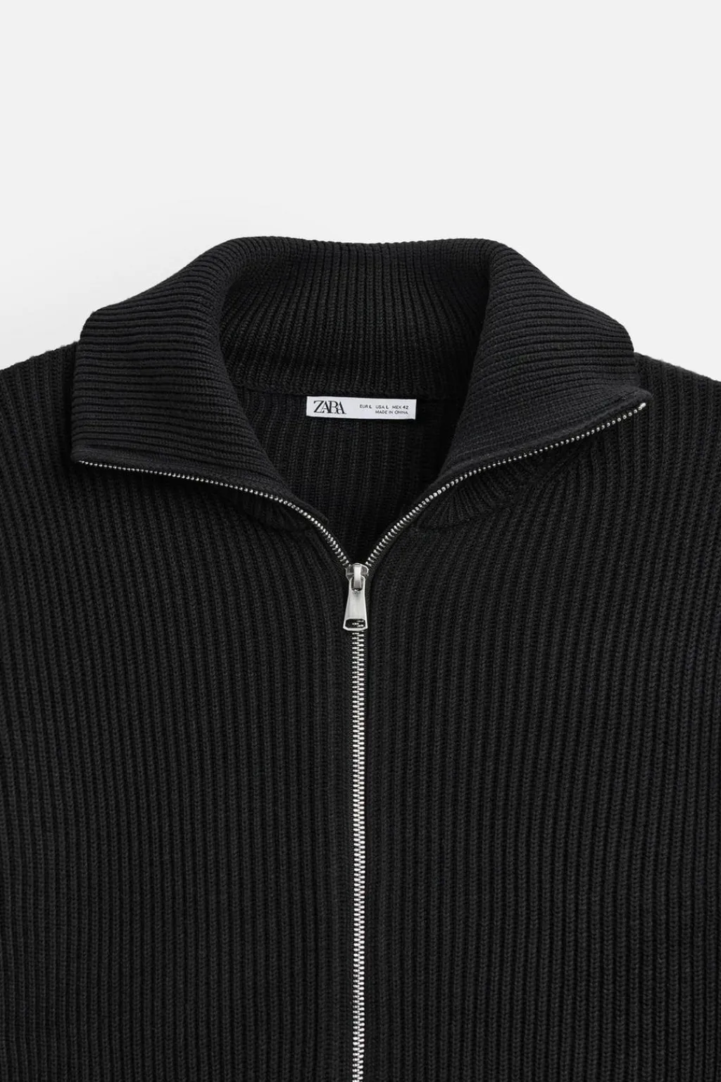 Cárdigan regular fit. Cuello subido y manga larga. Acabados en rib. Cierre frontal de cremallera.