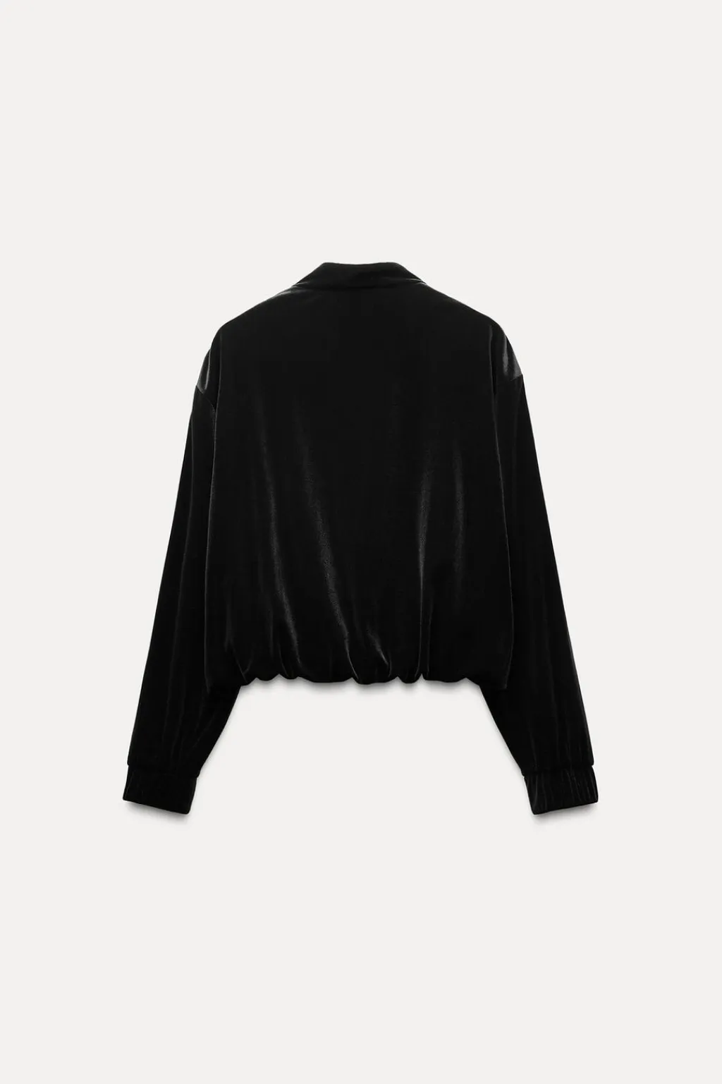 Cazadora estilo bomber de cuello redondo y manga larga acabada en puño elástico. Bolsillos delanteros de vivo. Bajo acabado con elástico interior y cordones. Cierre frontal con botones a presión.