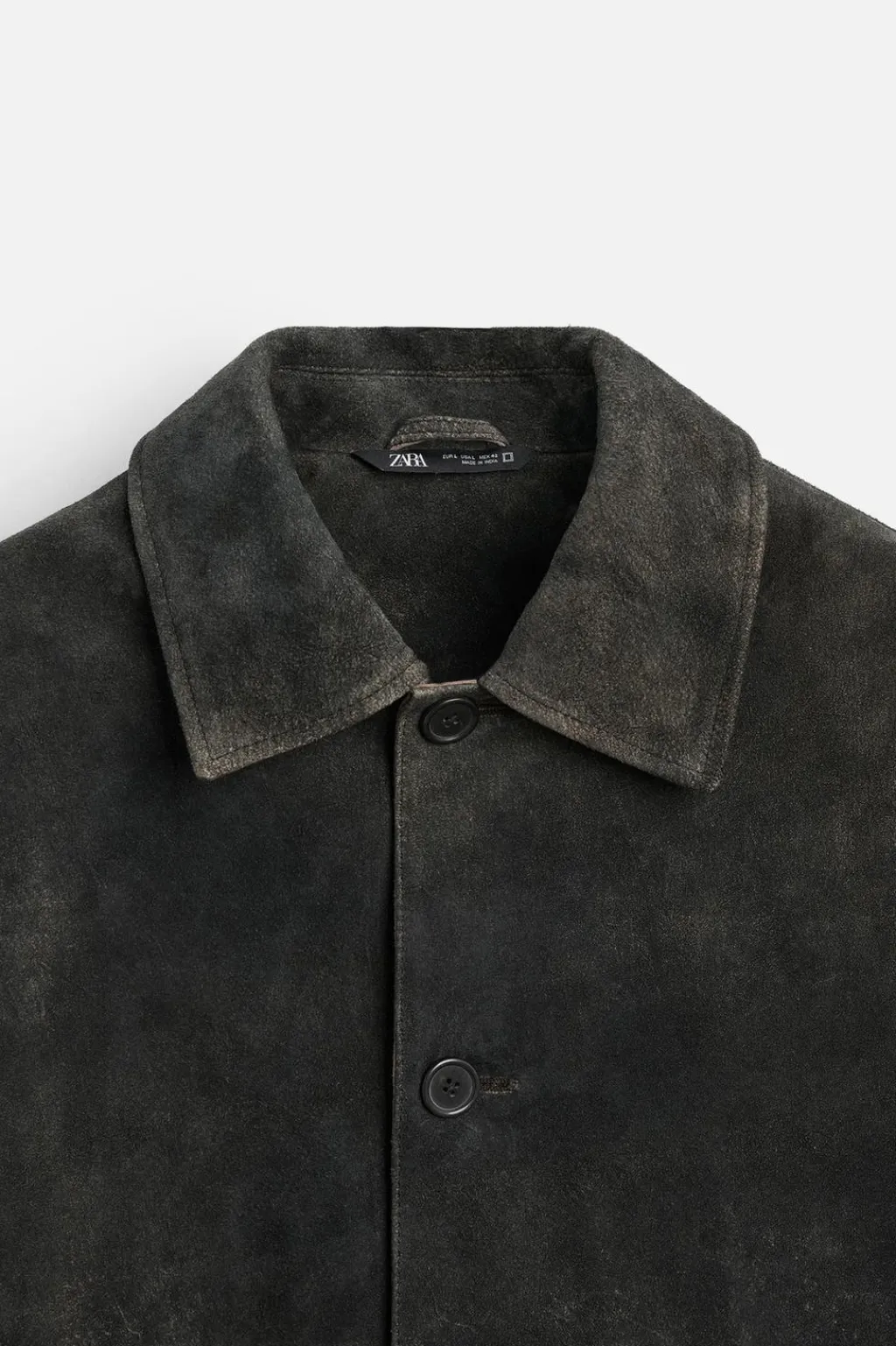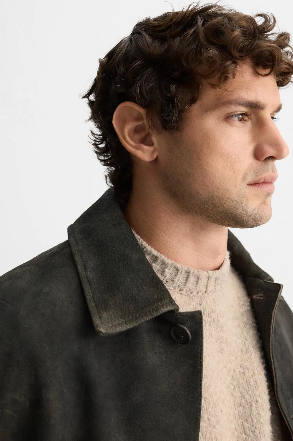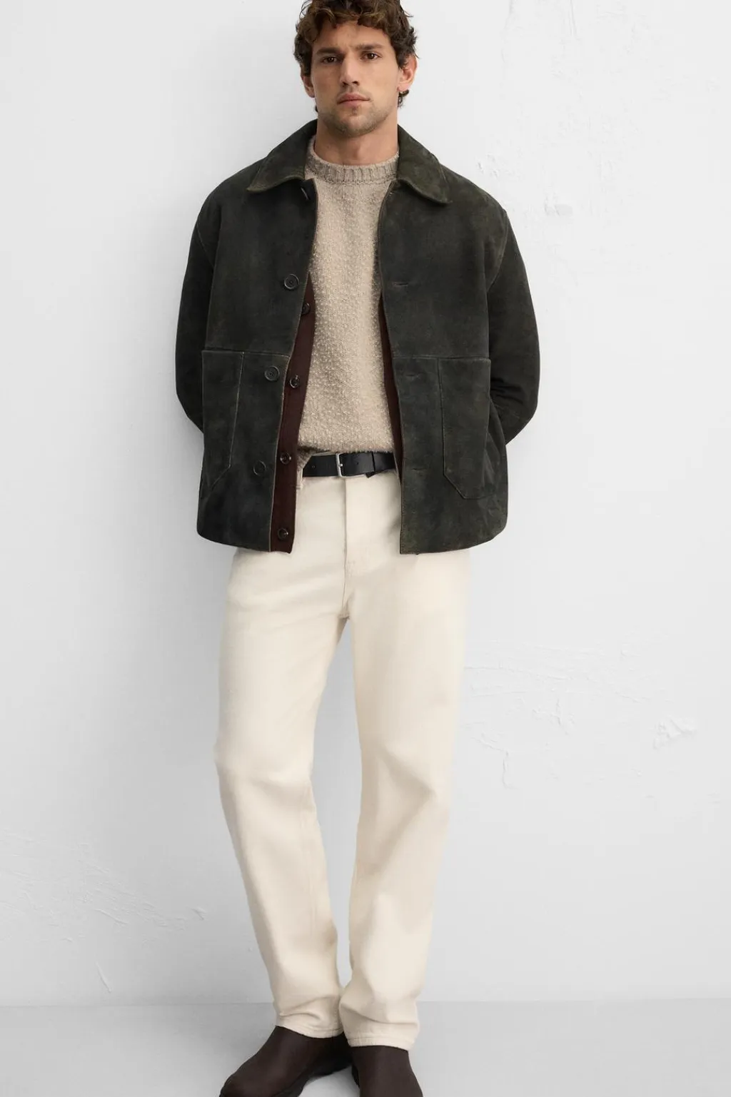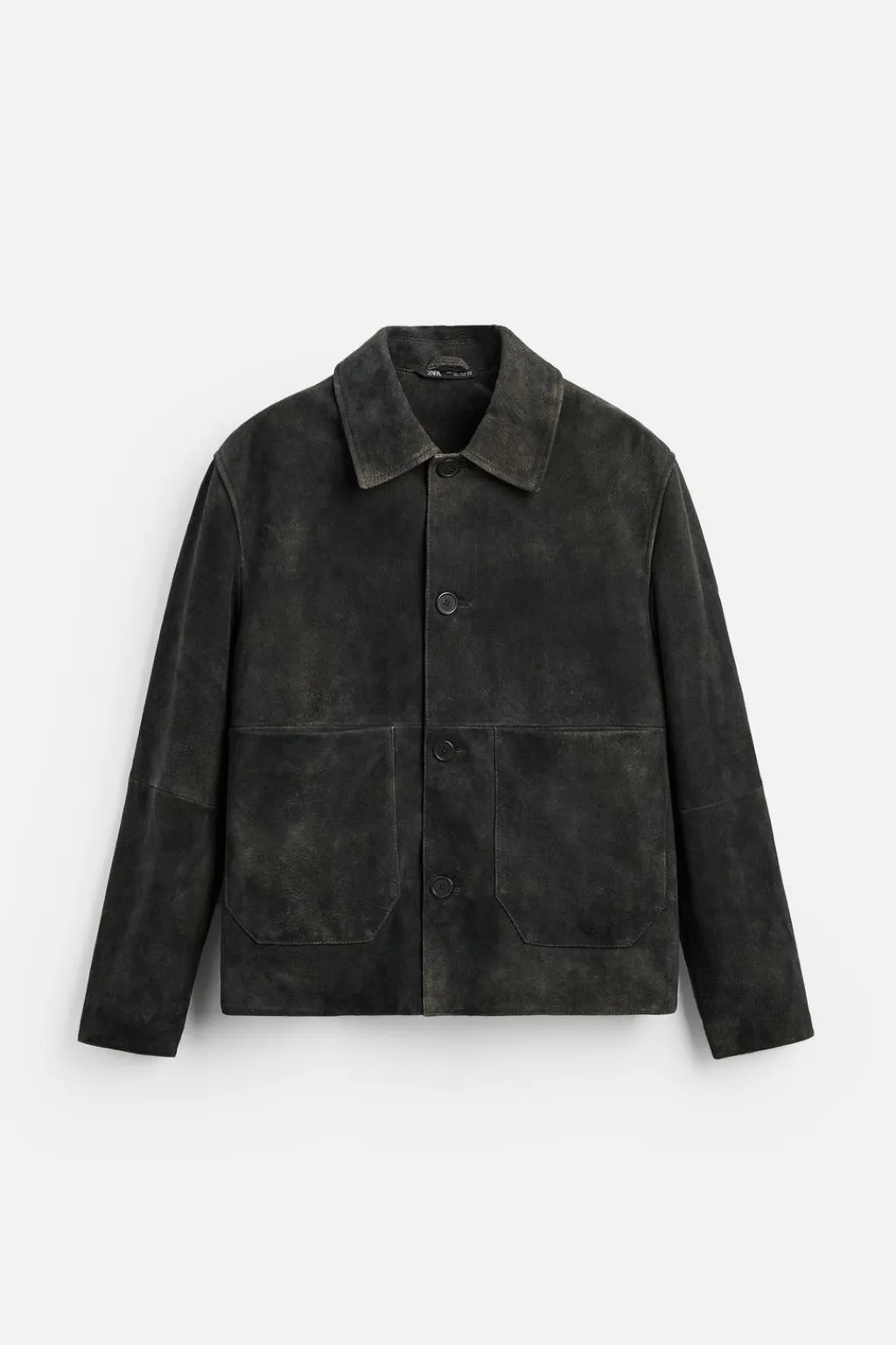 Cazadora regular fit confeccionada en piel con acabado ante. Cuello solapa y manga larga. Bolsillos plastrón en cadera y detalle de bolsillo interior. Cierre frontal de botonadura.