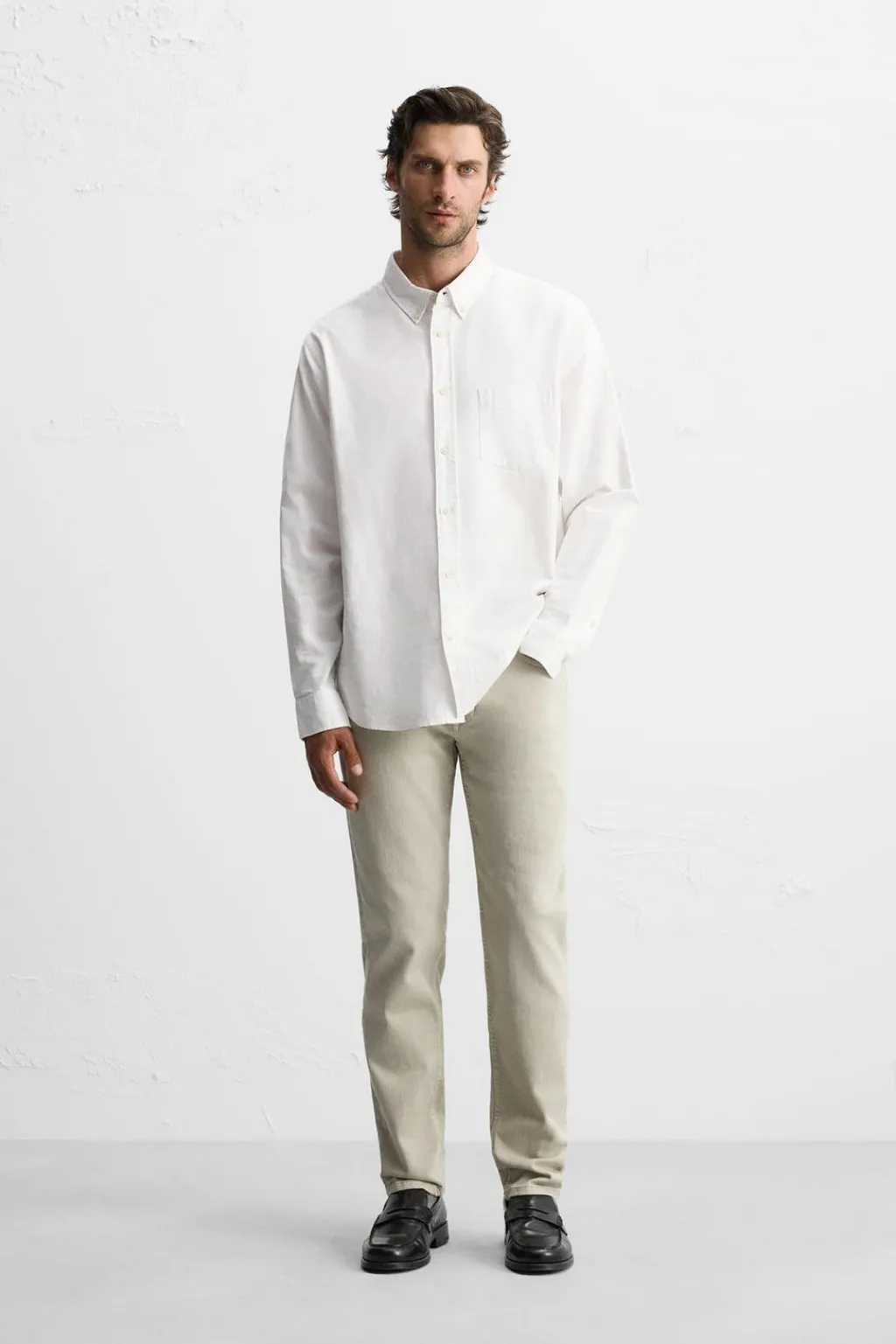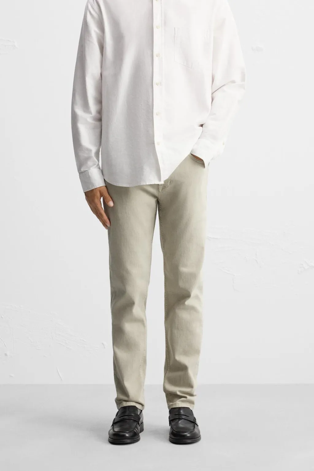 Jeans slim fit. Cinco bolsillos. Cierre frontal con cremallera y botón.