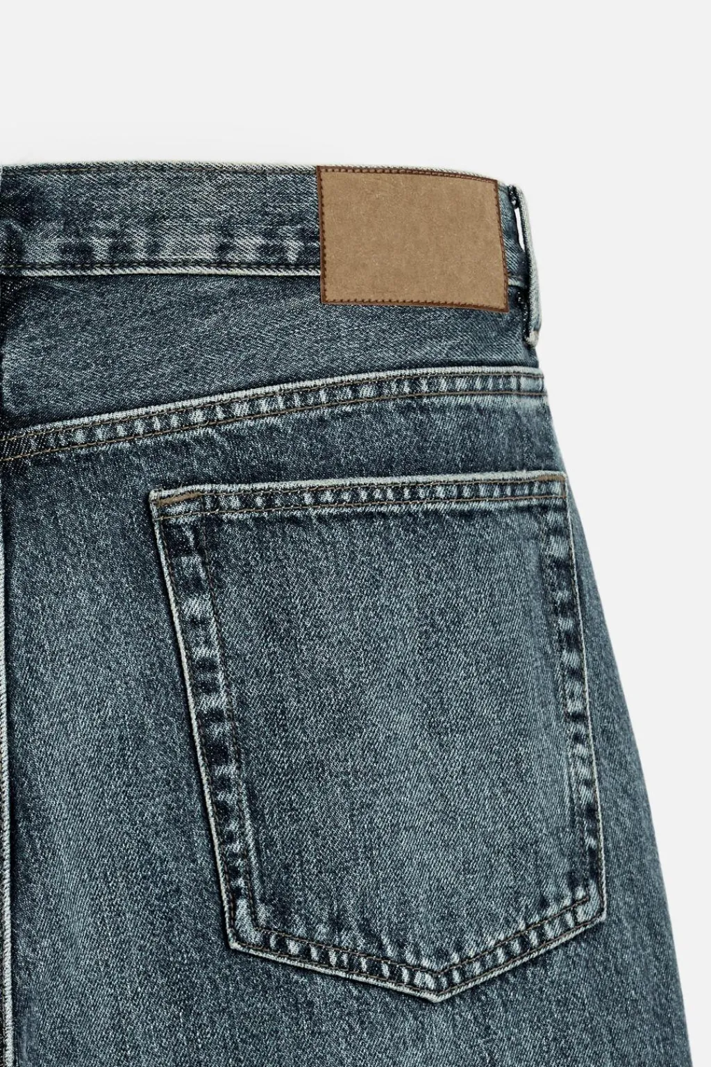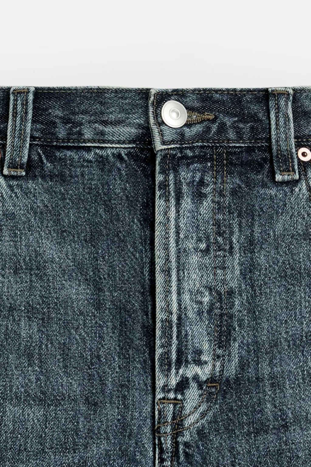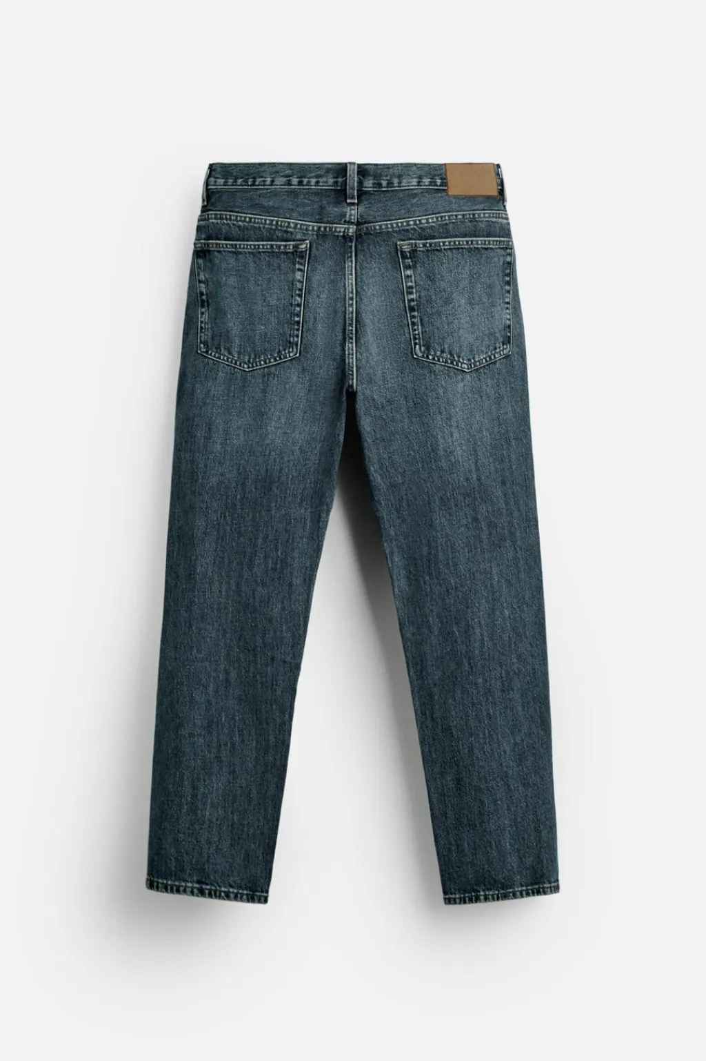 Jeans straight fit. Cinco bolsillos. Efecto lavado. Cierre frontal con botones.