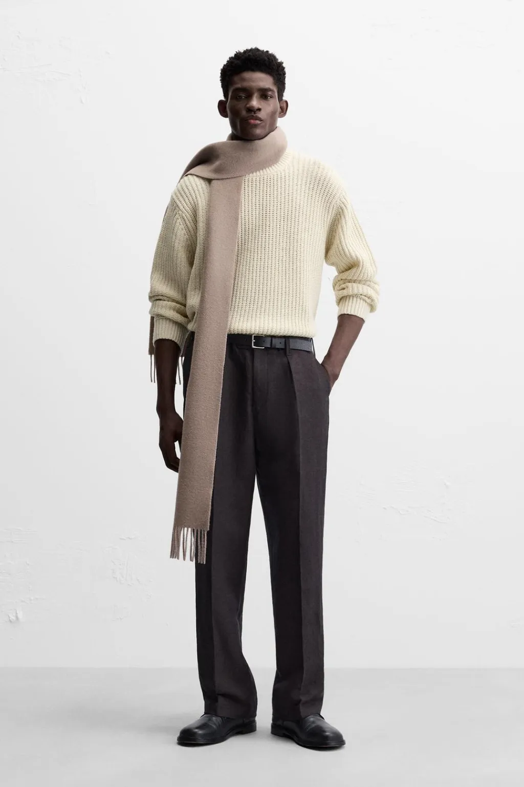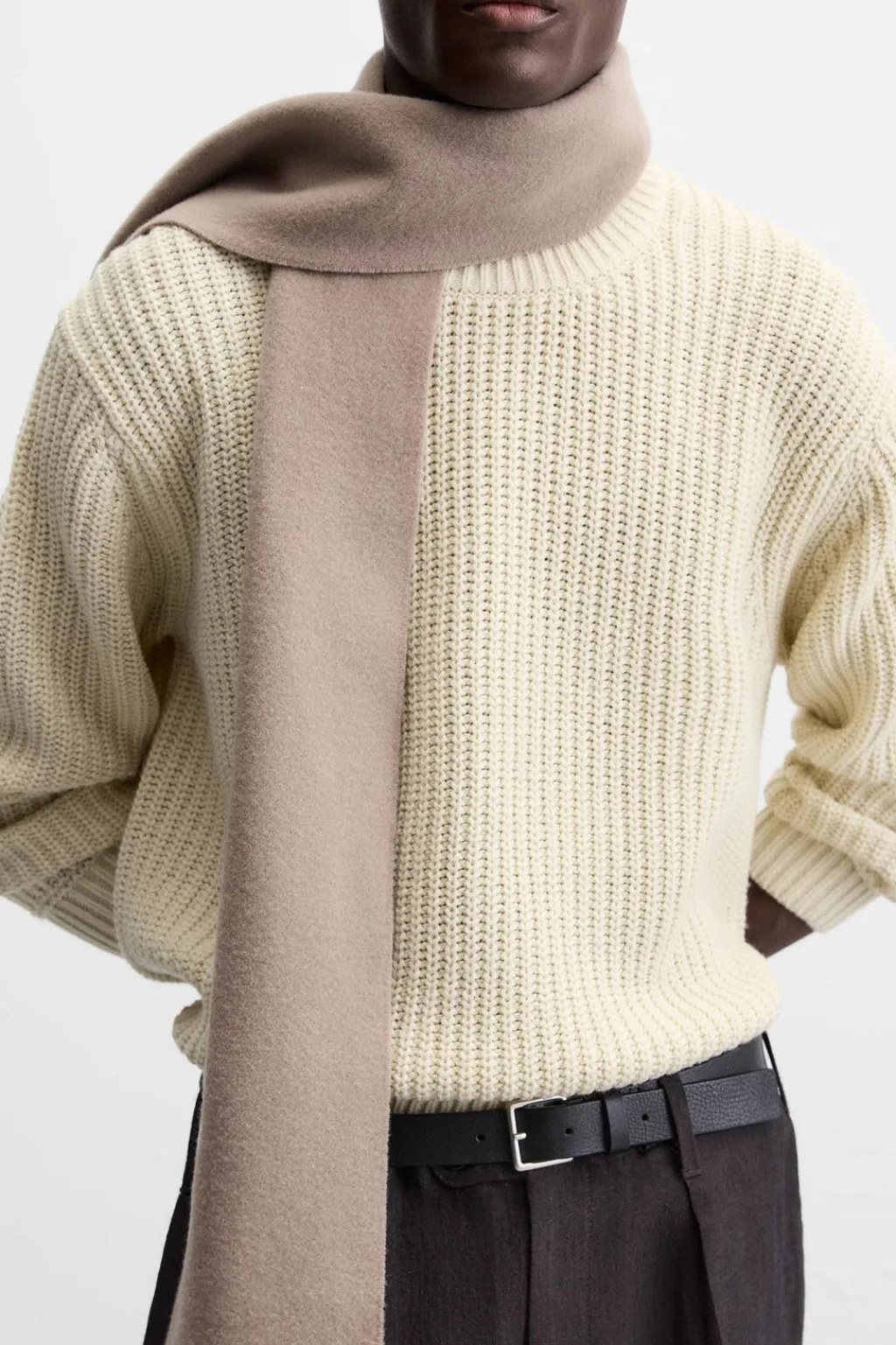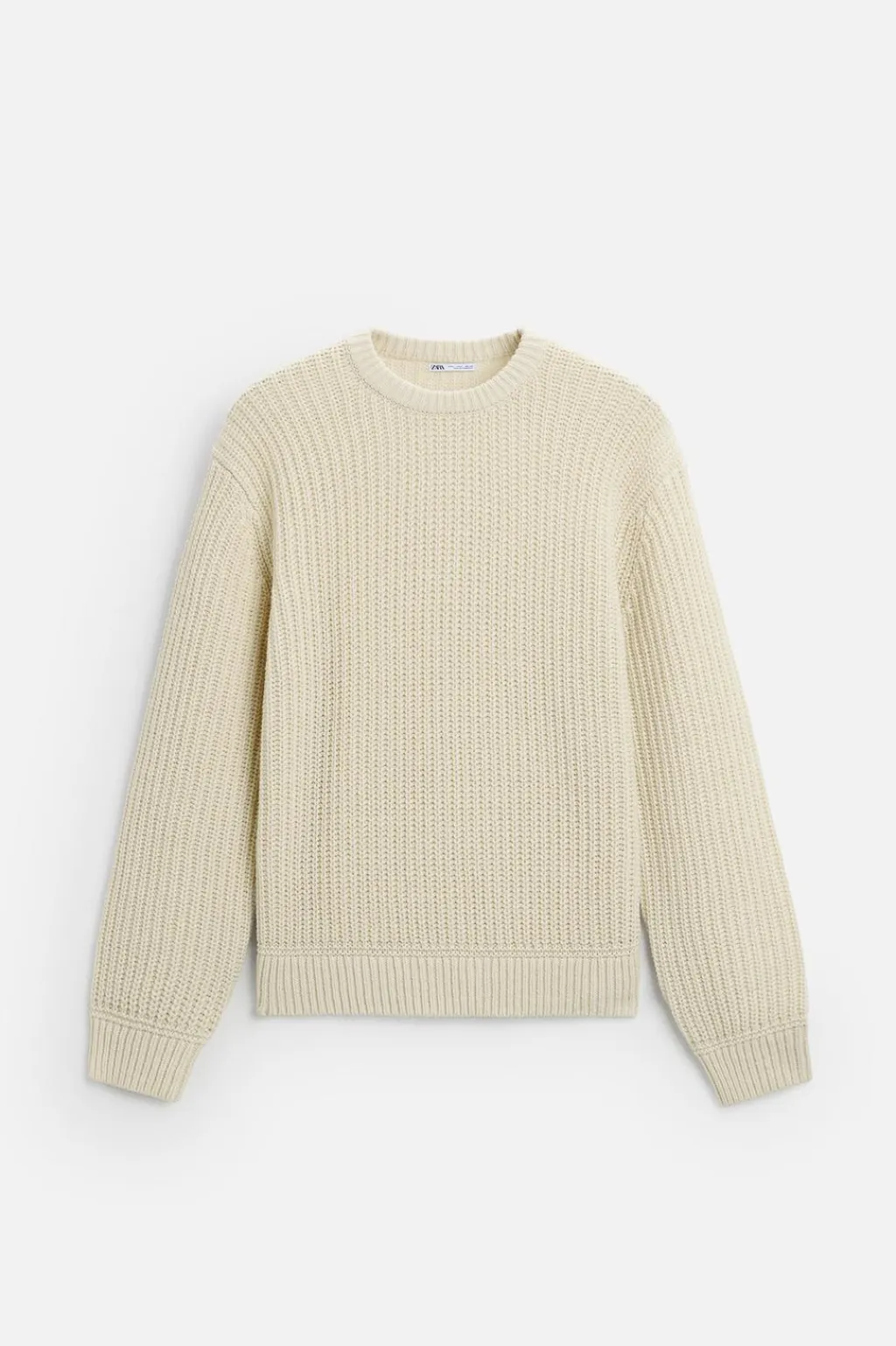 Jersey relaxed fit tejido en hilatura con estructura. Cuello redondo y manga larga. Acabados en rib.