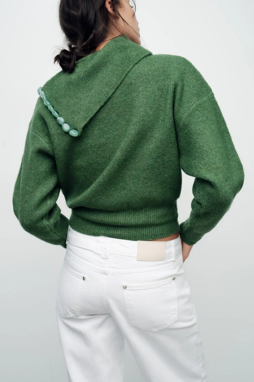 Jersey con solapa asimétrica y aplicación de bolas. Manga larga. Acabados en rib.