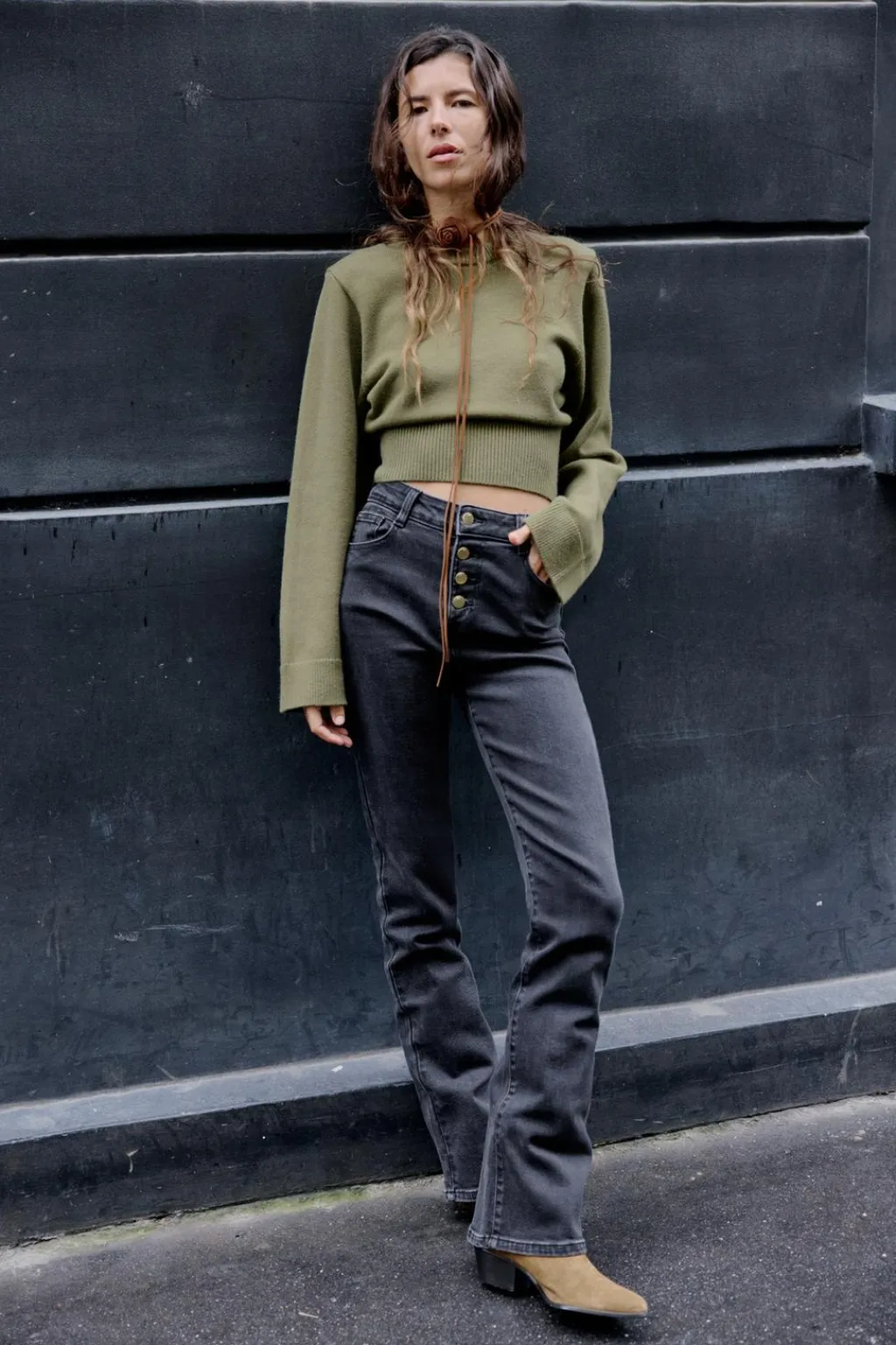 Jersey de cuello redondo con manga larga y ancha. Acabados en rib.