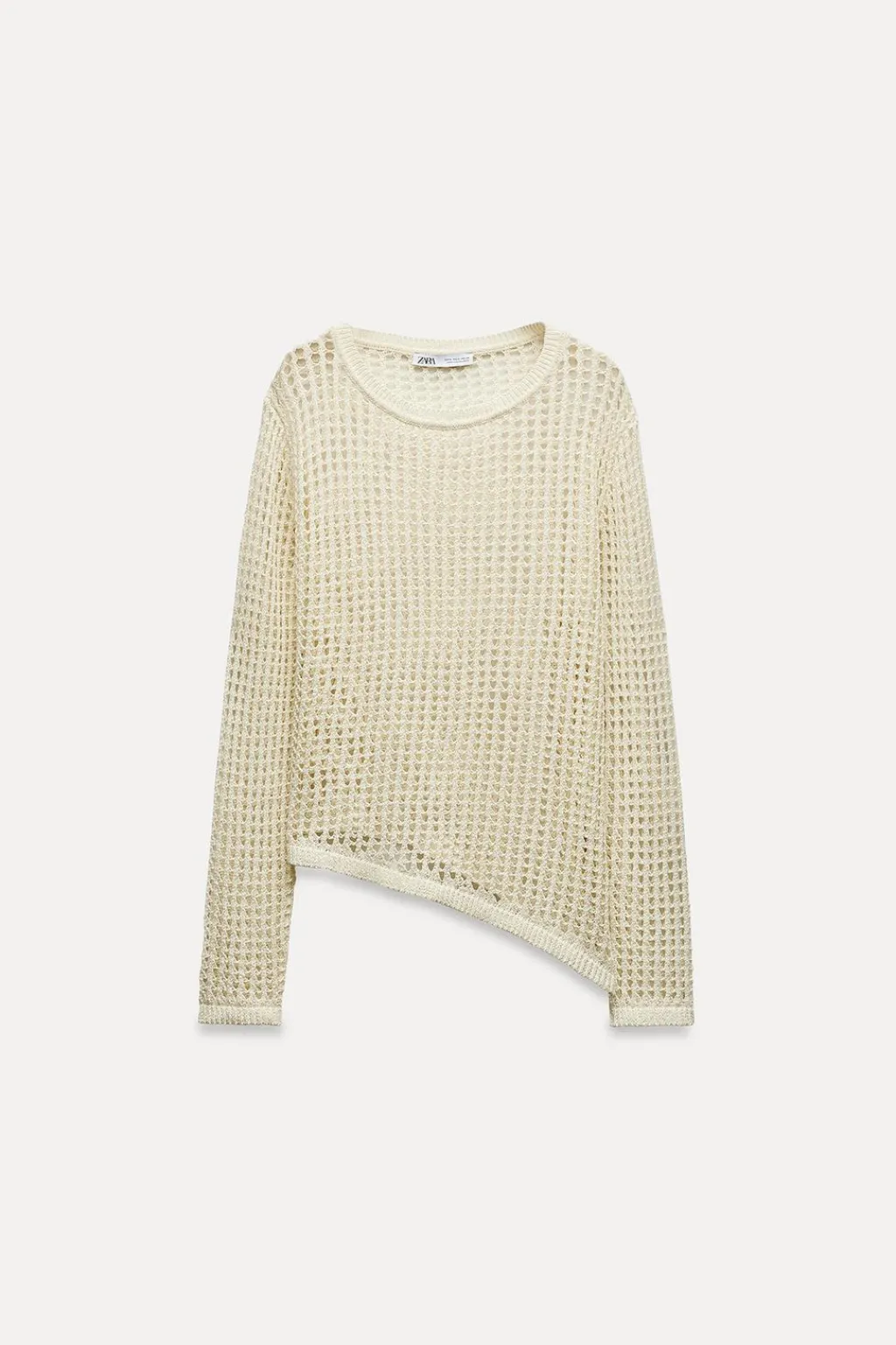 Jersey de punto abierto con cuello redondo y manga larga. Bajo asimétrico.