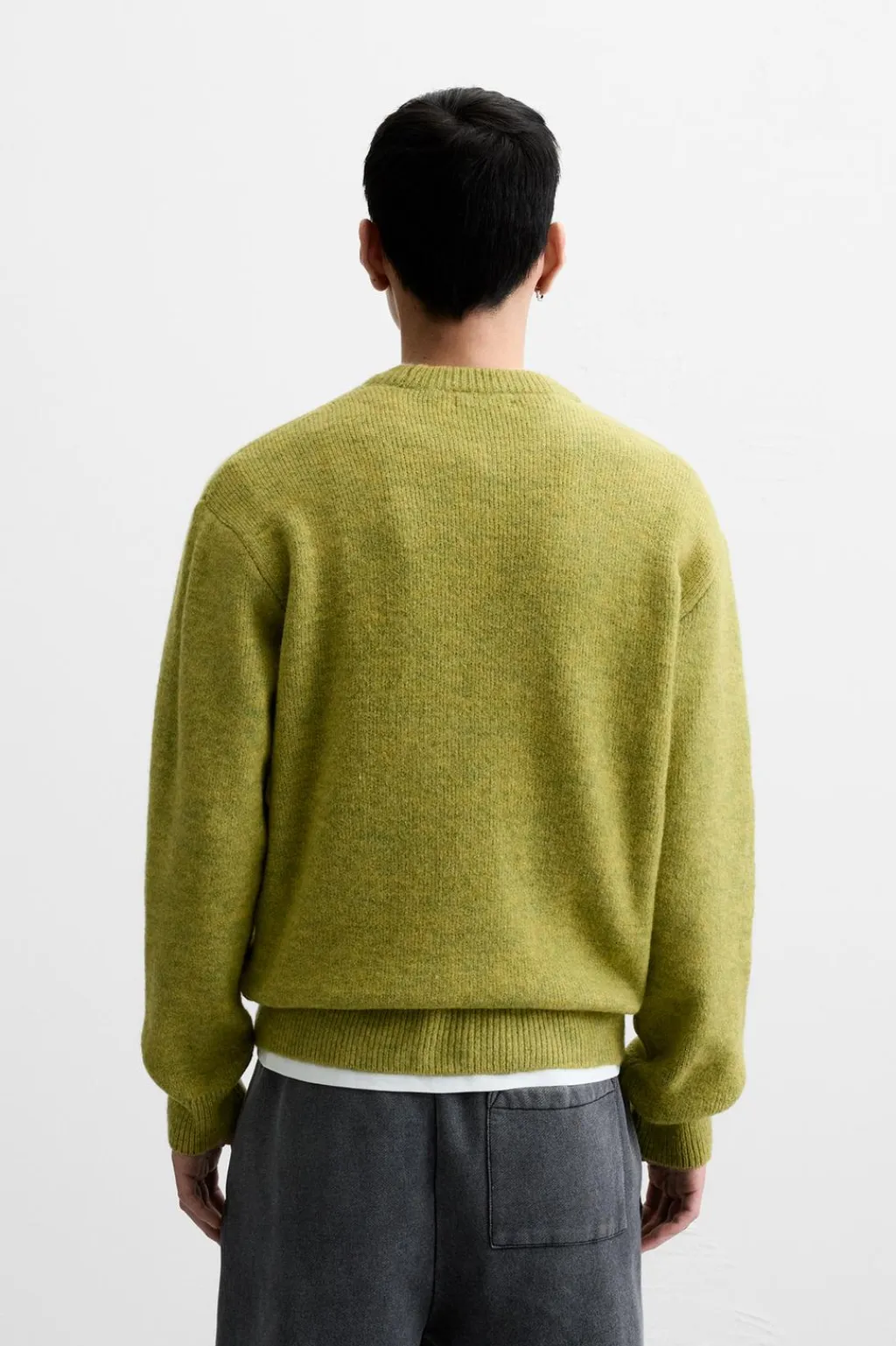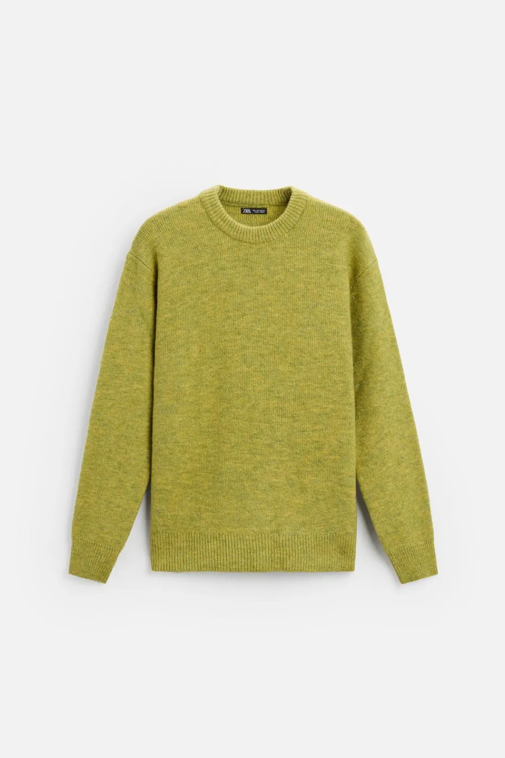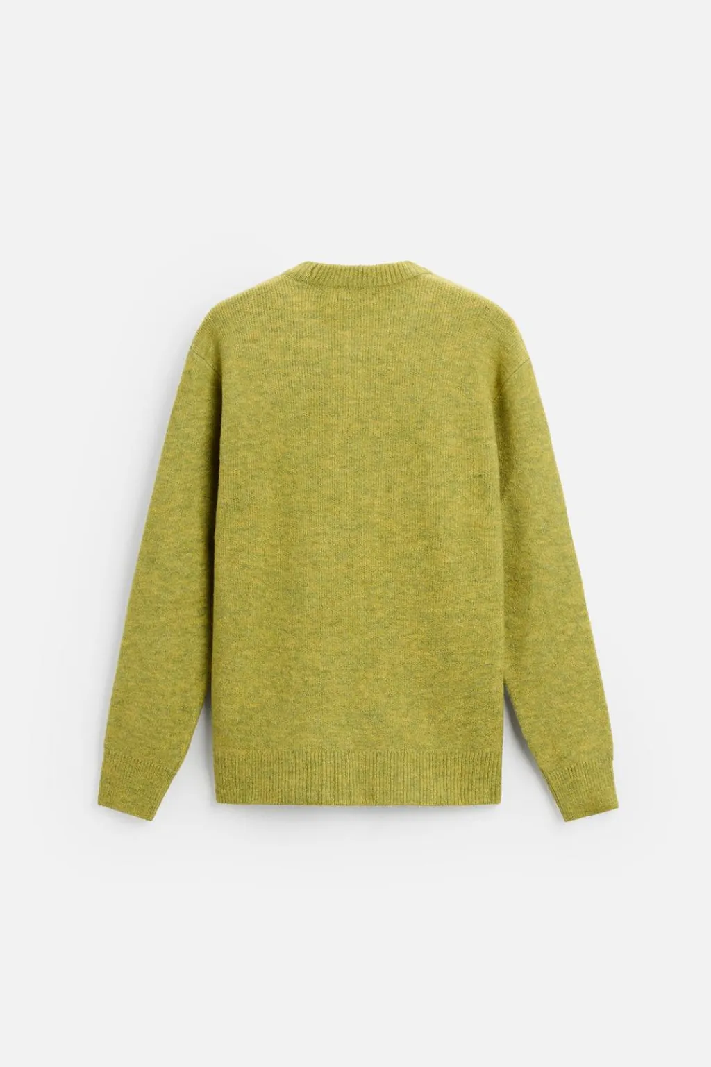 Jersey relaxed fit tejido en hilatura con textura efecto pelo. Cuello redondo y manga larga. Acabados en rib