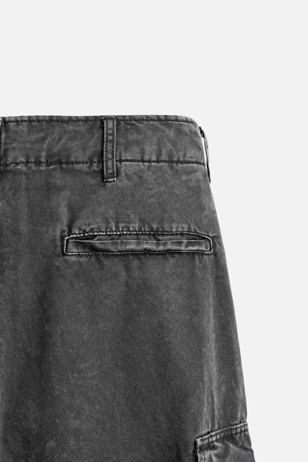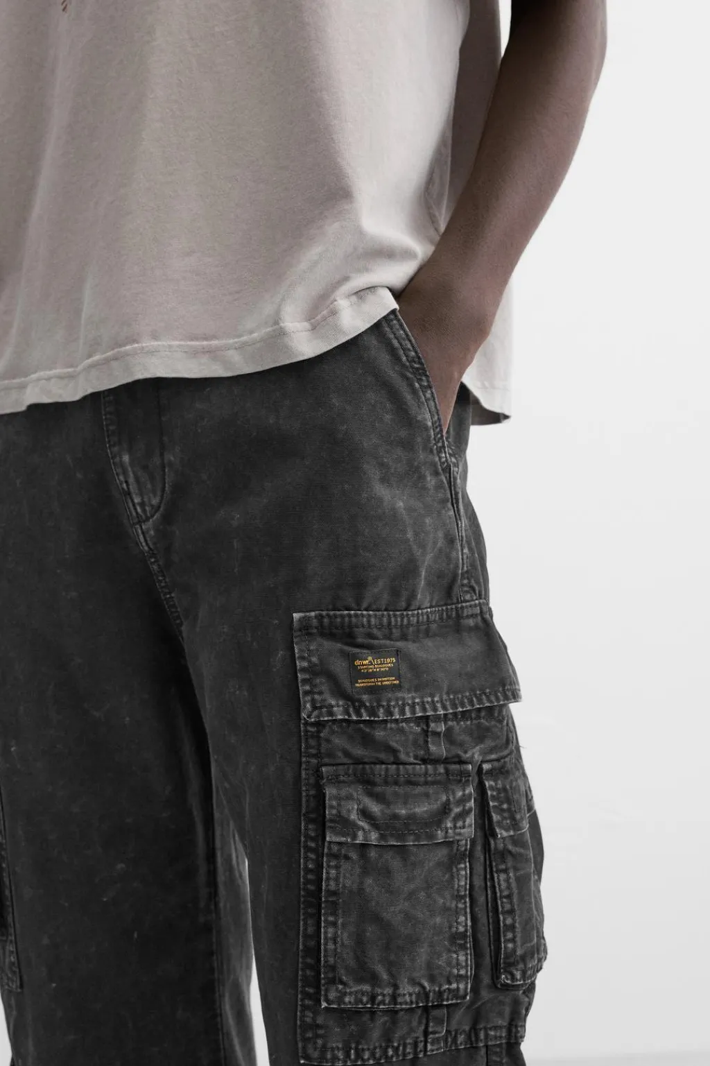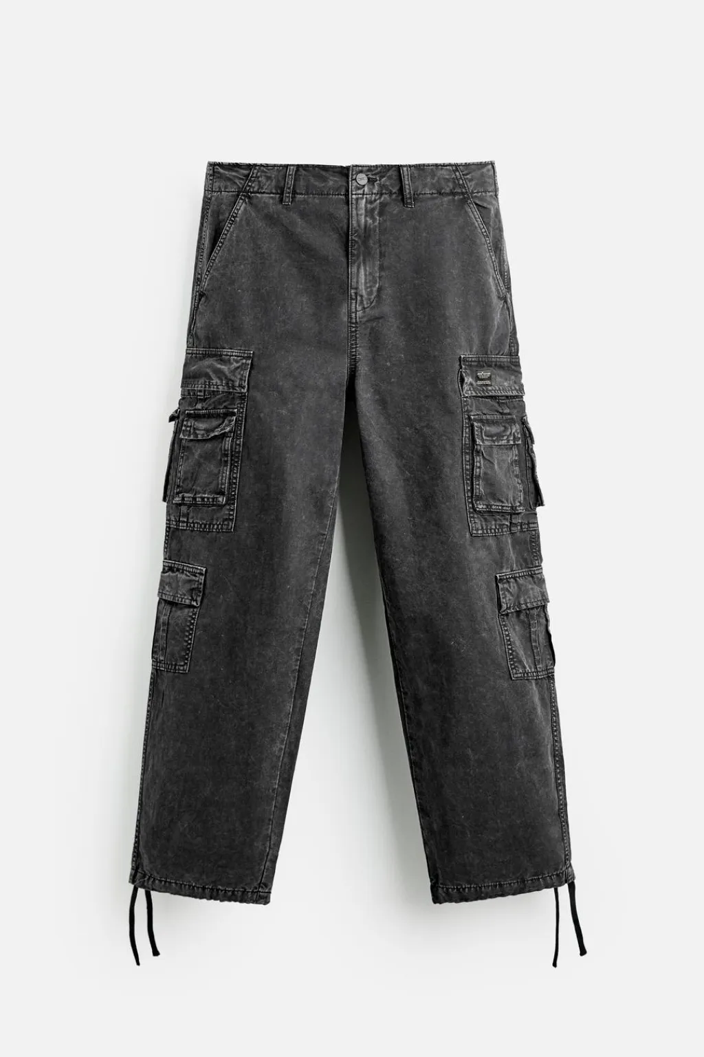 Pantalón relaxed fit. Bolsillos frontales y detalle de bolsillos traseros de vivo. Aplicación de bolsillos multifunción en perneras. Efecto lavado. Bajo ajustable con cordón en laterales. Cierre frontal con cremallera y botón.