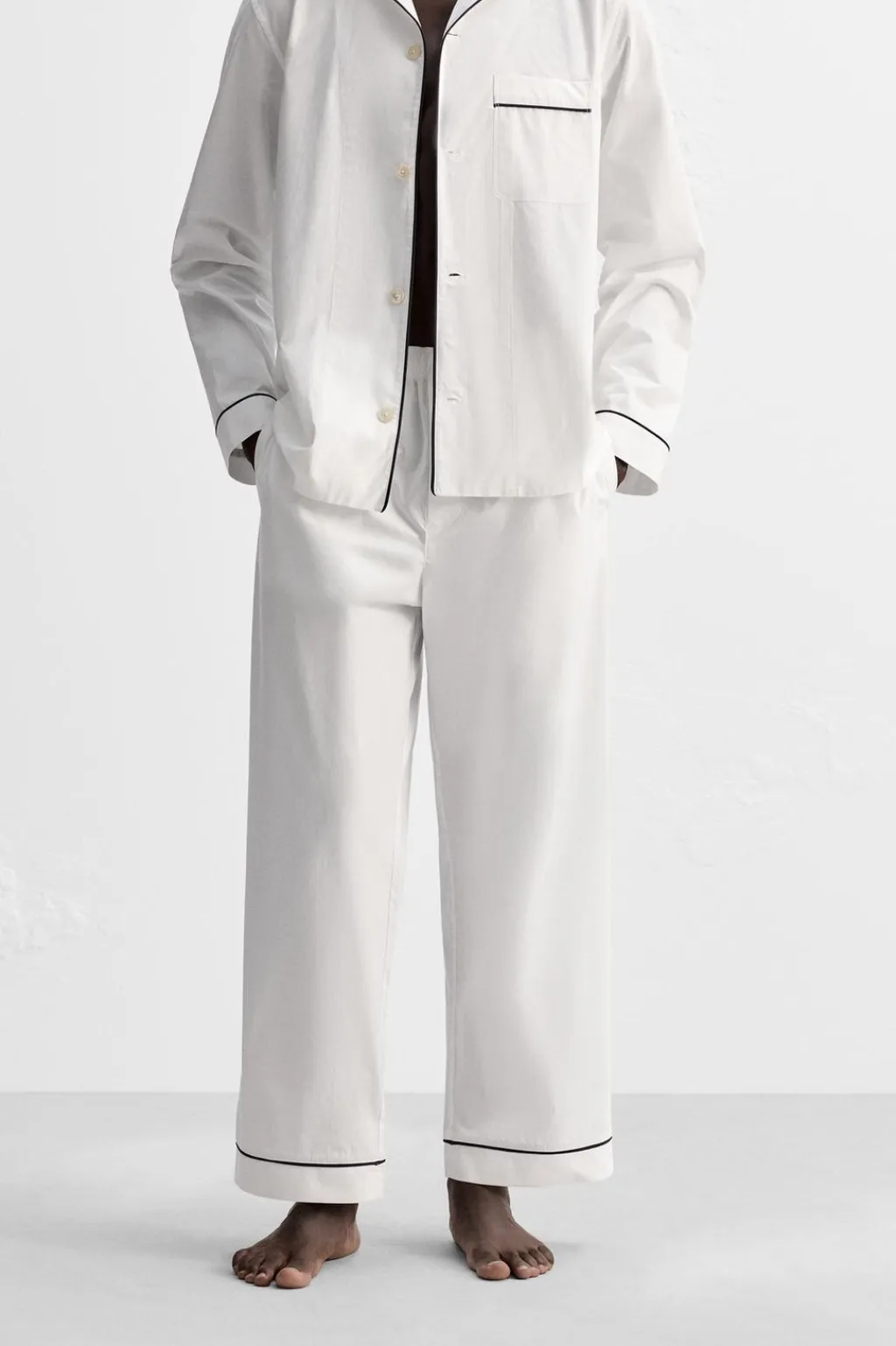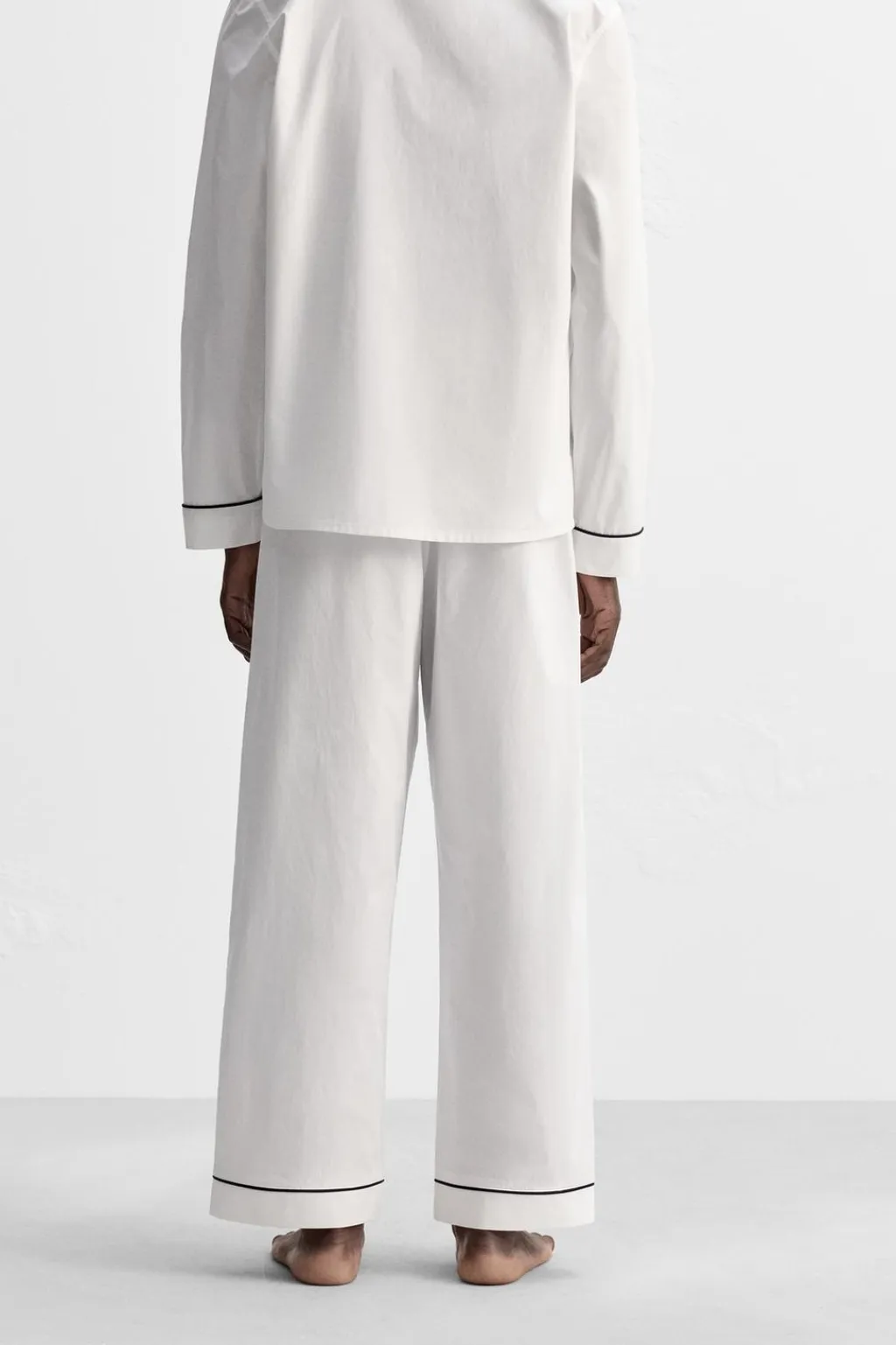 Pantalón relaxed fit confeccionado en tejido de algodón. Cintura elástica. Bajo con detalle de vivo combinado a contraste.