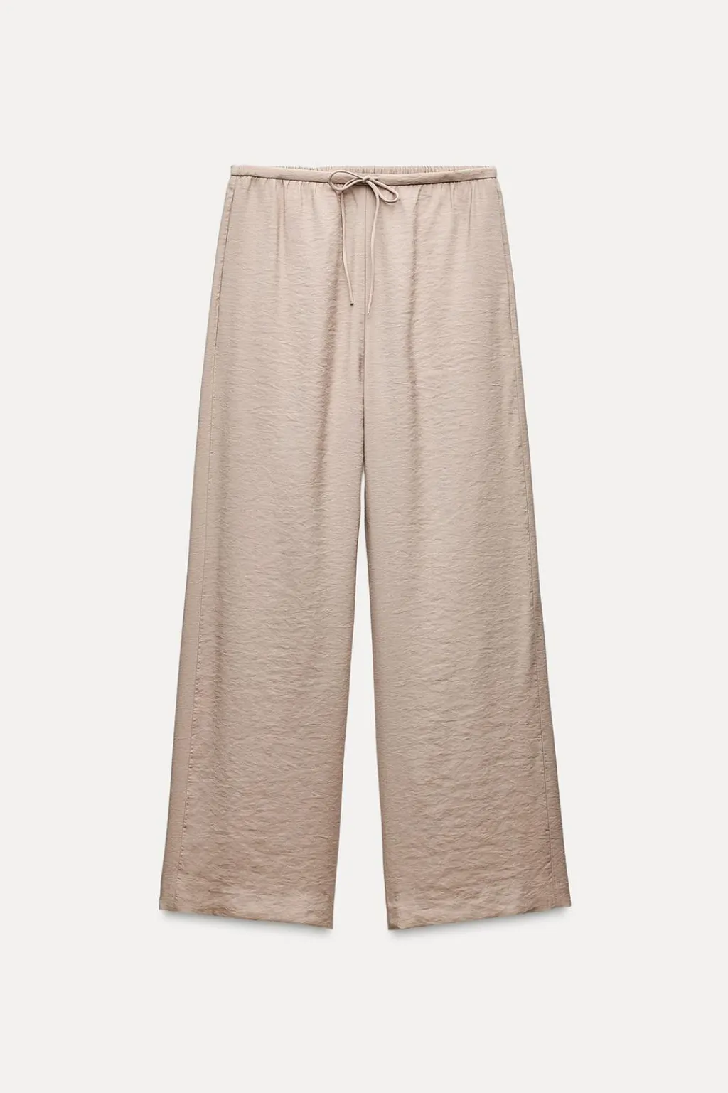 Pantalón fluido de tiro medio ajustable con cordones y elástico en espalda. Bolsillos laterales ocultos en costura.