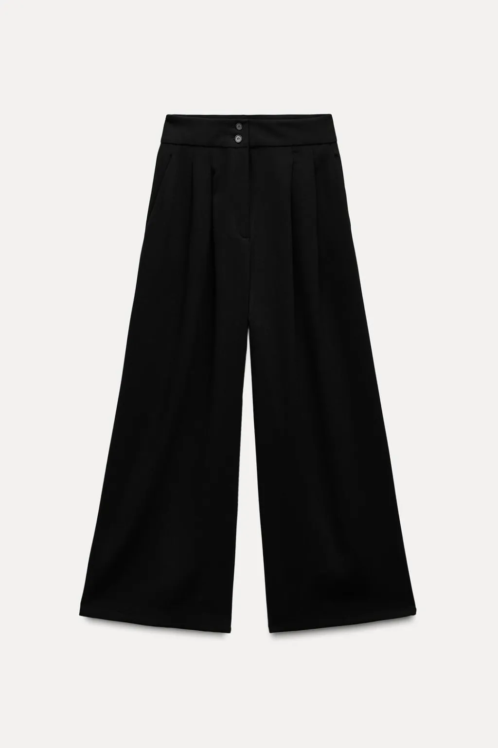 Pantalón tobillero de tiro medio y cintura con trabillas. Bolsillos laterales. Detalle de pinzas en delantero. Pierna ancha. Cierre frontal con cremallera y botones.