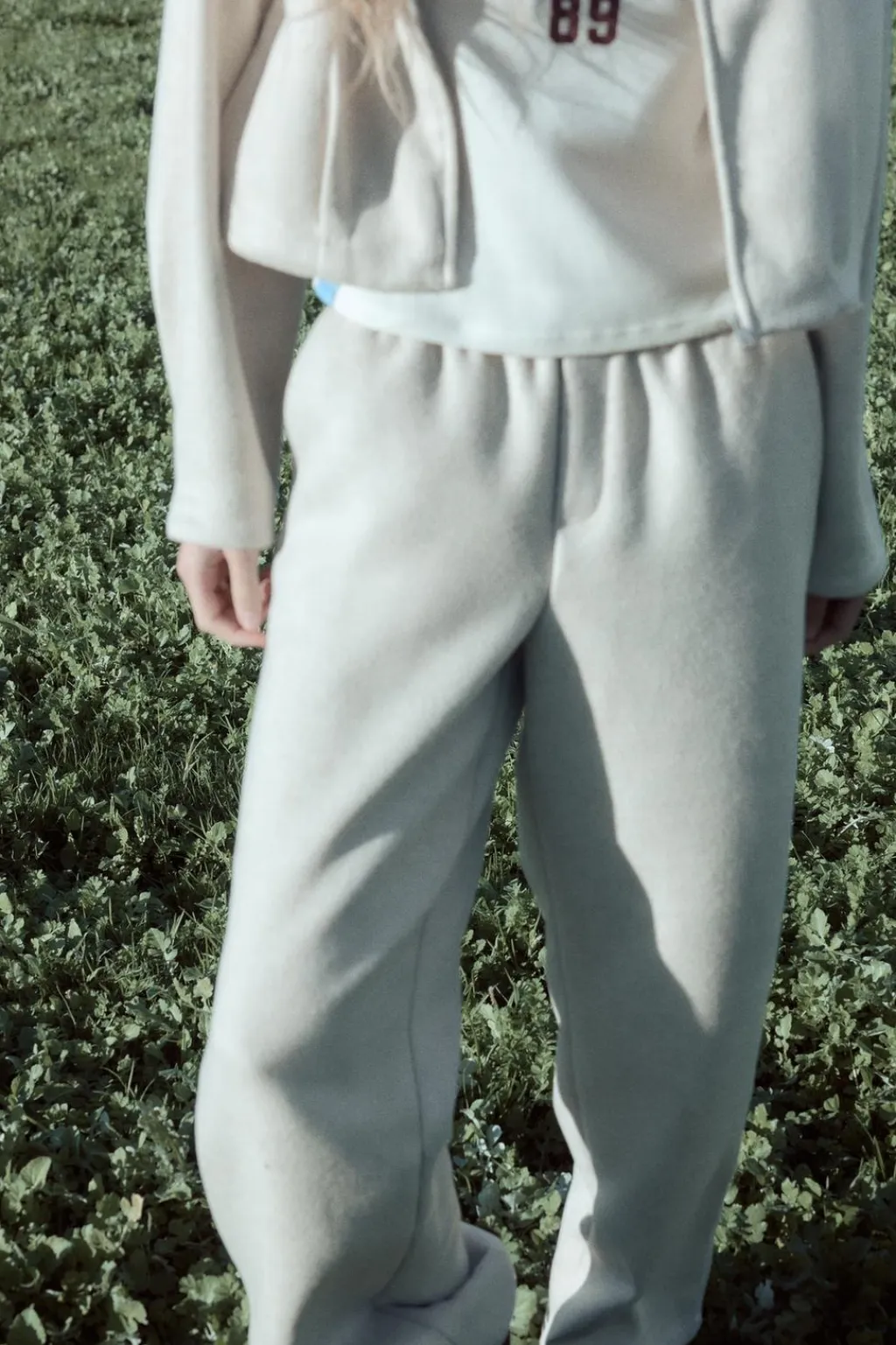 Pantalón de tiro medio con cintura elástica. Bolsillos laterales. Pierna recta.