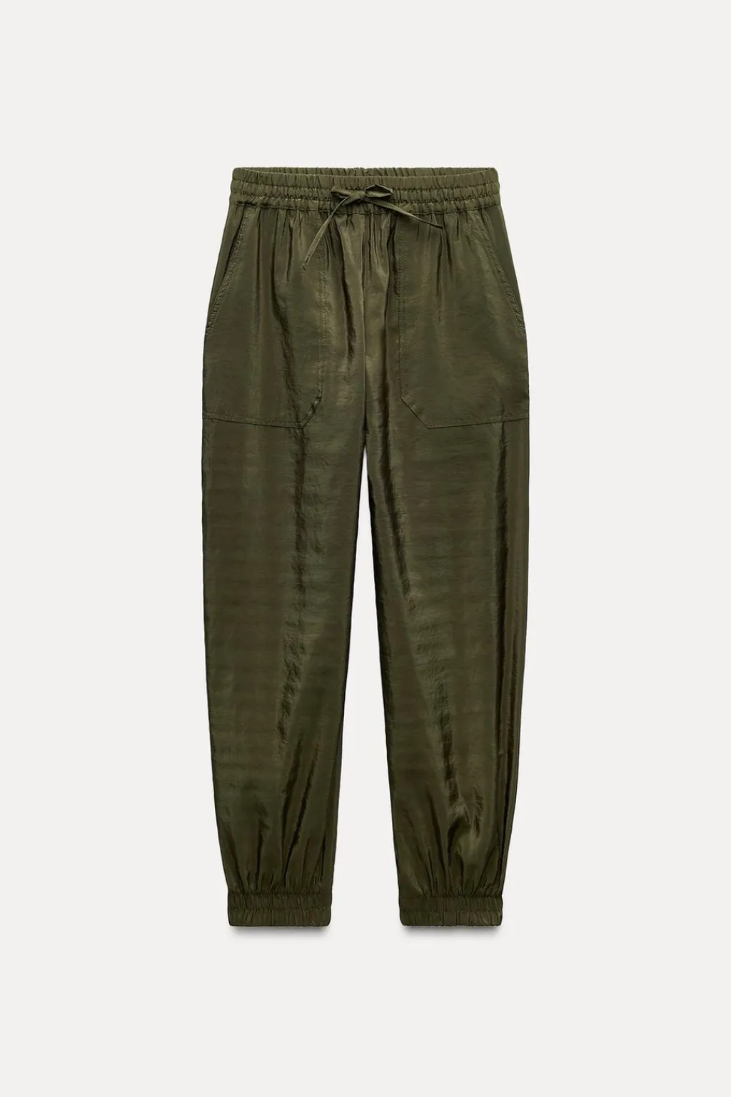 Pantalón de tiro alto con cintura elástica ajustable con cordones. Bolsillos delanteros. Bajo acabado en puño elástico.