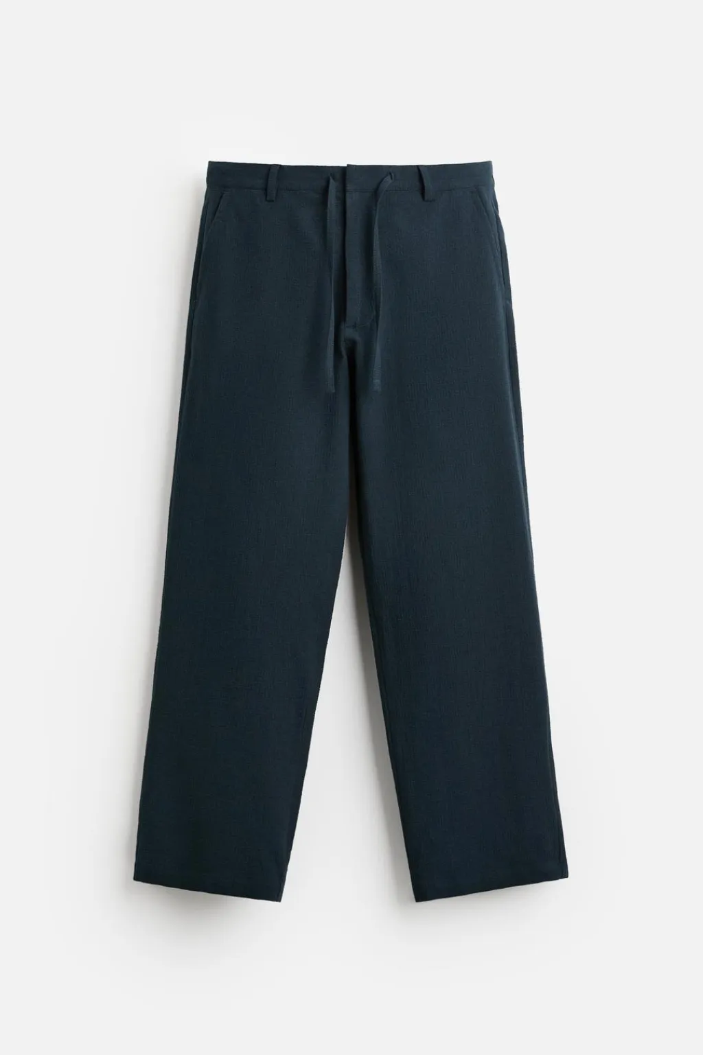 Pantalón straightfit confeccionado en tejido con mezcla de algodón y lino. Cintura elástica ajustable con cordón. Bolsillos frontales y detalle de bolsillos traseros de doble vivo. Cierre frontal con cremallera y gancho metálico oculto.