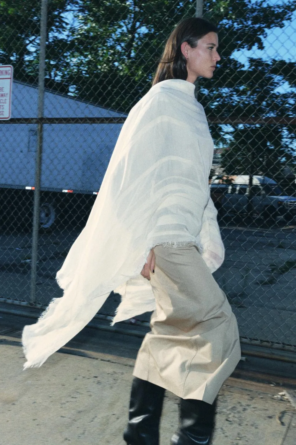 Pañuelo confeccionado en hilatura de modal y 6% lana. Detalle de bandas combinadas a tono.