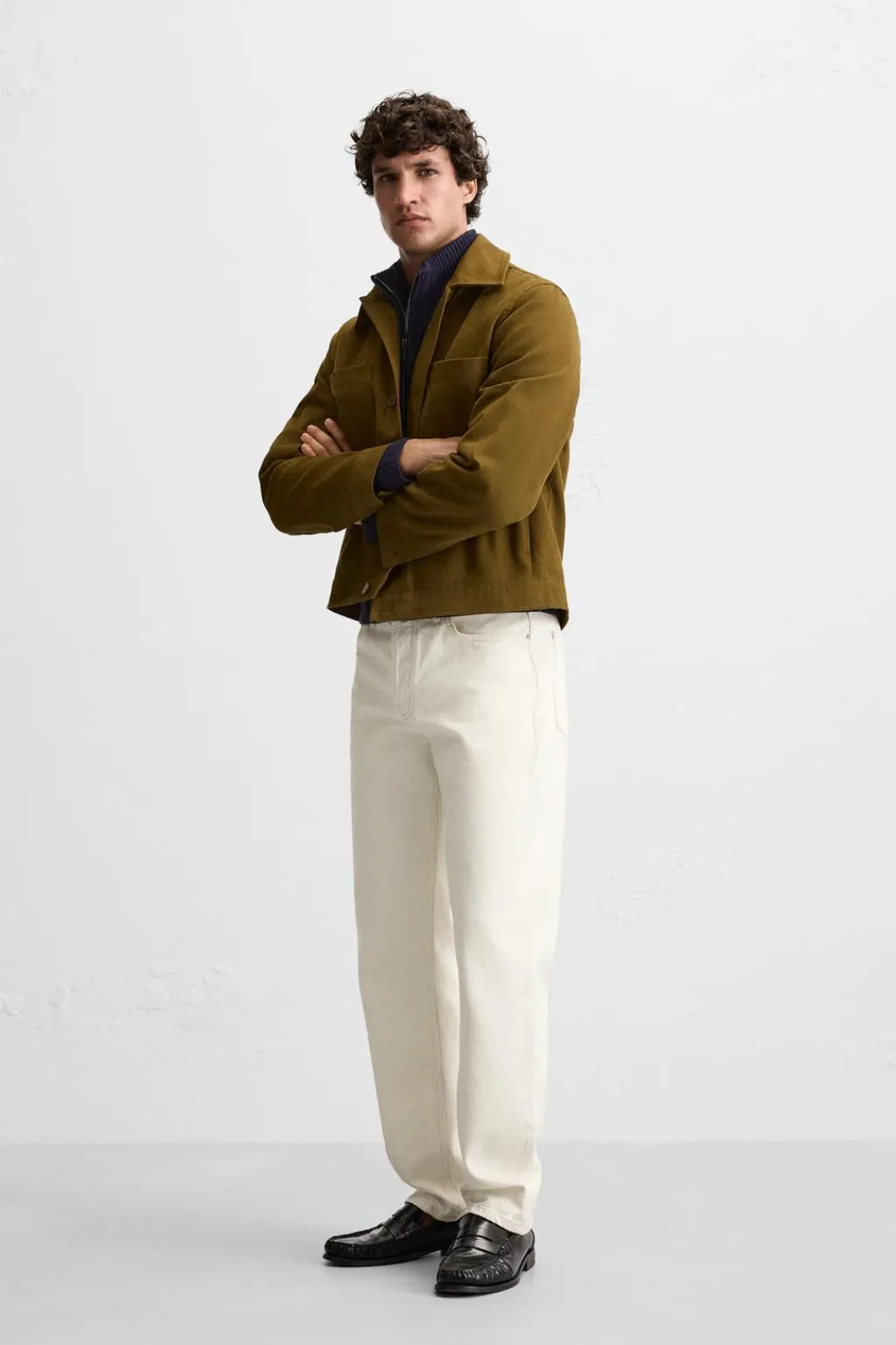 Sobrecamisa relaxed fit confeccionado en tejido de algodón con estructura. Cuello solapa y manga larga acabada en puño con botón. Bolsillos plastrón en pecho y laterales en cadera. Cierre frontal de botonadura.
