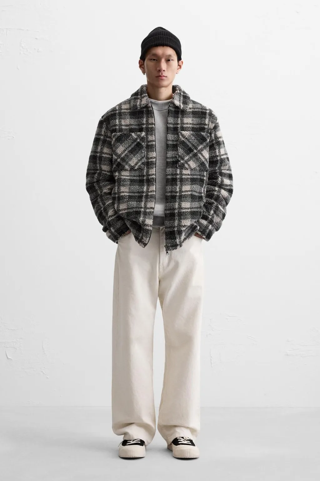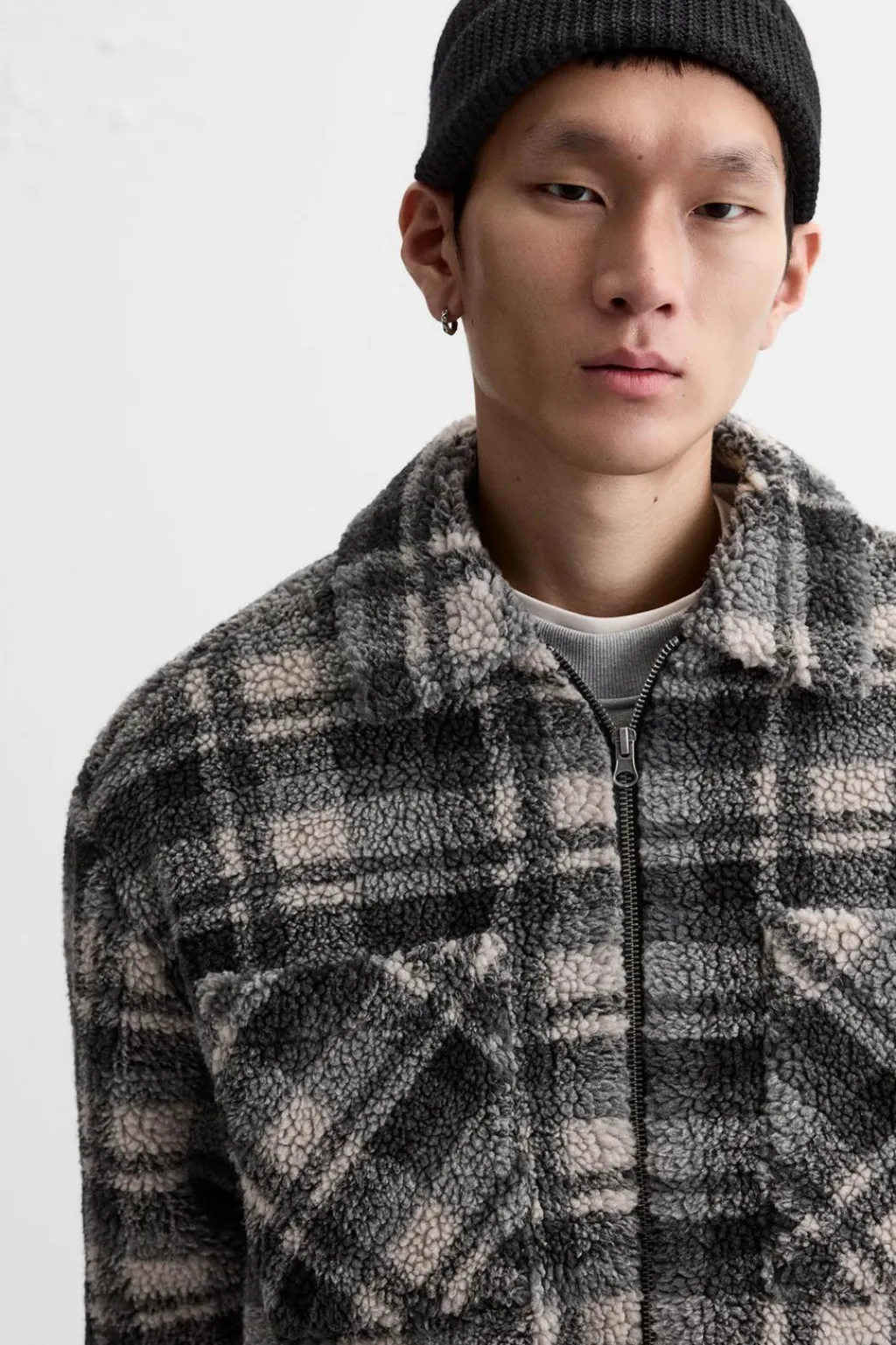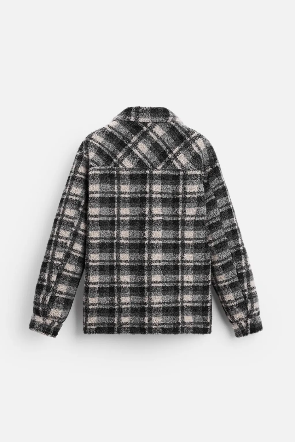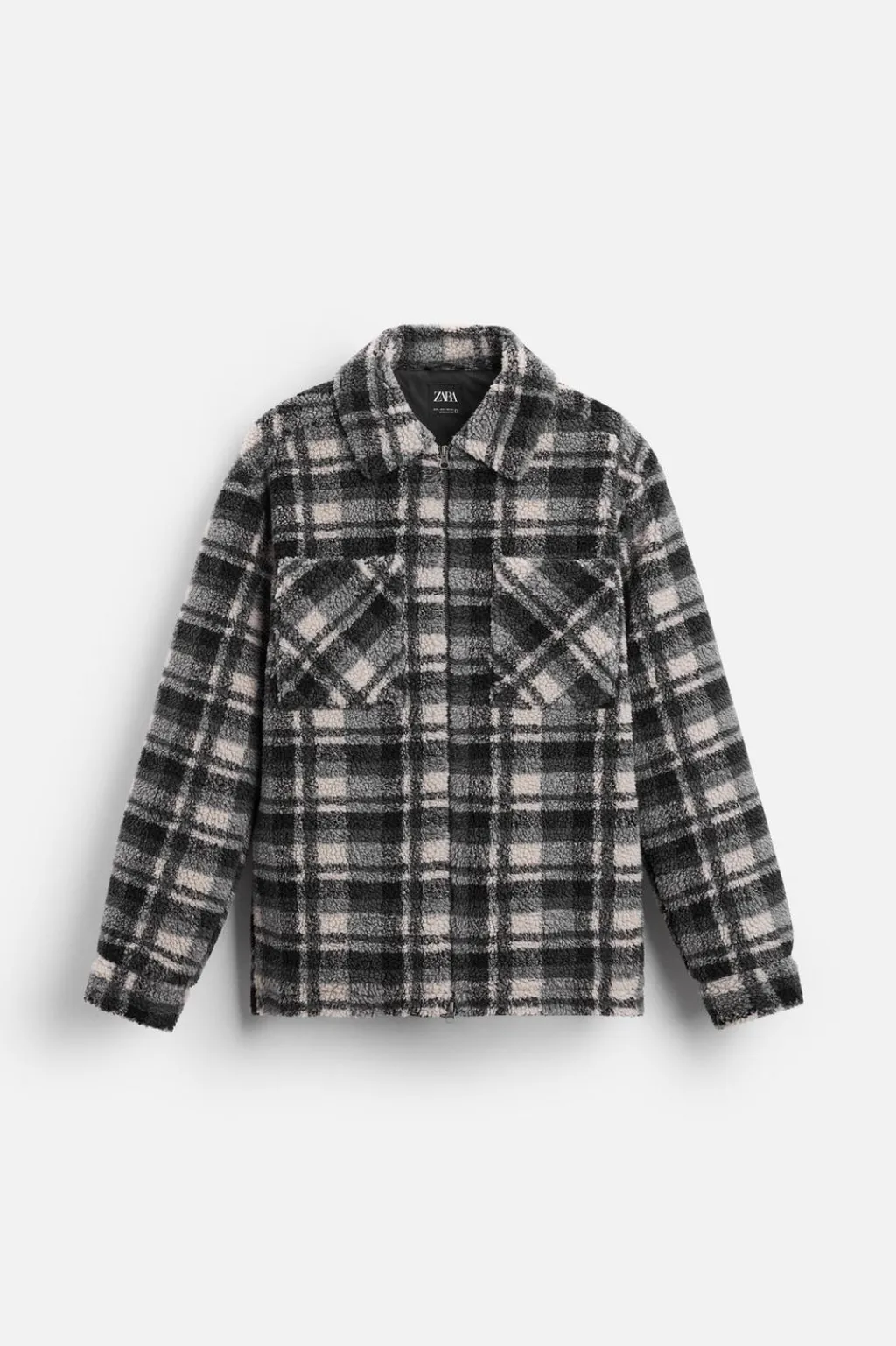 Sobrecamisa relaxed fit confeccionada en tejido de borreguillo. Cuello solapa y manga larga acabada en puño con botón a presión. Bolsillos plastrón en pecho y detalle de bolsillos laterales en cadera. Cierre frontal con cremallera.