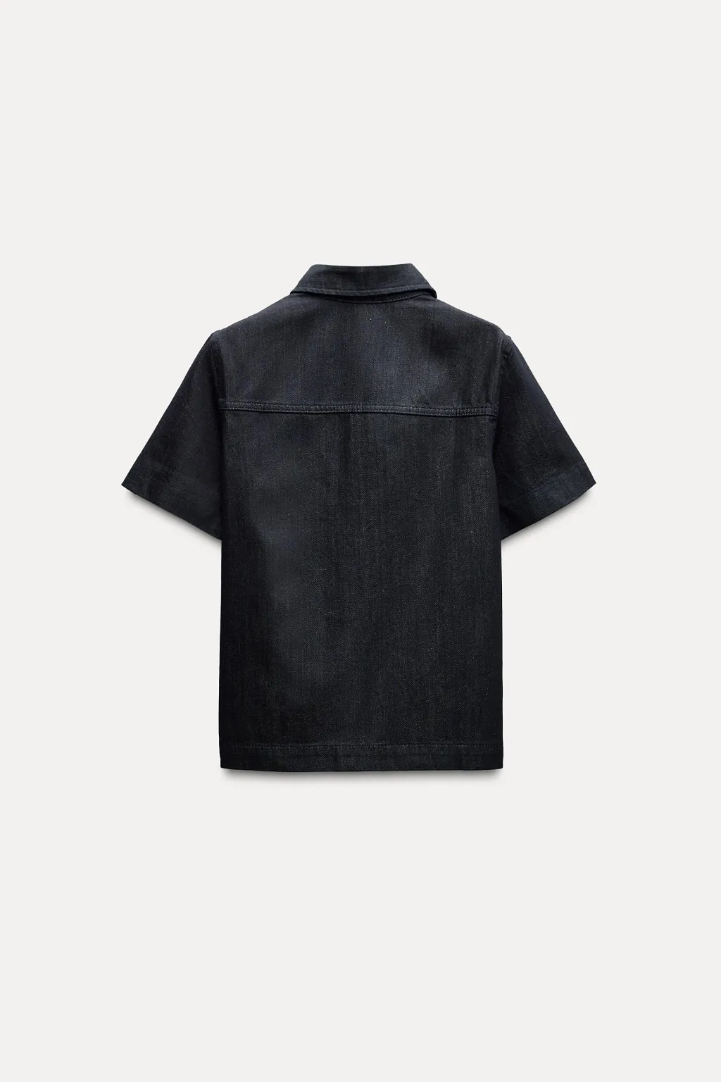 Sobrecamisa confeccionada en hilatura de algodón 100%. Cuello solapa y manga corta. Detalle de pespuntes marcados. Cierre frontal con botones ocultos por solapa.