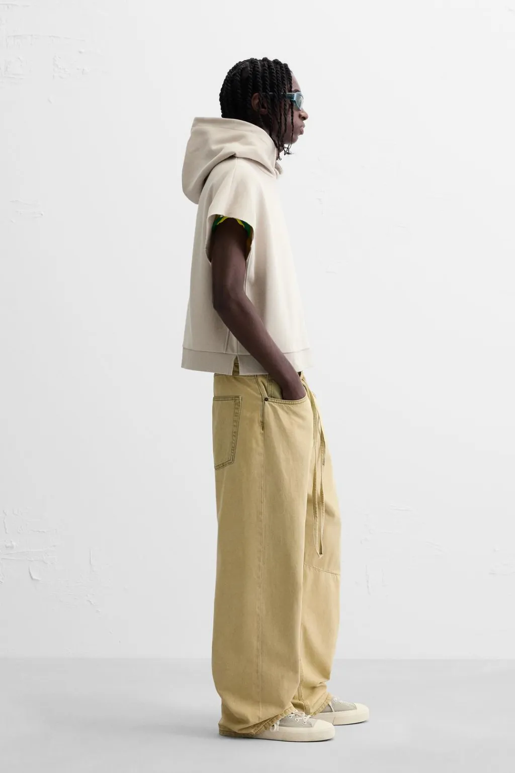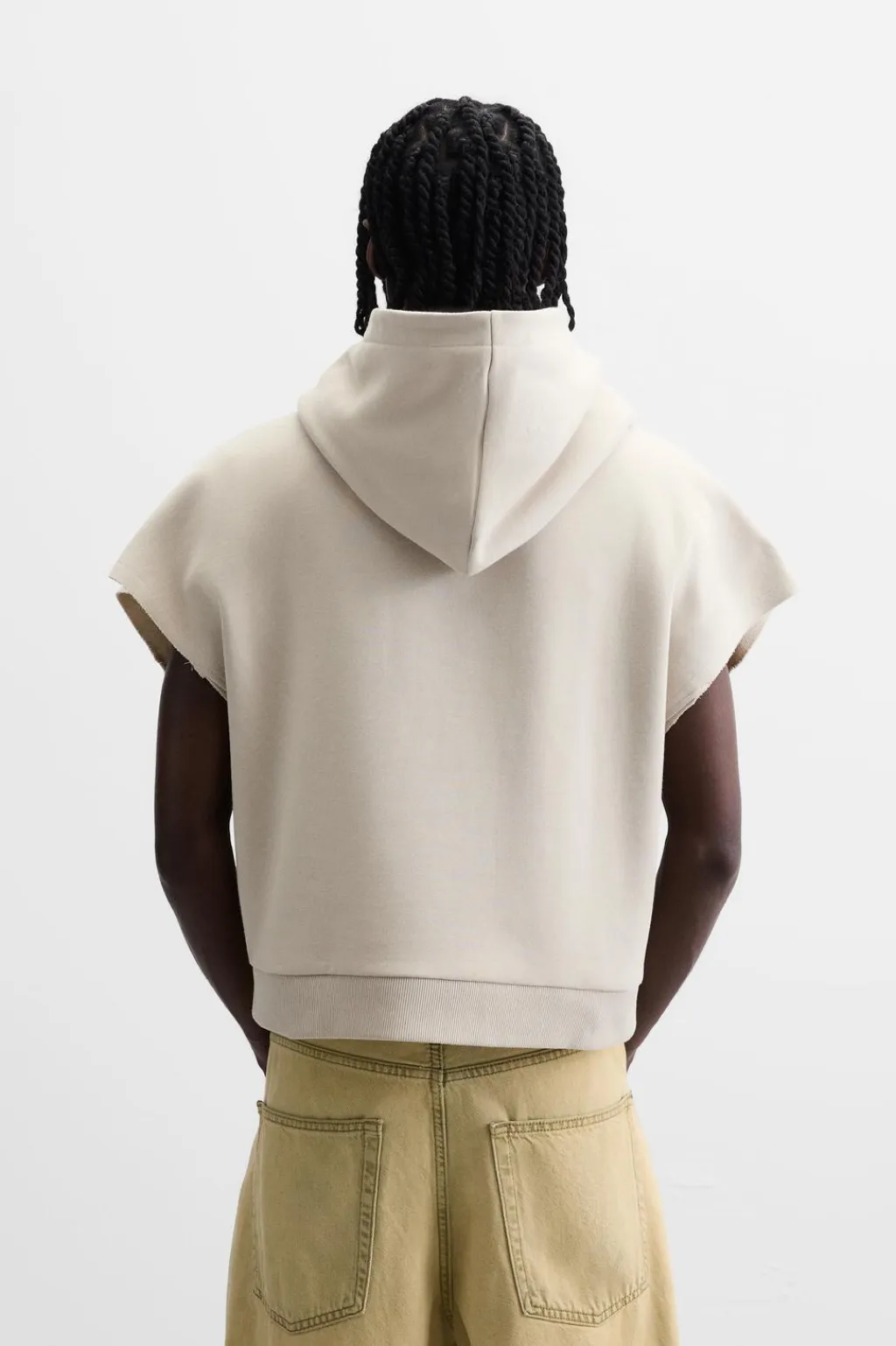 Sudadera boxy fit. Cuello con capucha y manga sisa. Efecto lavado. Bajo con aberturas laterales. Acabados en rib.