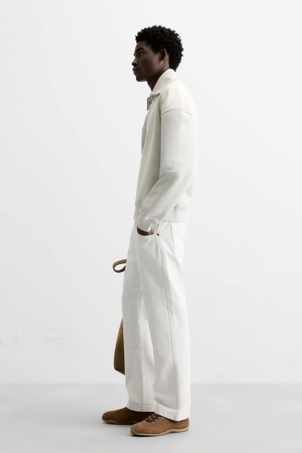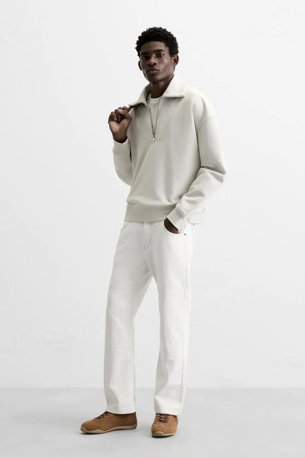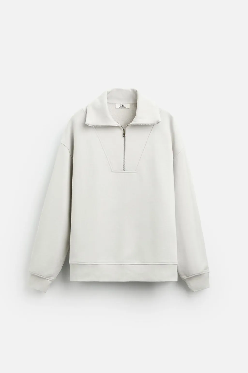 Sudaderaboxy fit confeccionada en tejido de algodón compacto con el interior acabado rizo. Cuello subido con cierre frontal de cremallera. Manga larga. Acabados en rib.