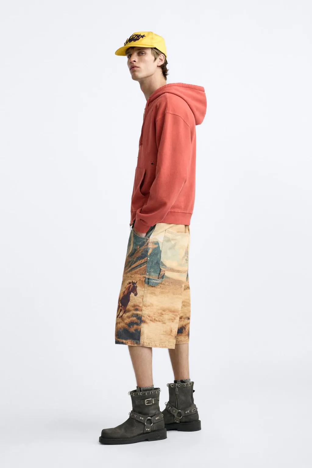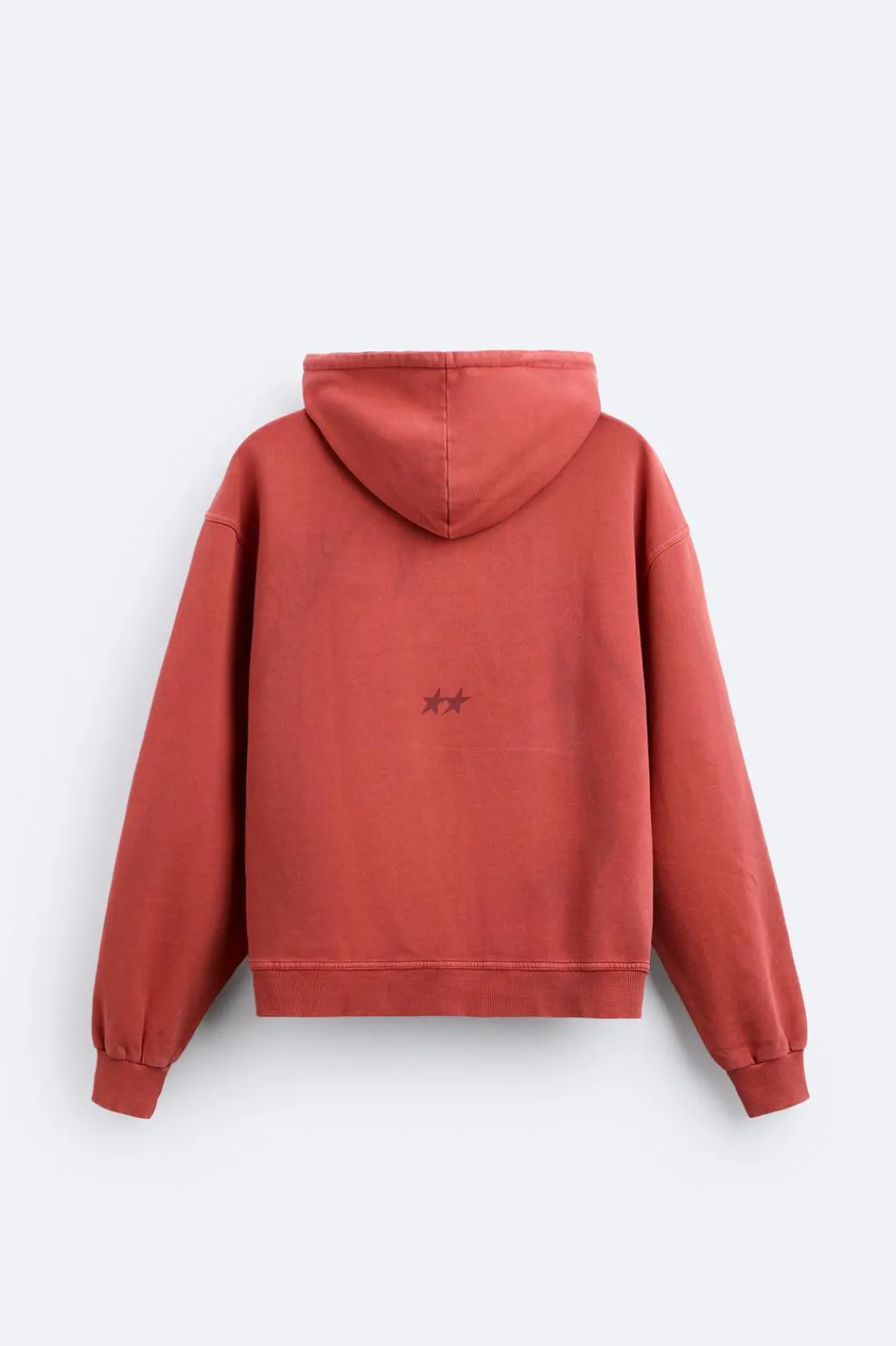 Sudadera hoodie cropped fit. Cuello con capucha ajustable y manga larga. Lavado efecto rotos. Bolsillos frontales tipo canguro. Estampado difuminado combinado a contraste en espalda. Acabados en rib.