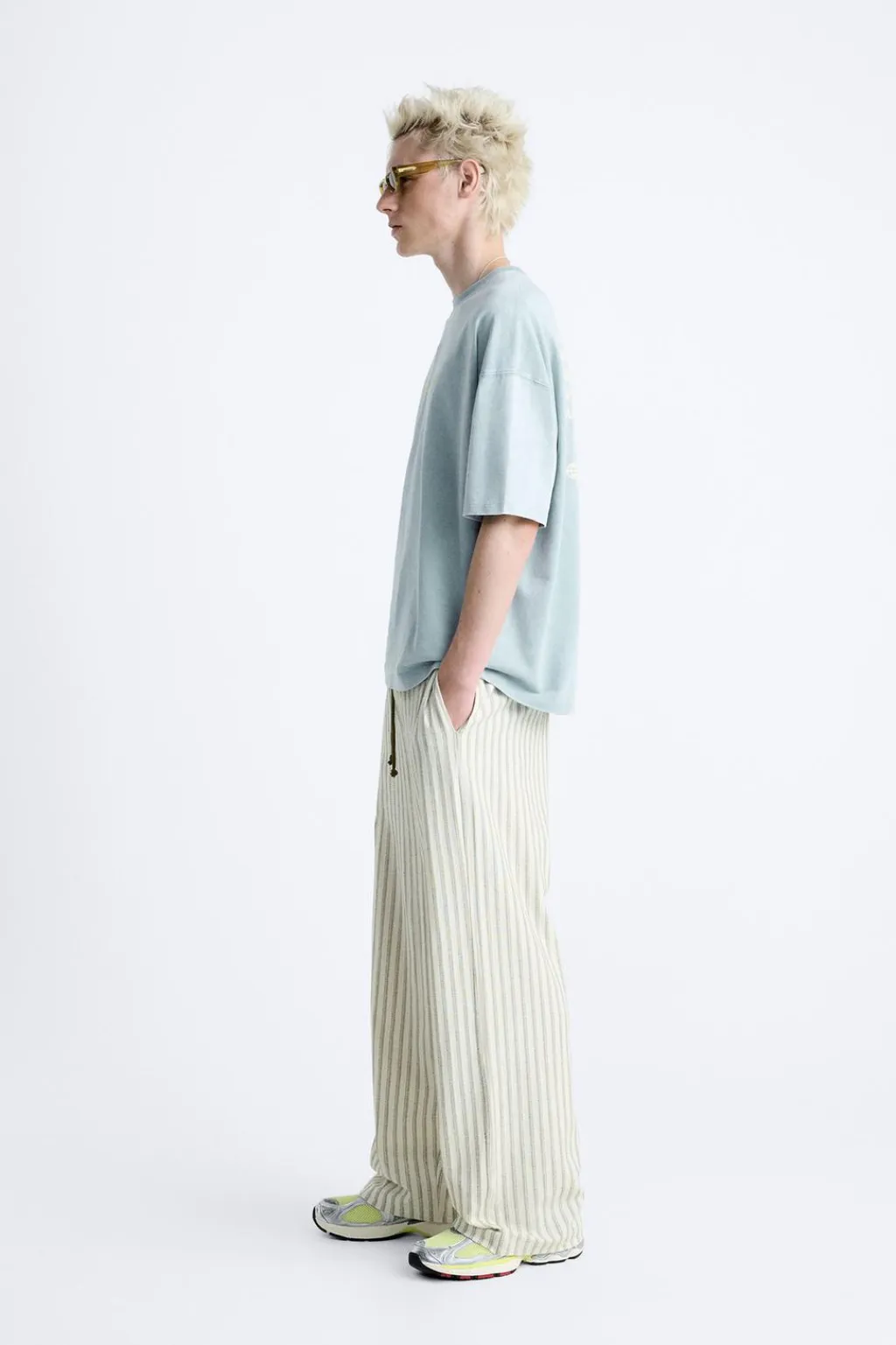Sudadera amplia con cuello redondo y manga corta. Textos estampados combinados a contraste en delantero y espalda. Efecto lavado.